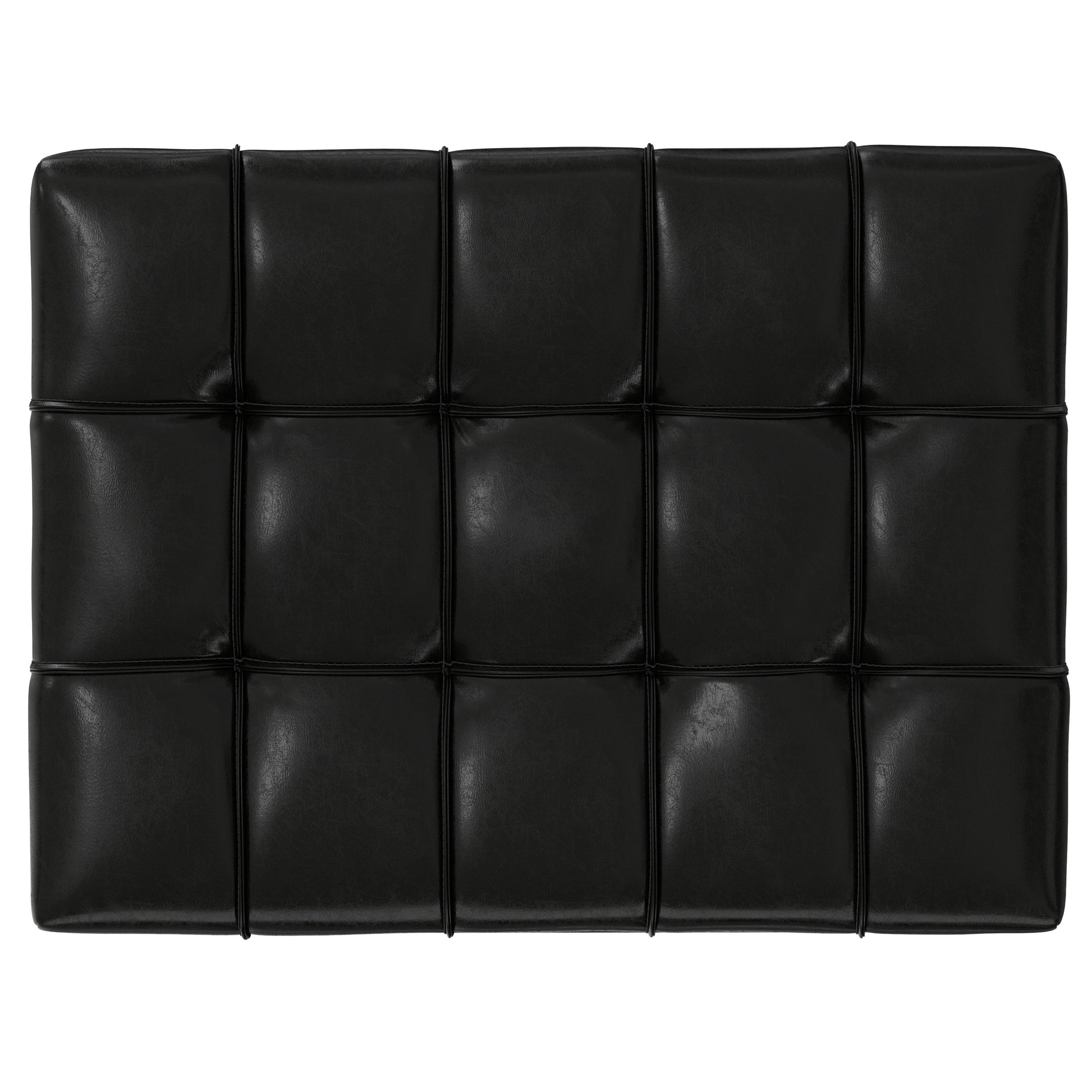 - Upholstered in a Midnight Black Vegan Faux Leather with tufting and piping detail.