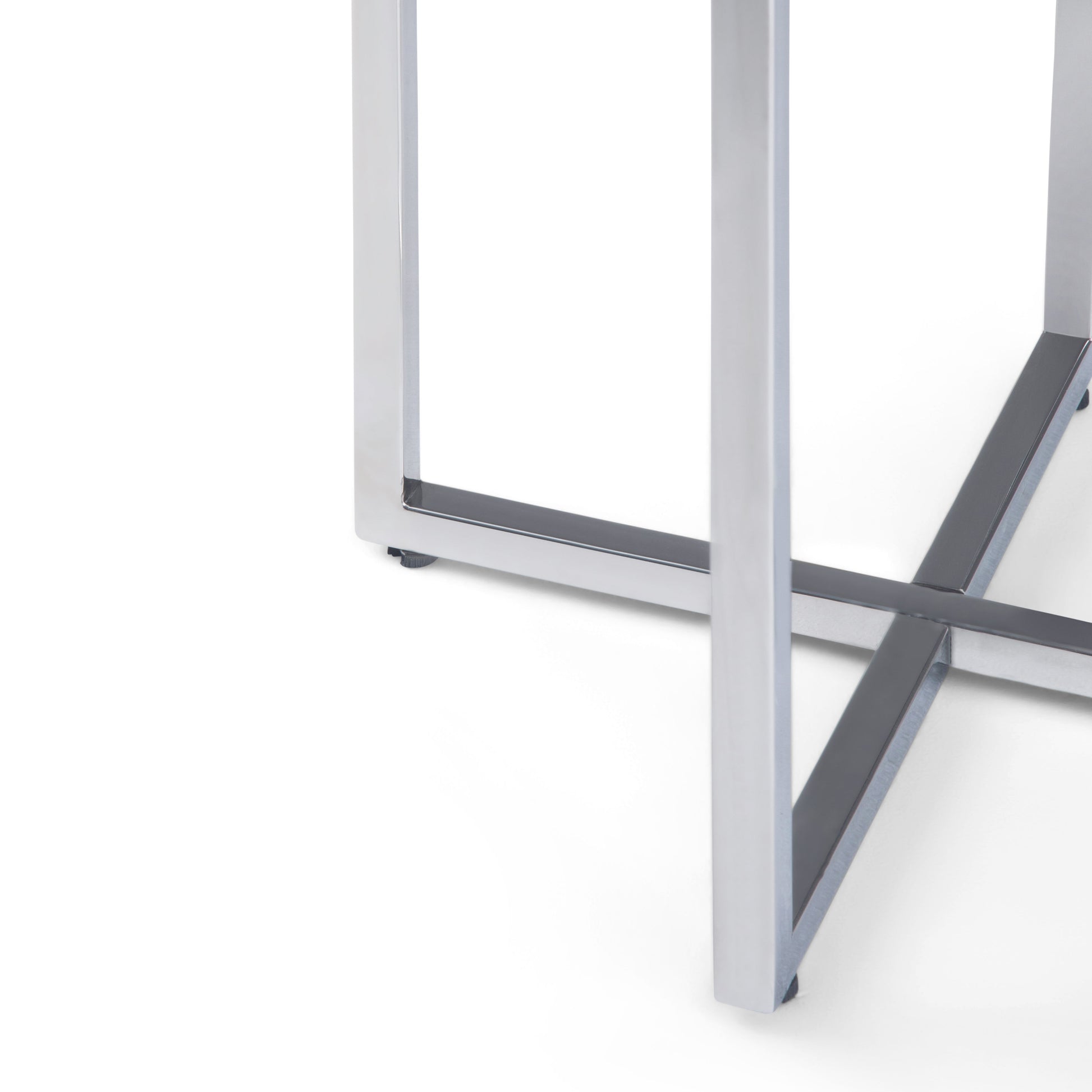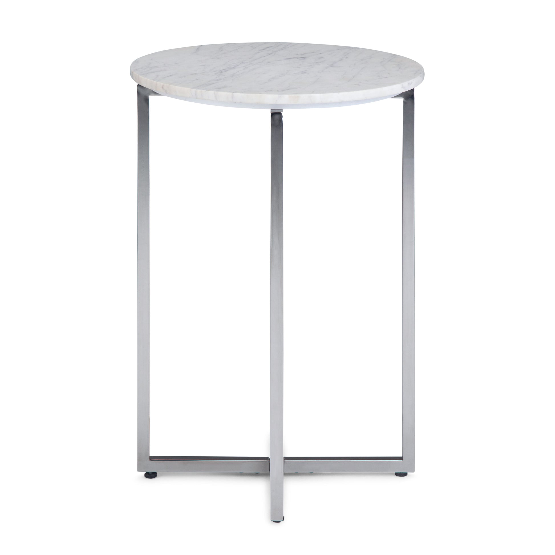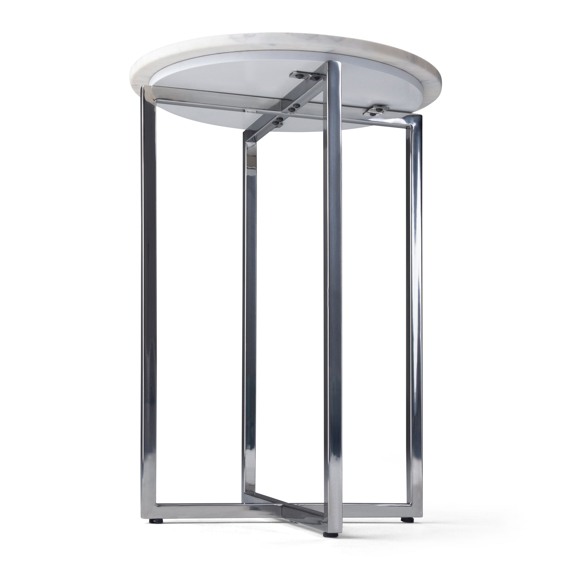 Marsden - Side Table With Polished Stainless Steel Base - White / Silver