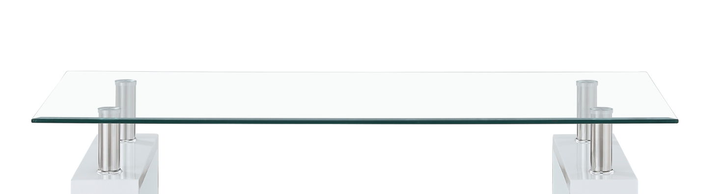 - Elegant Design: The MARSHALL COFFEE TABLE features a sleek white finish complemented by clear glass top, offering a contemporary and sophisticated look to any living space.
