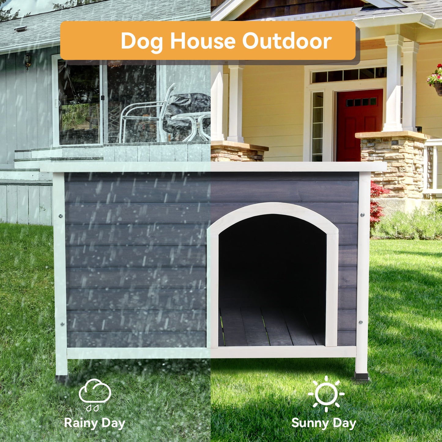 Medium Wooden Outdoor Dog House, Waterproof Roof, Elevated Floor - Gray