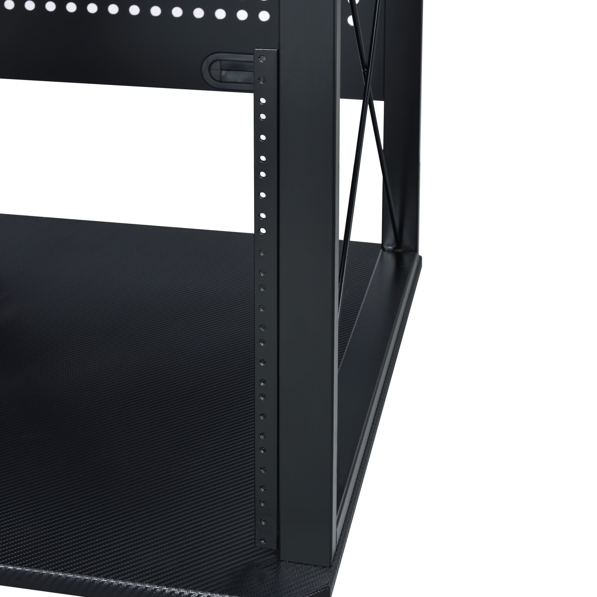 - Integrated Features: This desk includes a keyboard tray suitable for up to 76-key keyboards, an earphone rack, and preformed screw holes for secure equipment installation, enhancing functionality.