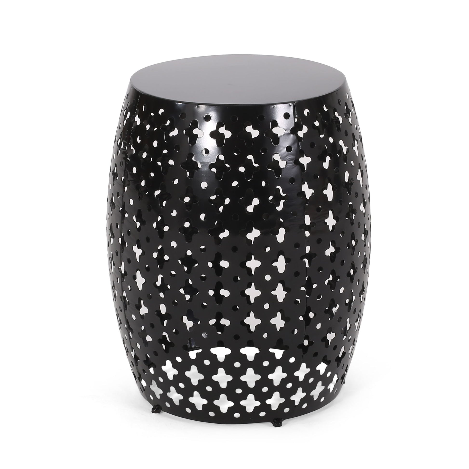 - MODERN DESIGN: Clean, precise lines make this side table the ideal modern accessory, featuring a barrel structure and iron cut design.