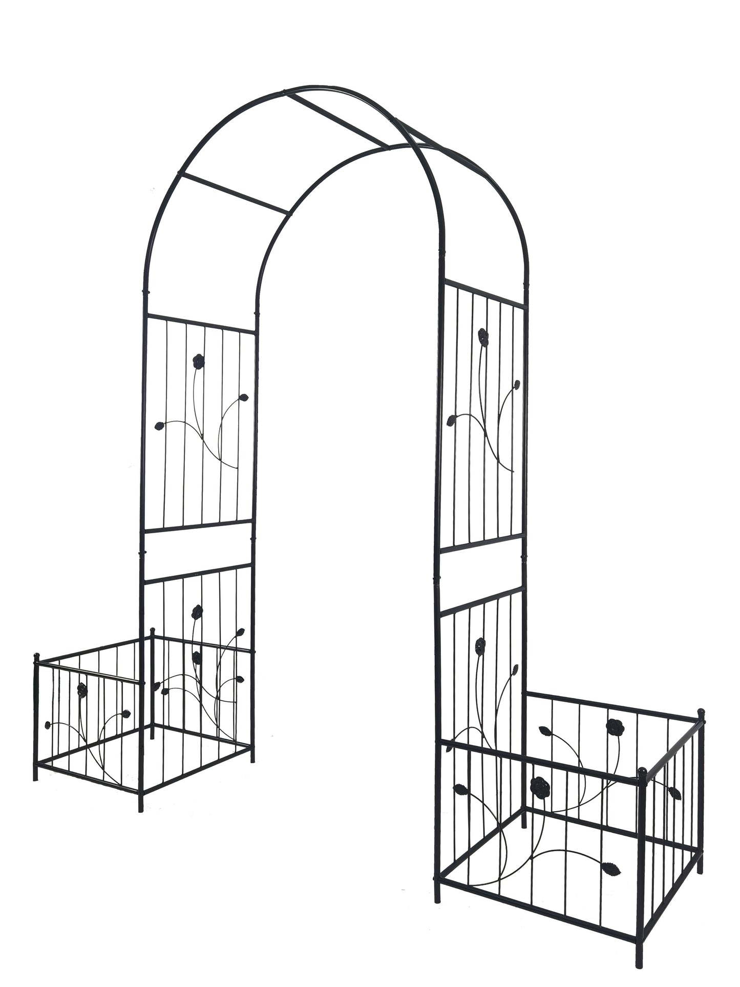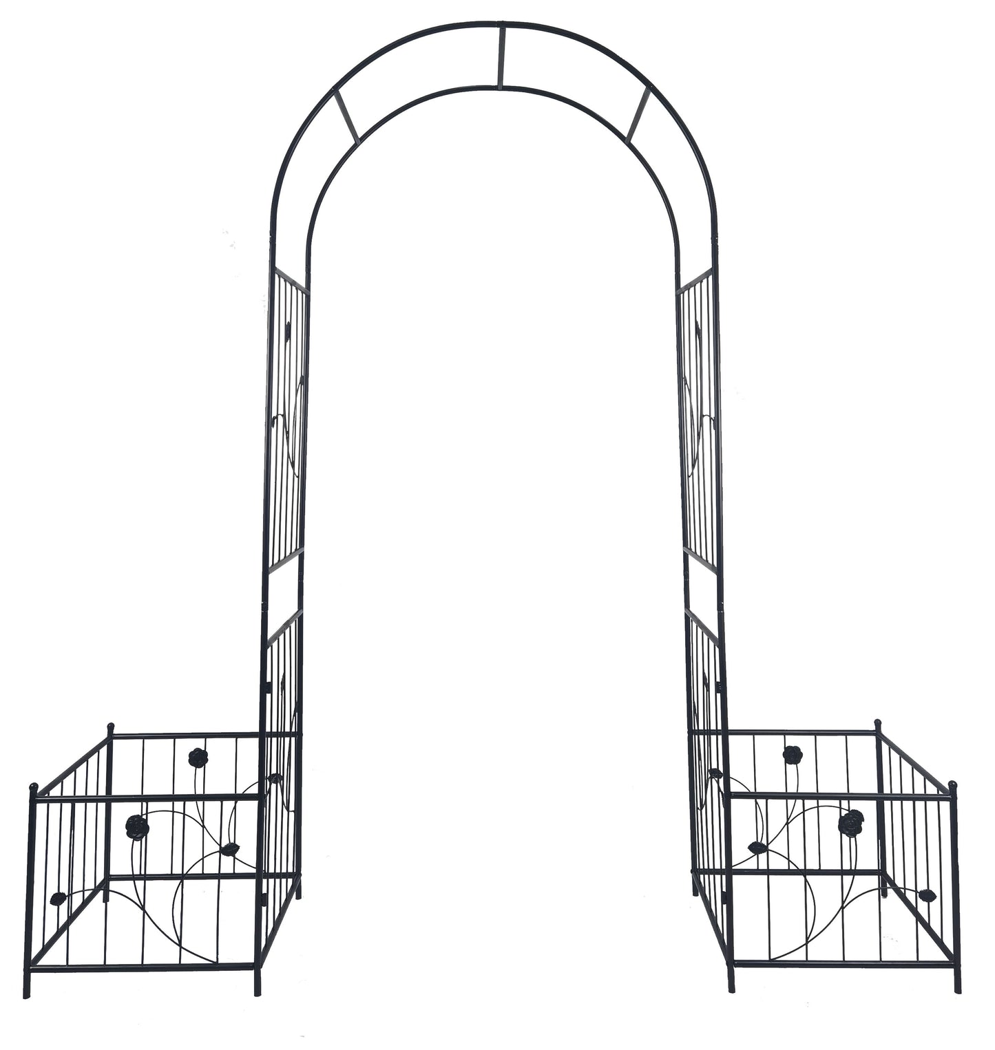 Metal Garden Arch With Two Plant Stands Wide High Climbing Plants Support Rose Arch Outdoor - Black