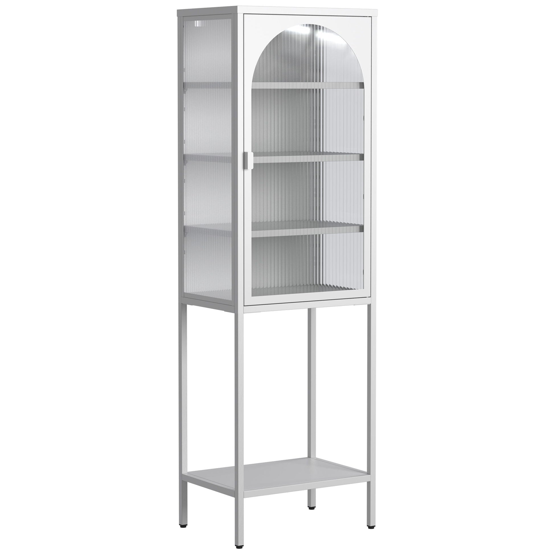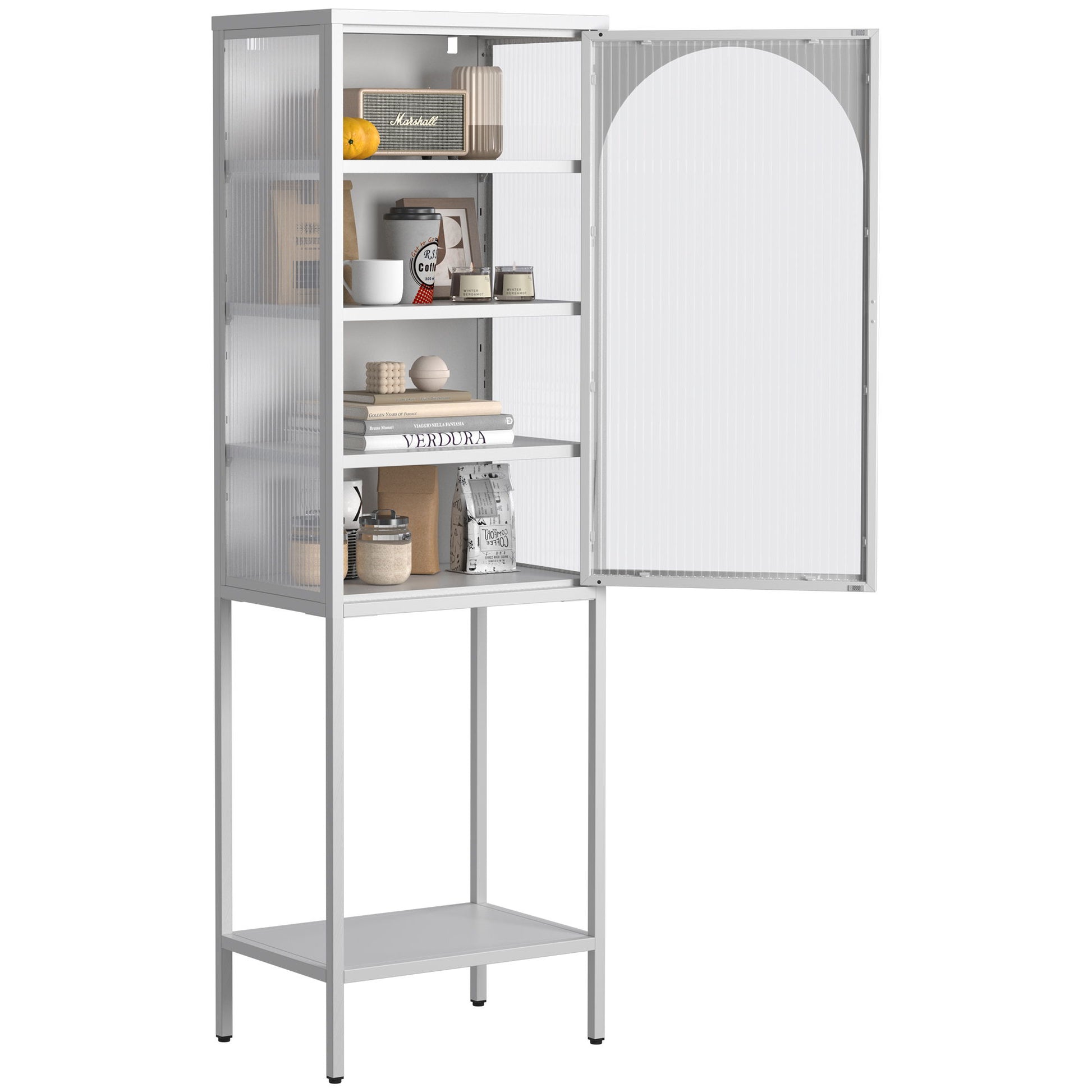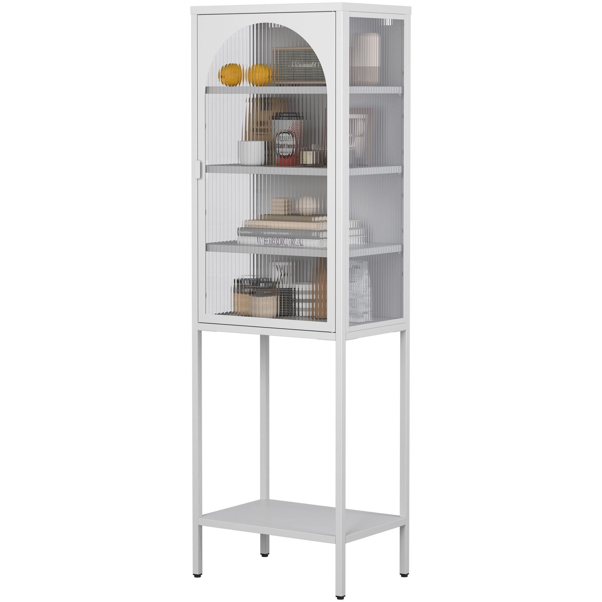 Metal Glass Door Display Storage Cabinet - 5 Tier Cube Bookshelf Storage Cabinet With 3 Adjustable Shelves For Kitchen, Dining Room, Living Room, Bathroom, Home Office - Antique White