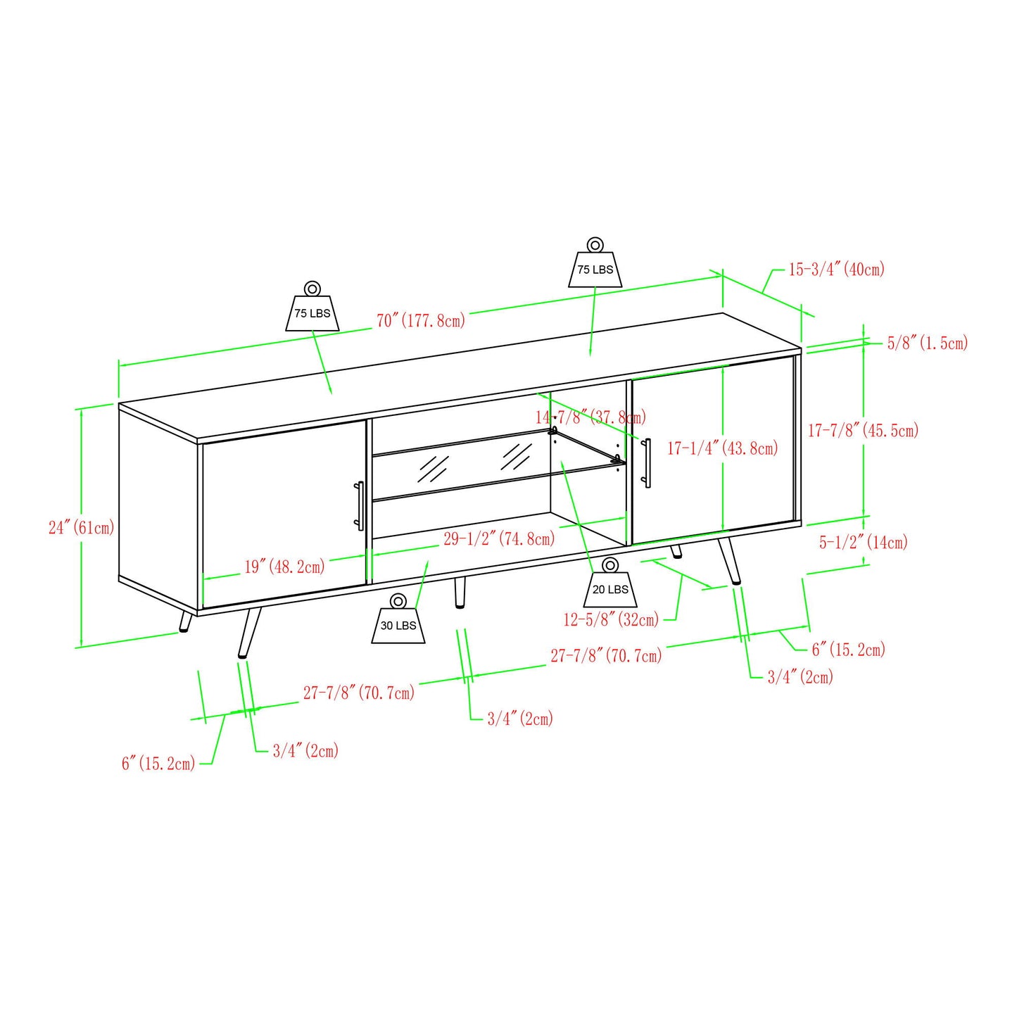 Mid-Century Modern 2 Door 70" TV Stand For 80" TVs With Glass Shelf - Slate Gray