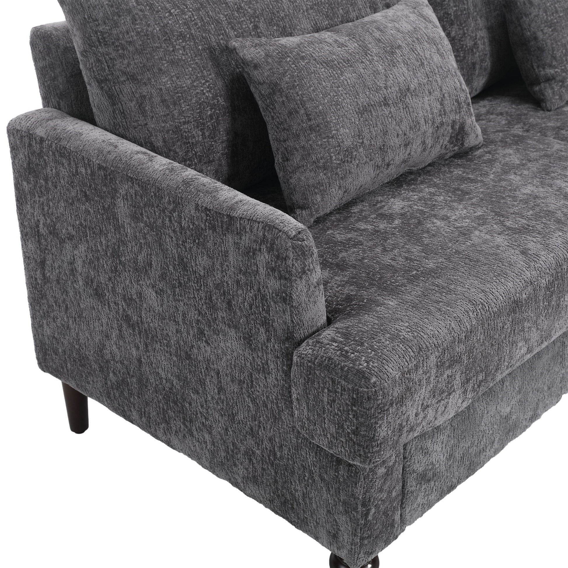 Mid Century Modern Chenille Fabric Loveseat Sofa, 2 Seat Upholstered Couch, Brown Wood Feet - Gray