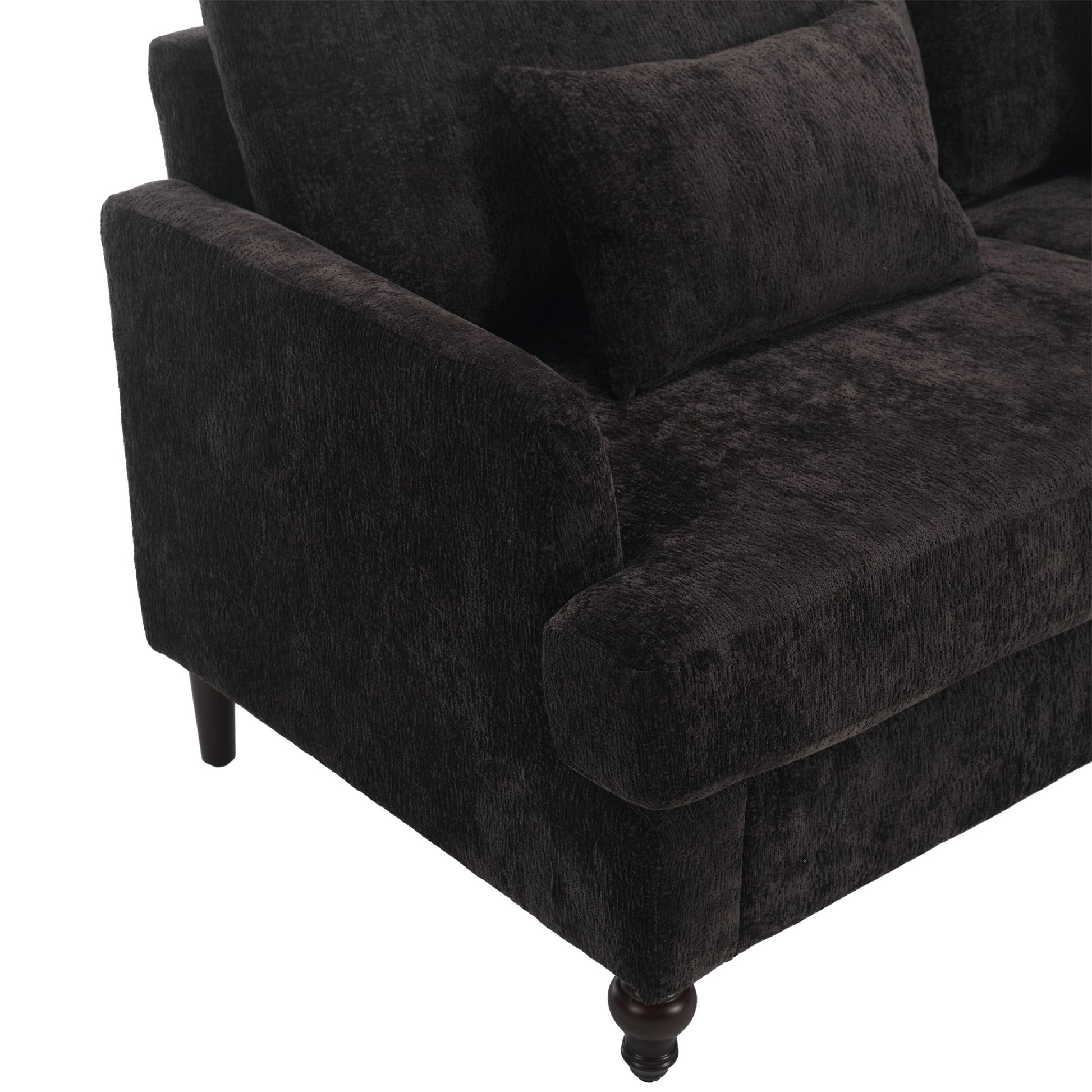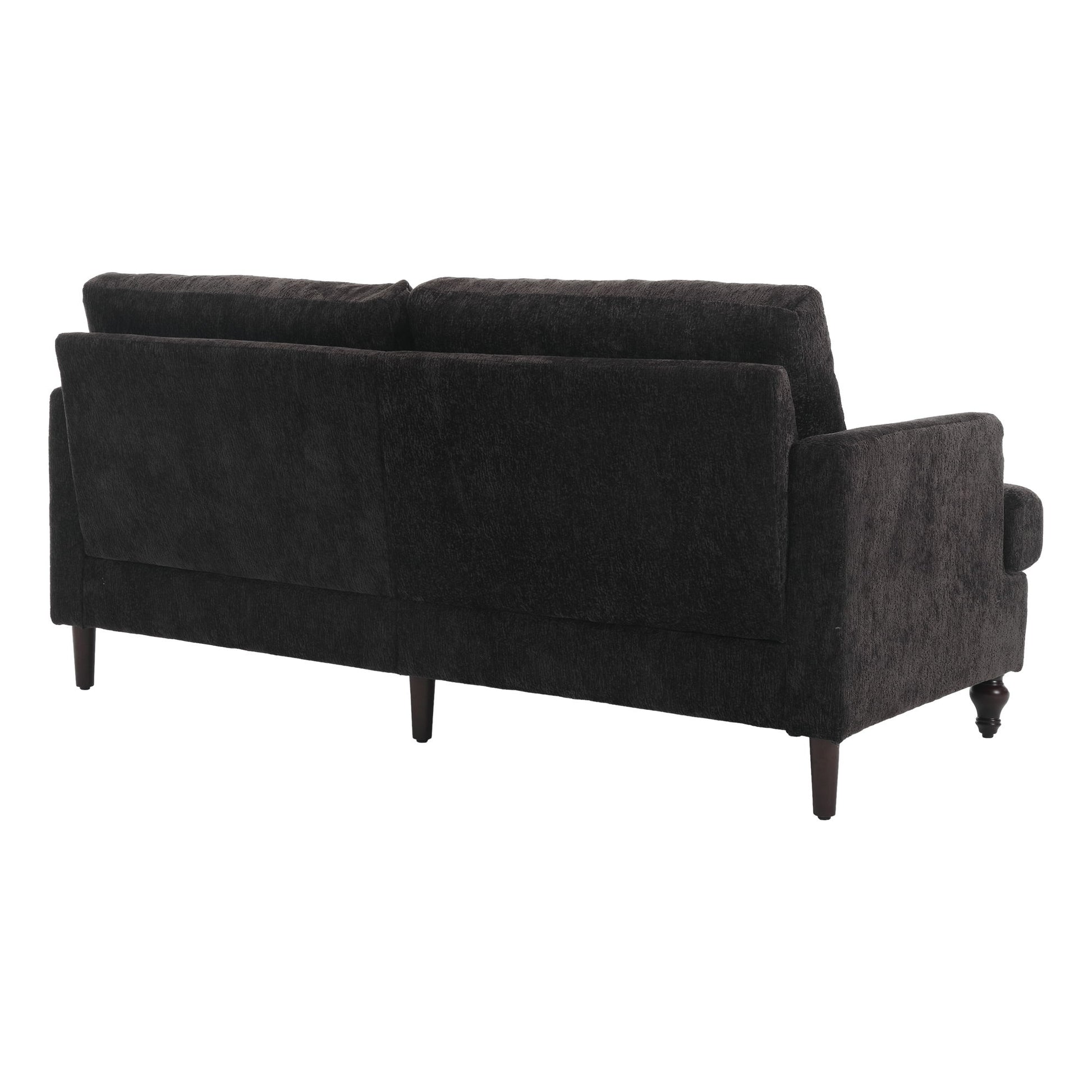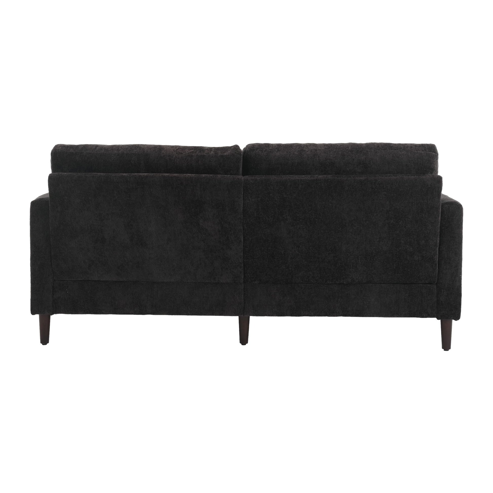Mid Century Modern Chenille Fabric Loveseat Sofa With Brown Wood Feet, 2 Seat Upholstered Couch For Living Room Or Bedroom - Black