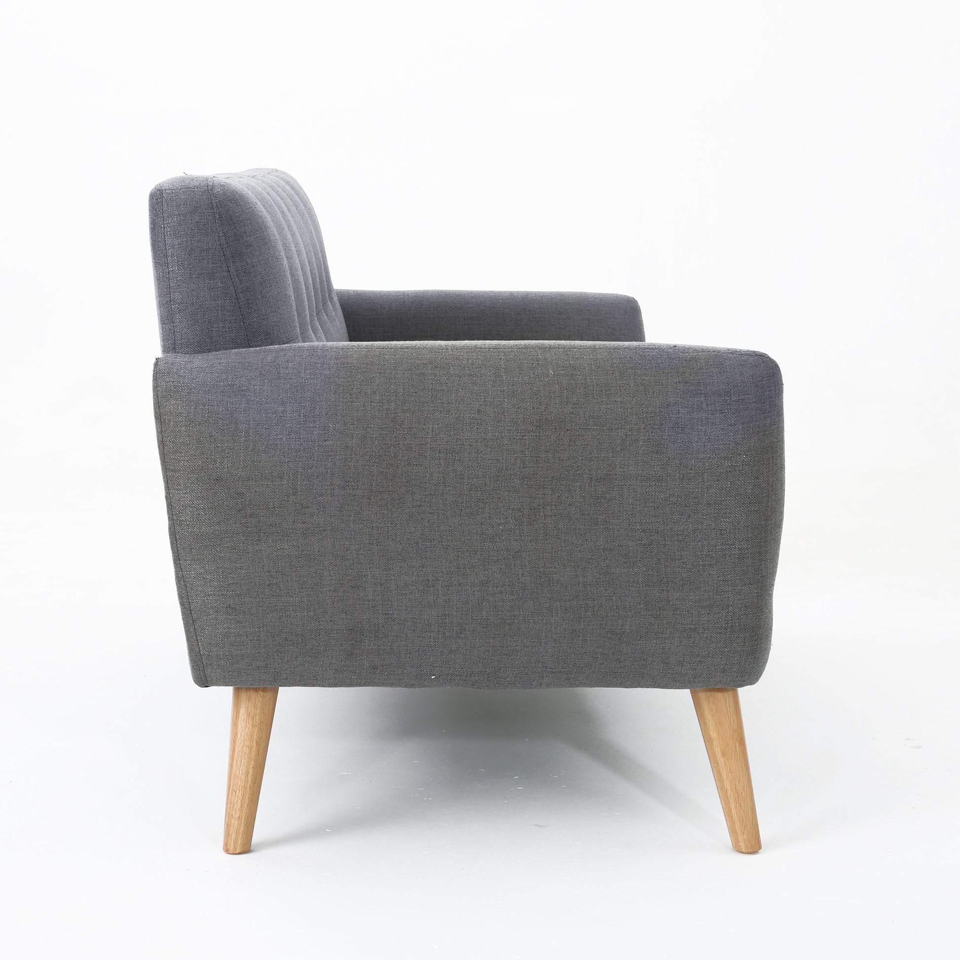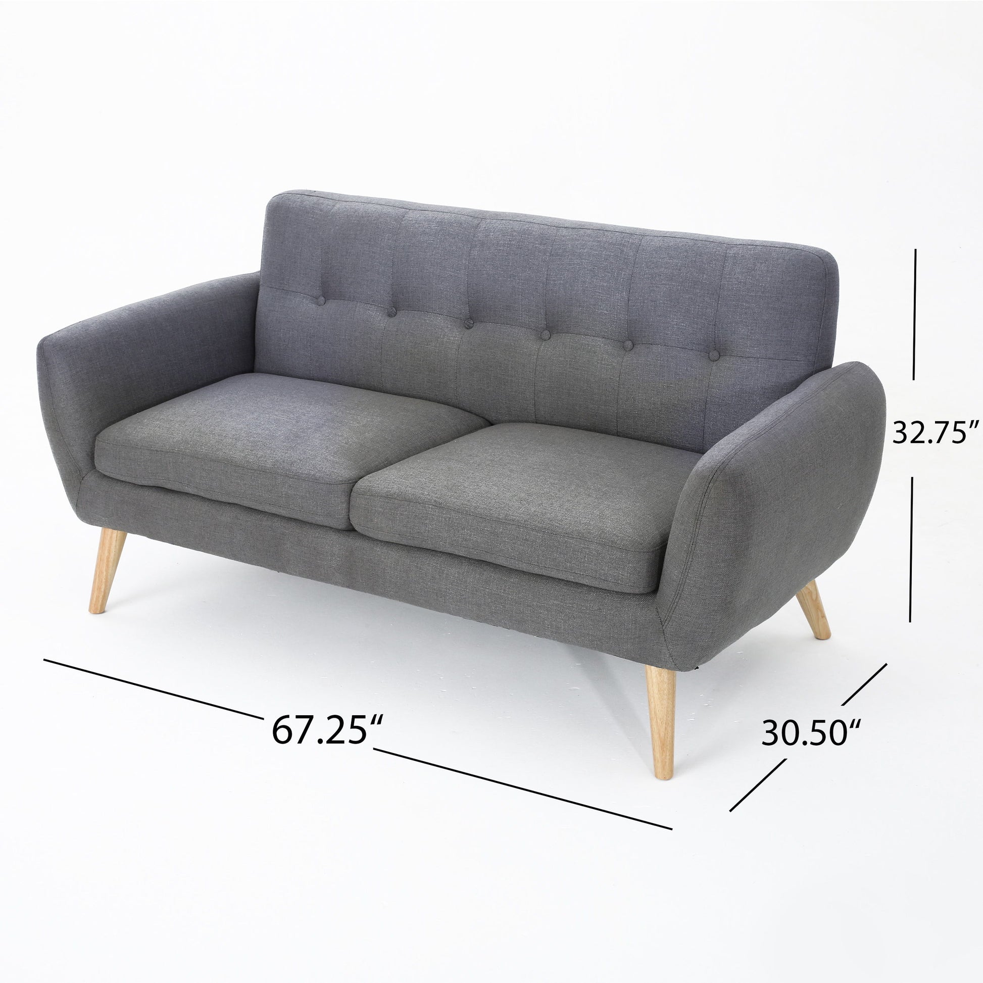 Mid Century Modern Loveseat Sofa With Button Tufted Backrest - Dark Gray