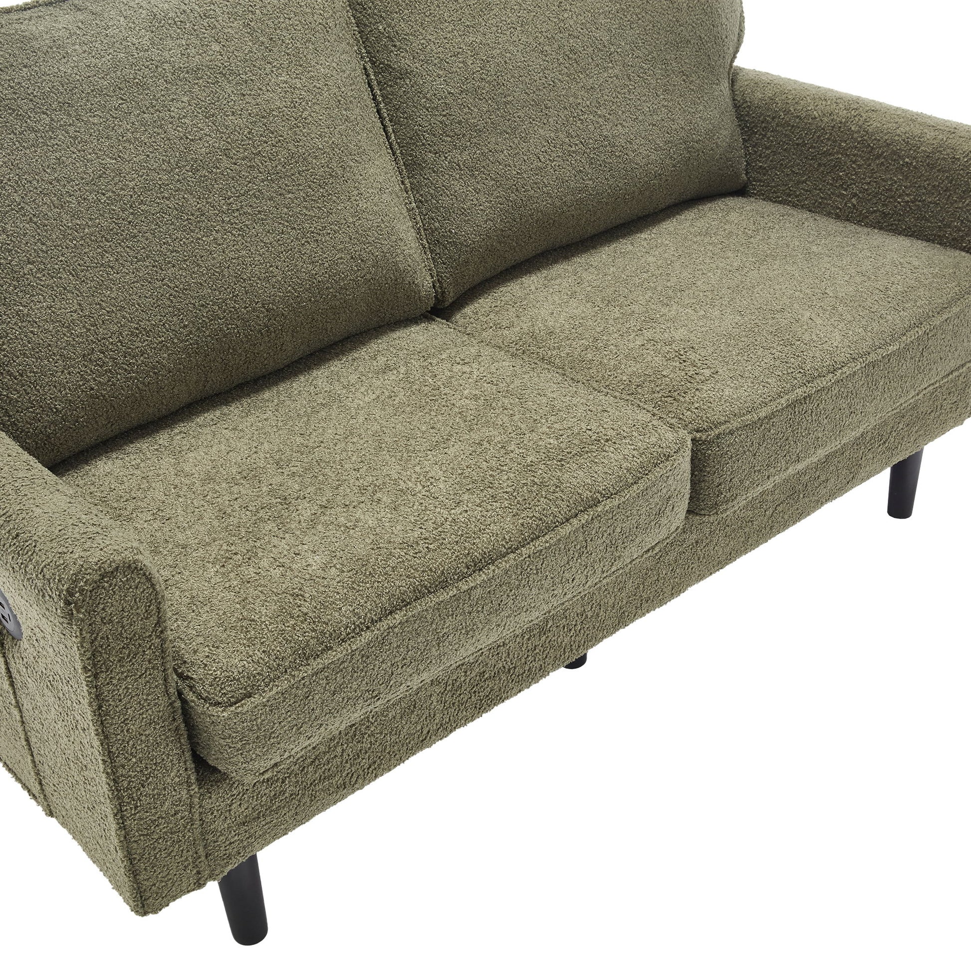 Mid Century Modern Loveseat Sofa With USB Ports, Removable Pillow Cover - Green