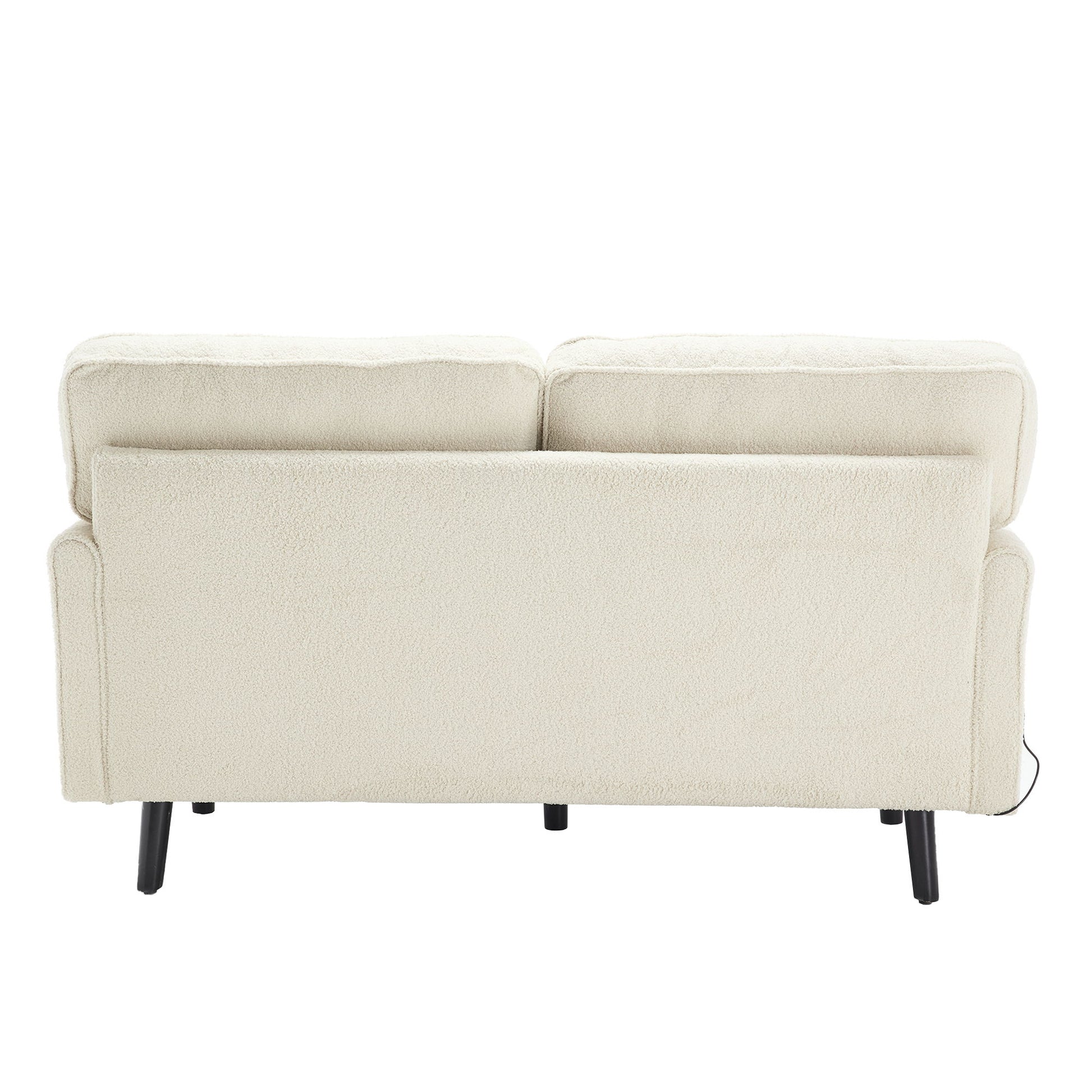 Mid Century Modern Loveseat Sofa With USB, Removable Pillow Cover - Beige