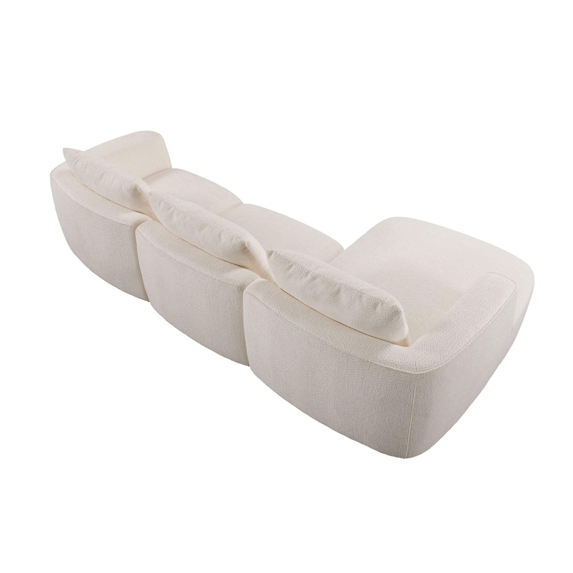 Mid - Century Modern Three Seater Sofa With Upholstered Footstool Fabric For Living Room Or Bedroom - Beige