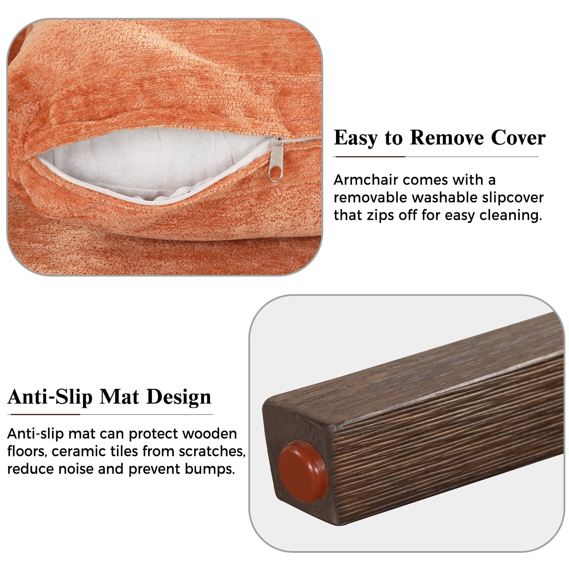 Mid-Century Modern Velvet Accent Chair, Leisure Chair With Solid Wood And Thick Seat Cushion For Living Room, Bedroom, Studio - Orange