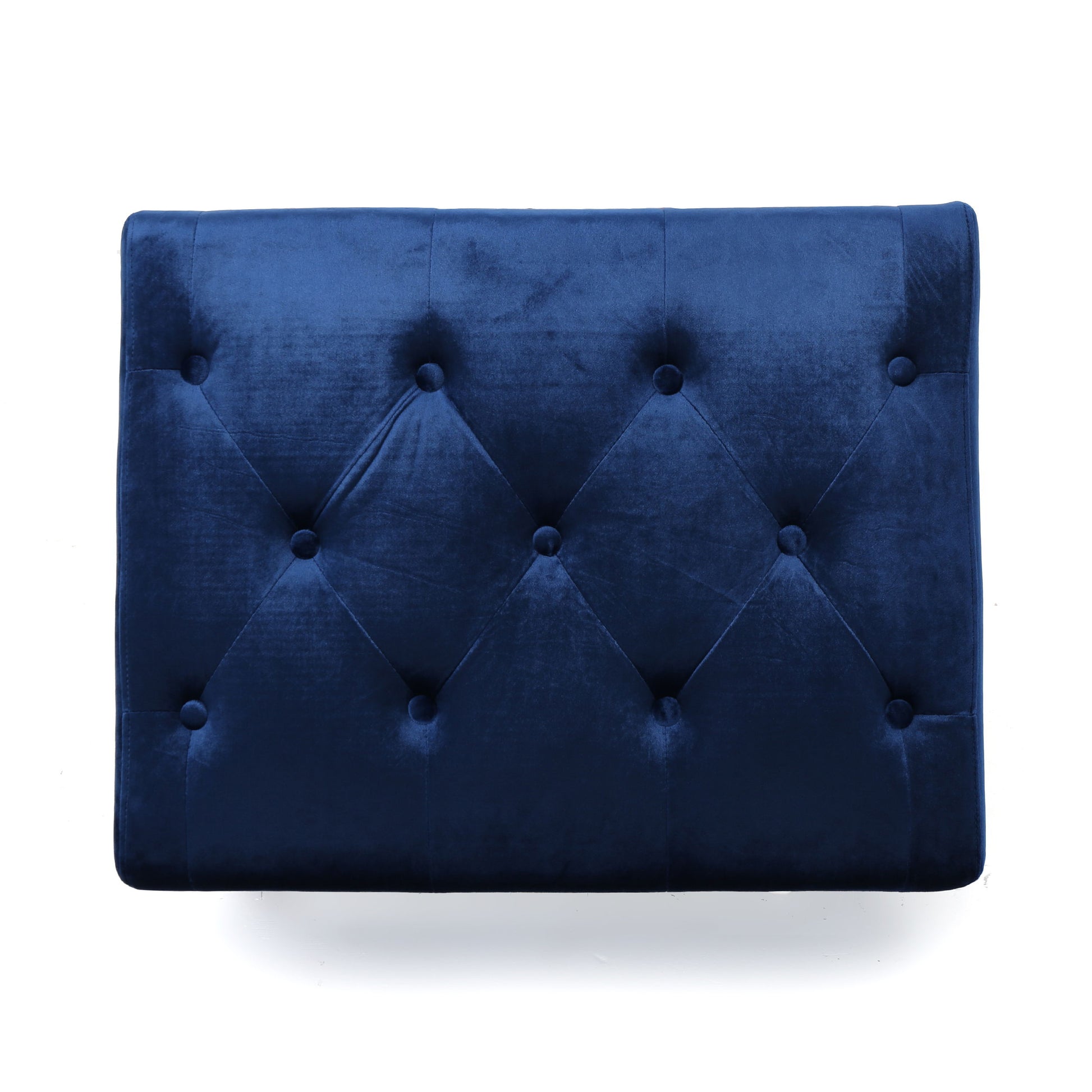 Mid Century Ottoman Velvet With Button Tufting With Birch Wood Legs - Navy Blue