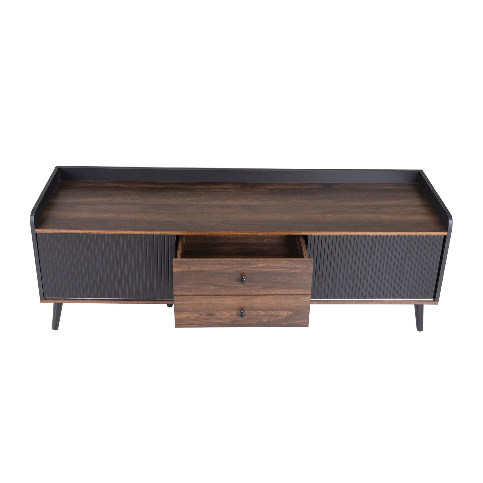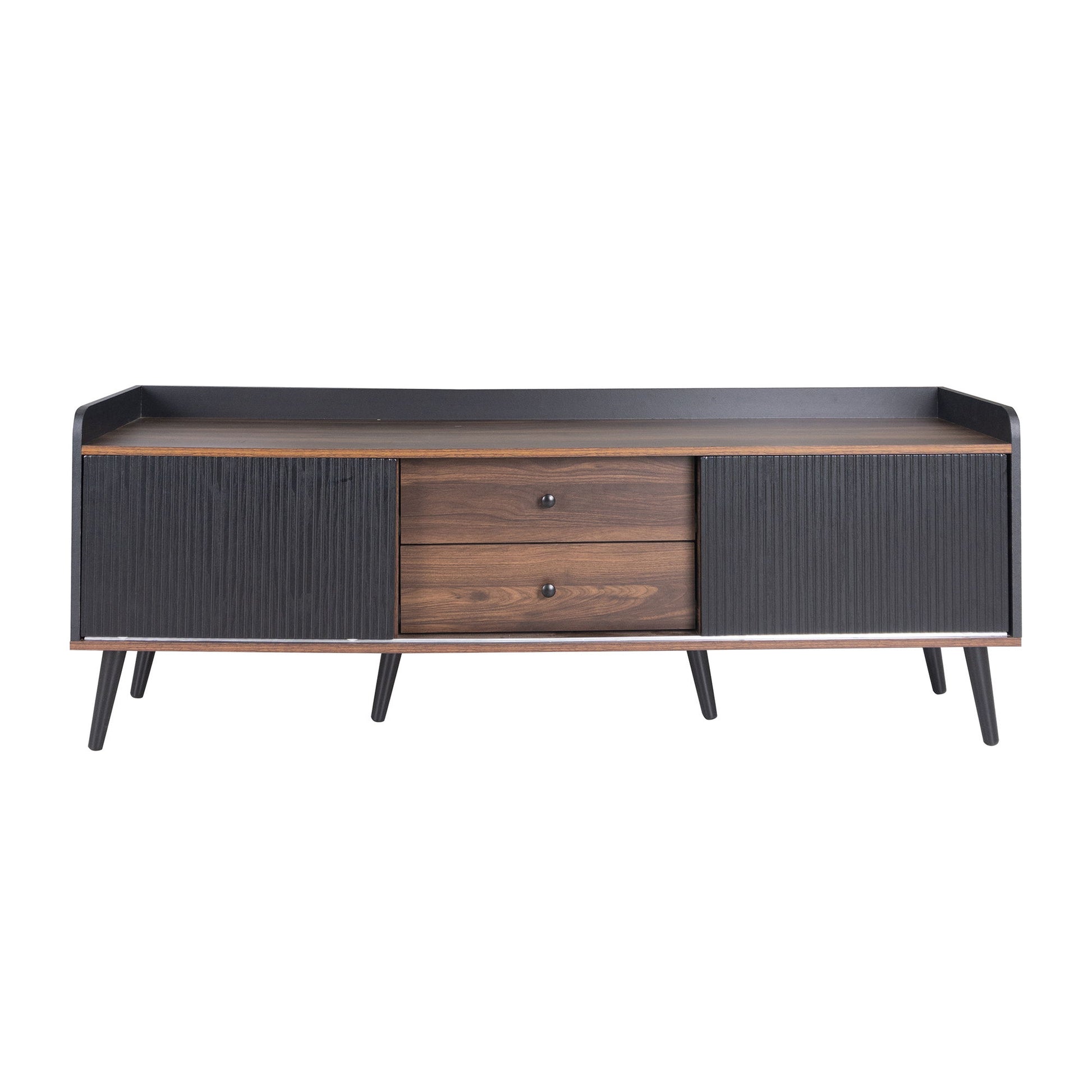 Mid Century TV Stand With 2 Cabinets & Open Compartments, Entertainment Center For Tvs Up To 70'', Television Console For Living Room - Dark Coffee / Black