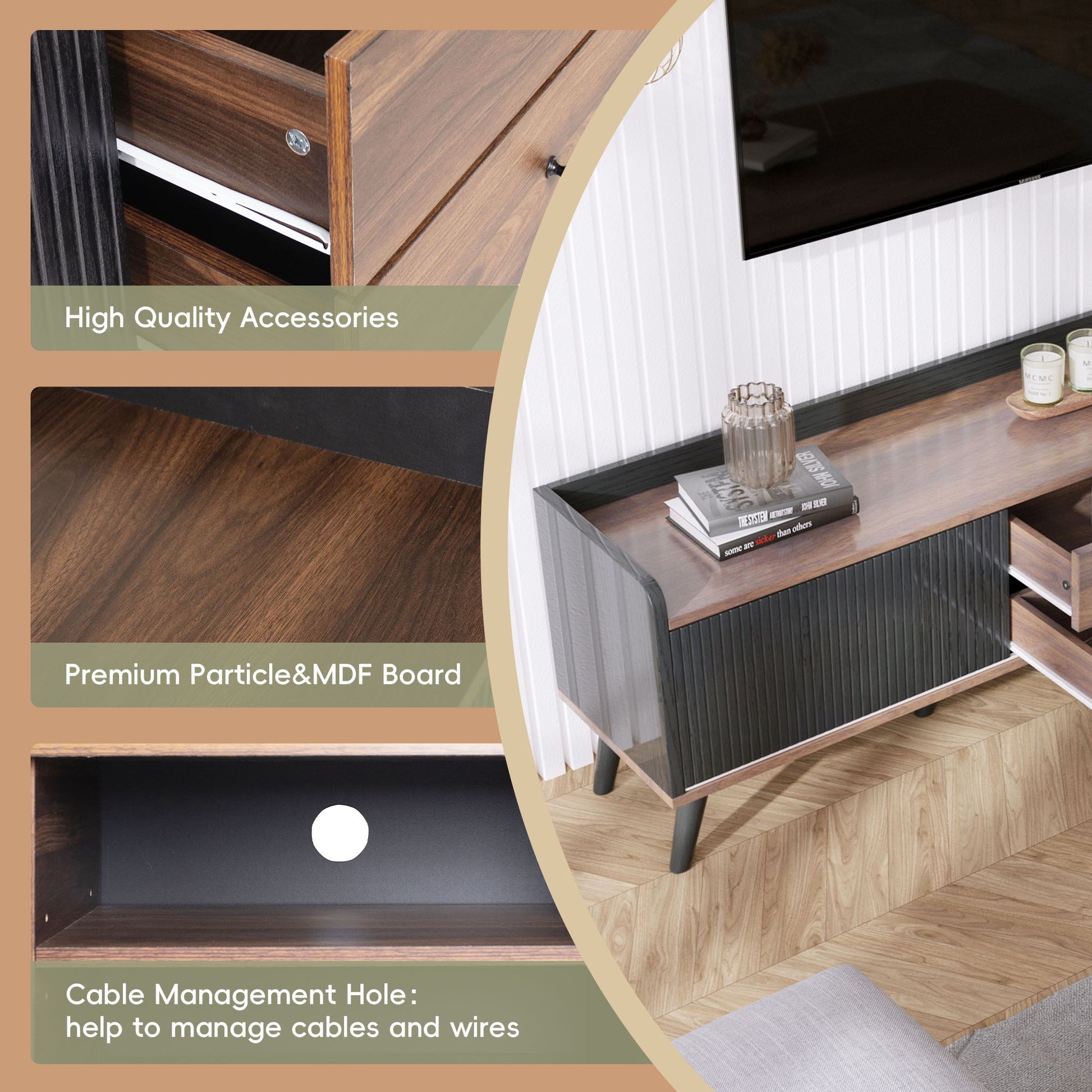 - Mid Century Style: The TV cabinet boasts a coffee and black color scheme, blending modern and retro elements. This unique design is visually impactful and complements various interior styles, making it a standout piece in any living space.