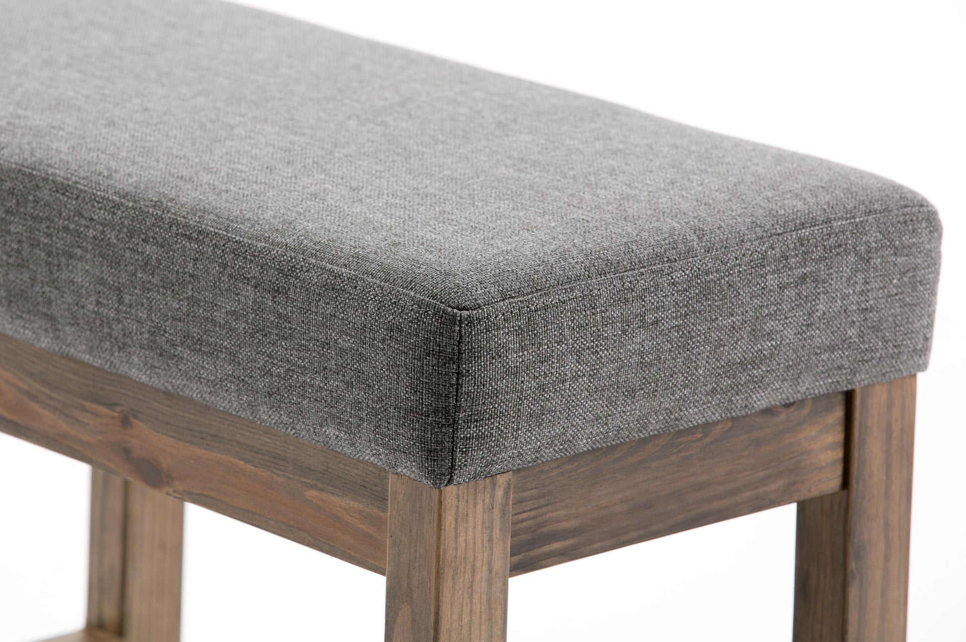 - Features a solid-wood framed base and legs, and a comfortable cushioned seat