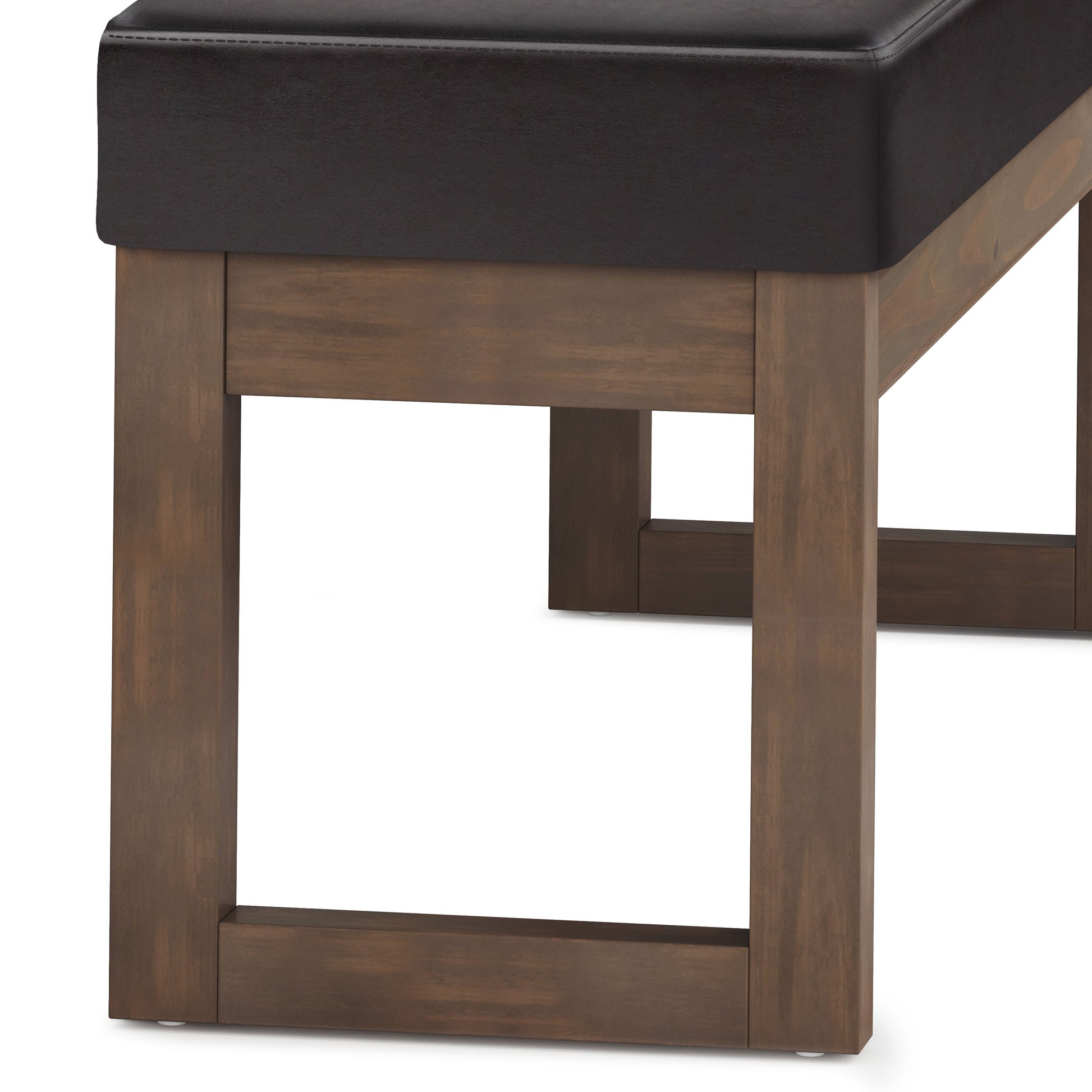- Upholstered with a durable Tanners Brown Vegan Faux Leather