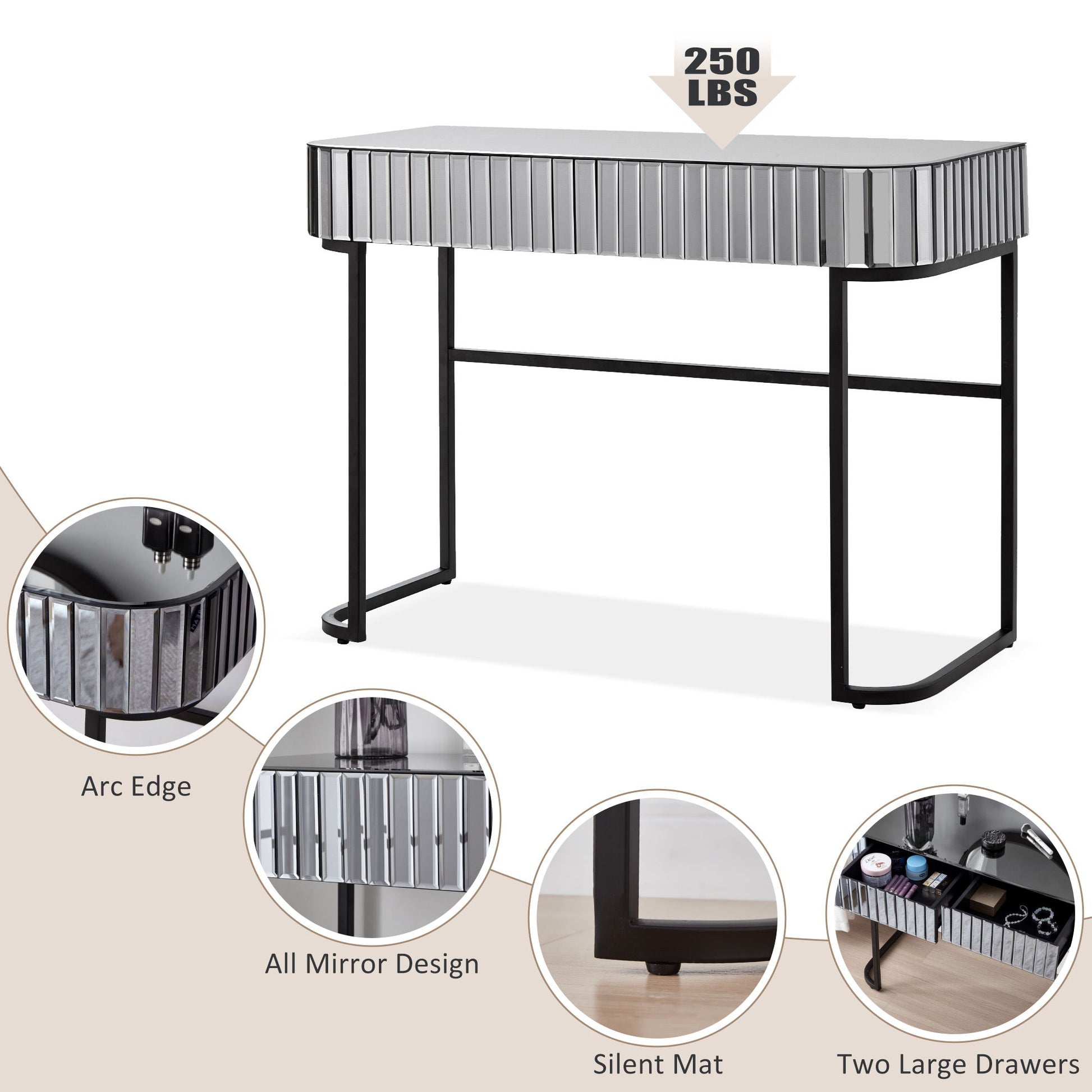 Mirrored Makeup Vanity Table With Stainless Steel Base, Mirrored Console Dressing Table With 2 Drawers, Versatile Desk For Bedroom And Office - Gray