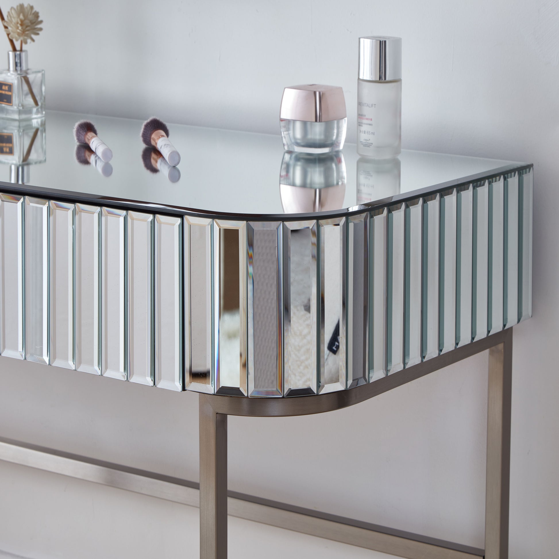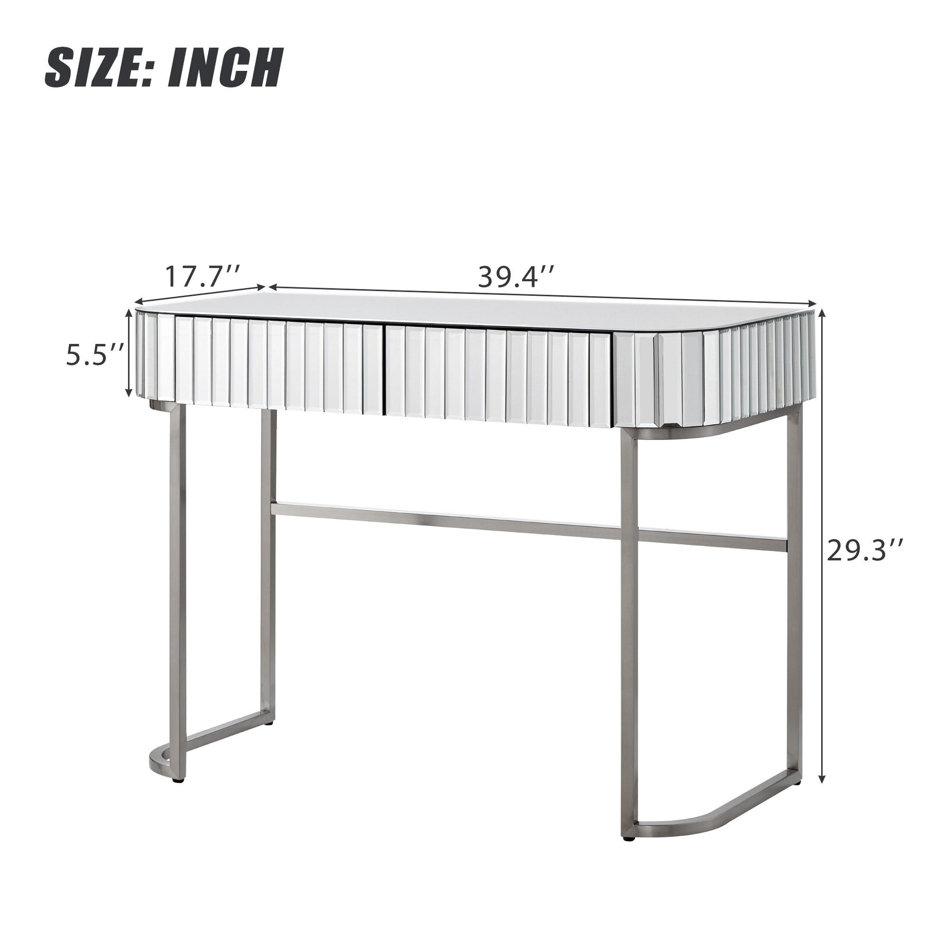 Mirrored Makeup Vanity Table With Stainless Steel Base, Mirrored Console Dressing Table With 2 Drawers, Versatile Desk For Bedroom And Office - Silver