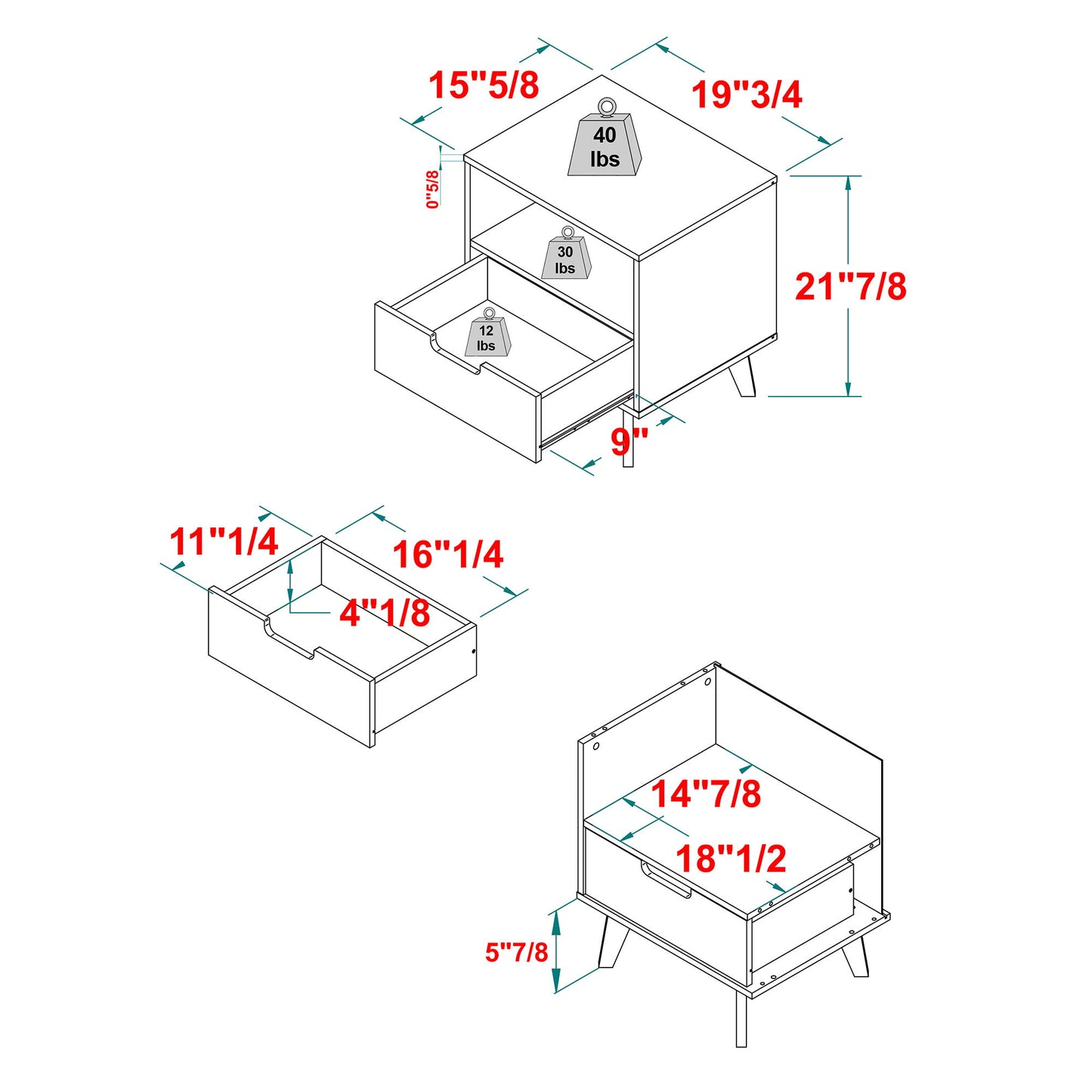 - Sturdy Stability: With its tapered mid-century legs providing support, this nightstand not only adds style to your bedroom but also provides strong support that will ensure stability and longevity for years to come.