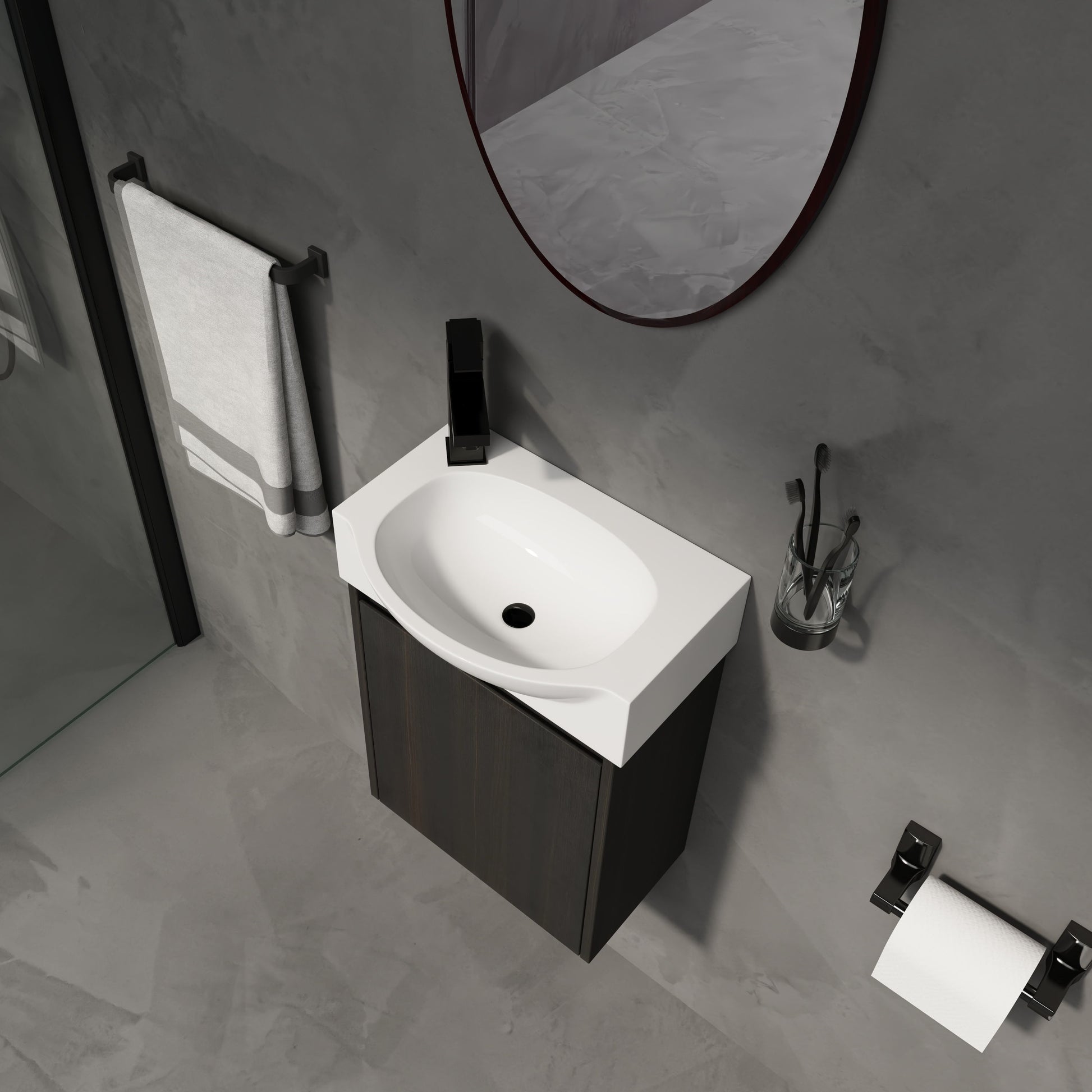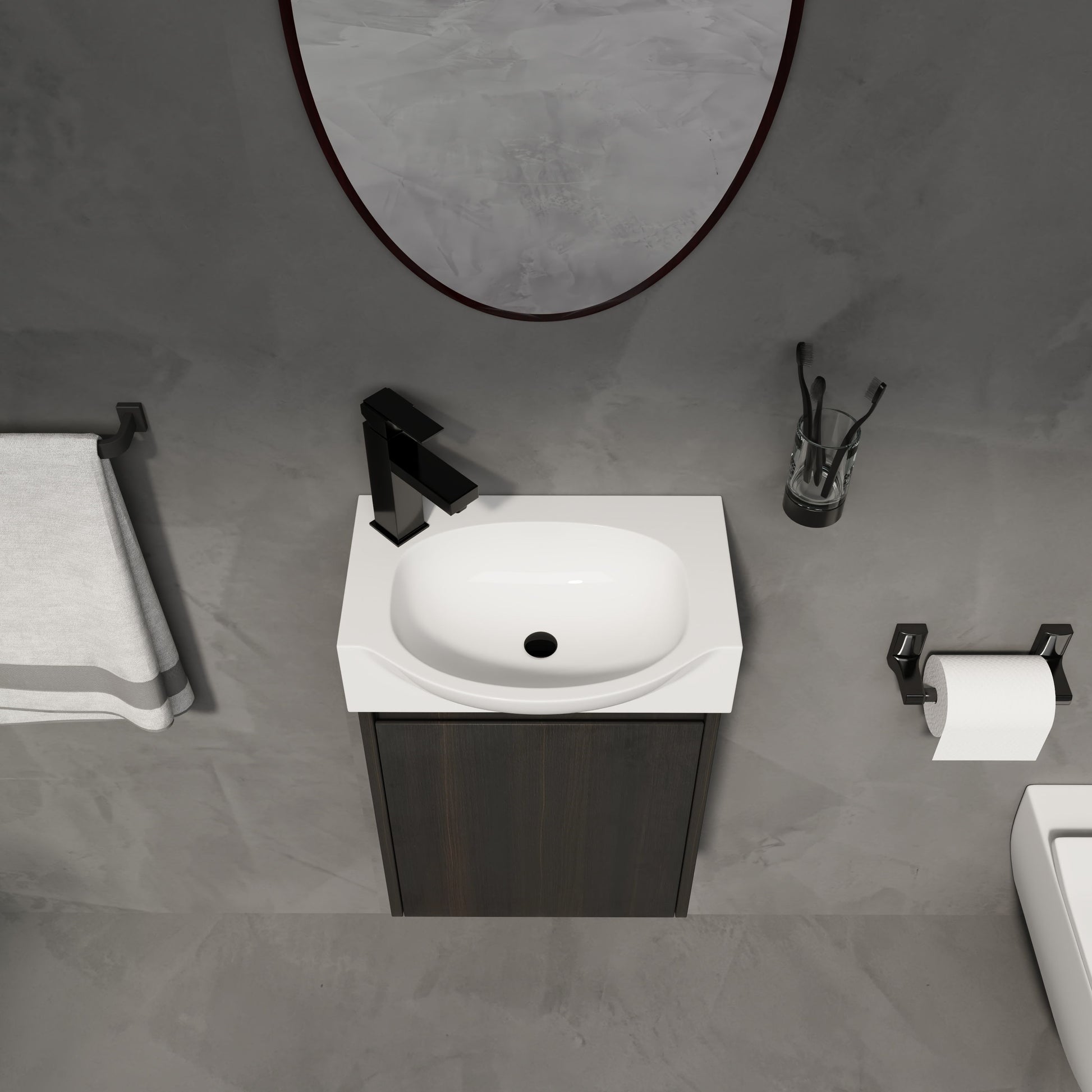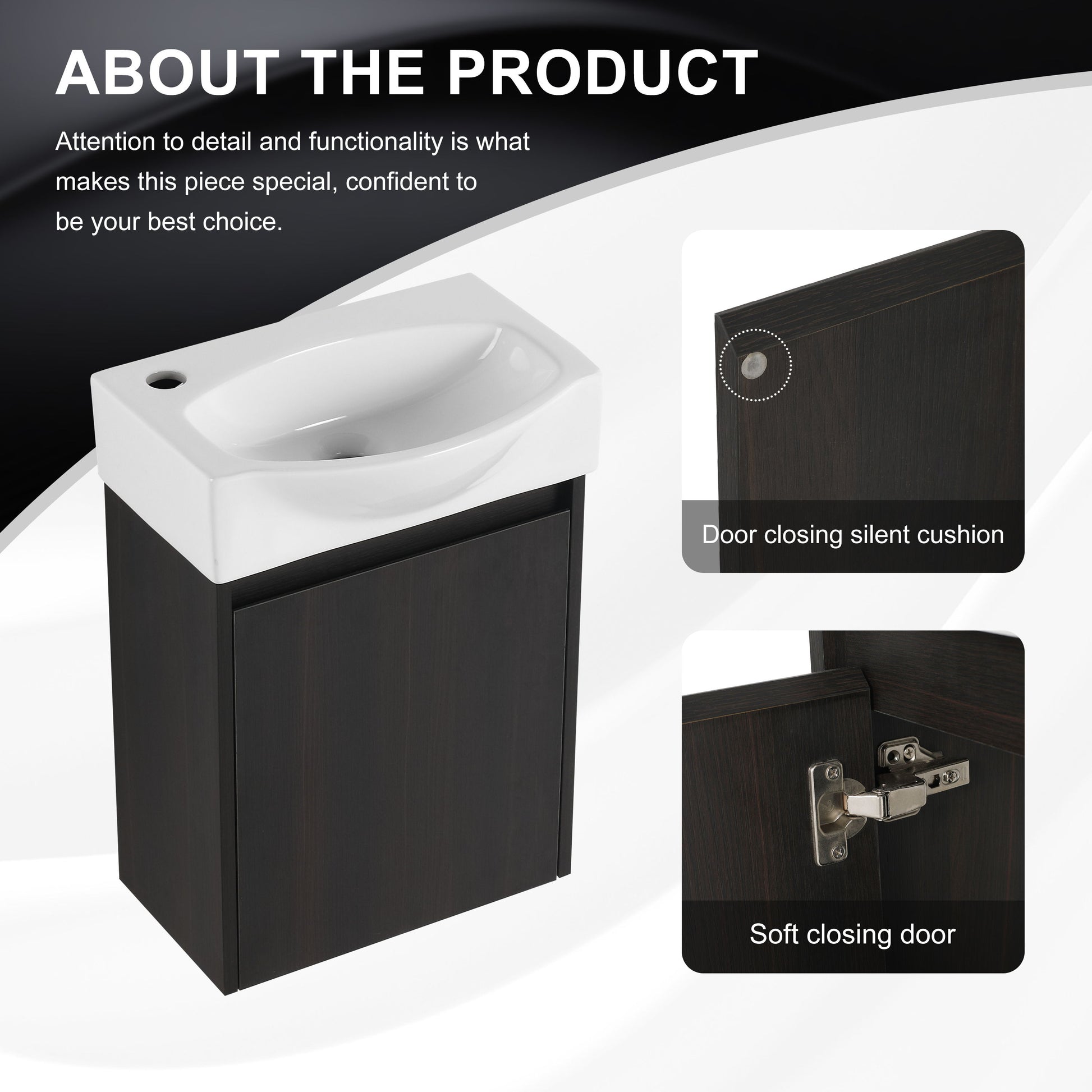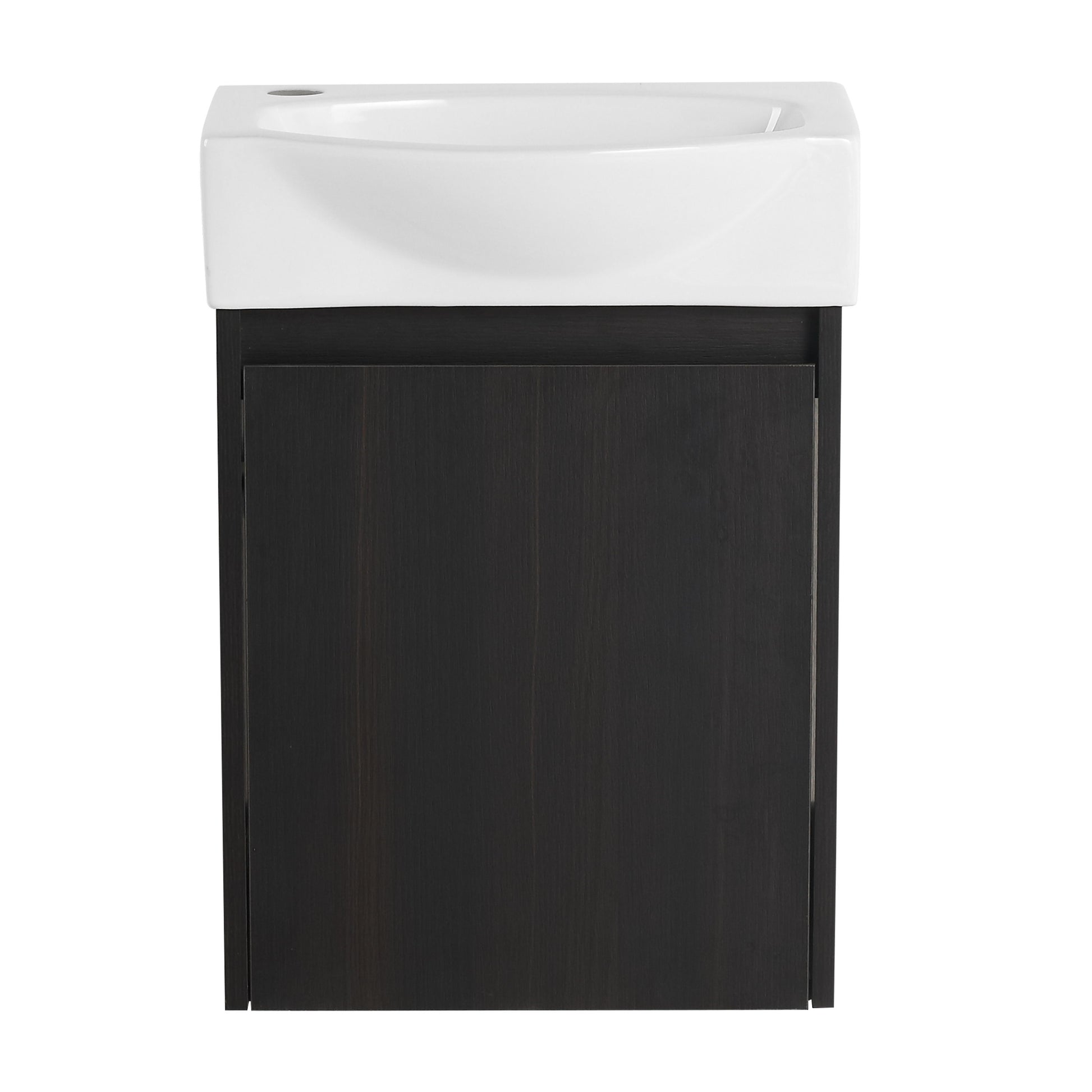 Modern 16" Bathroom Vanity Sink Combo With Ceramic Sink And Cabinet For Small Spaces - Black