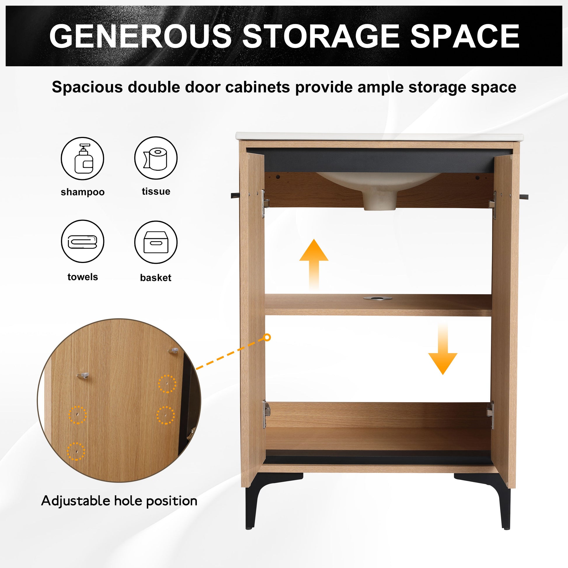 - [Spacious Storage]: Double door cabinet keeps items dry and organized, saving space.