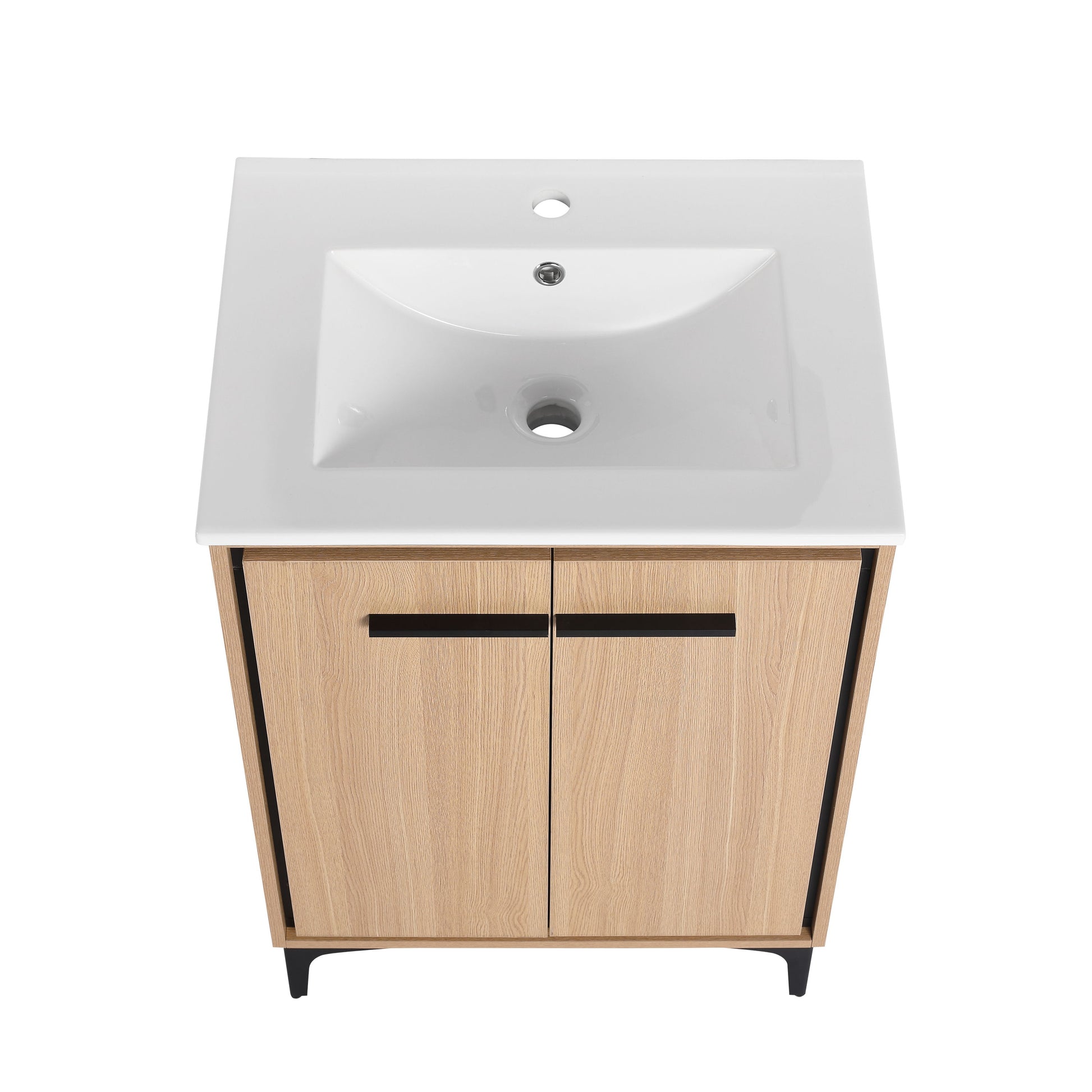 Modern 24" Bathroom Vanity Base With Basin And Storage Cabinet - Oak