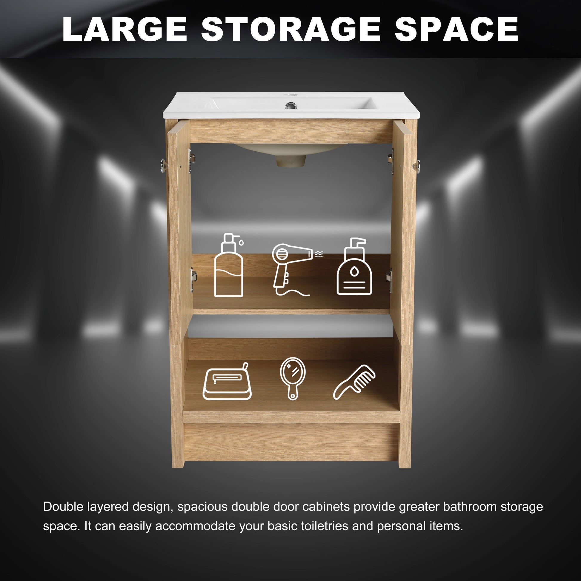 Modern 24" Freestanding Bathroom Vanity With Ceramic Sink And Soft Closing Doors - Oak