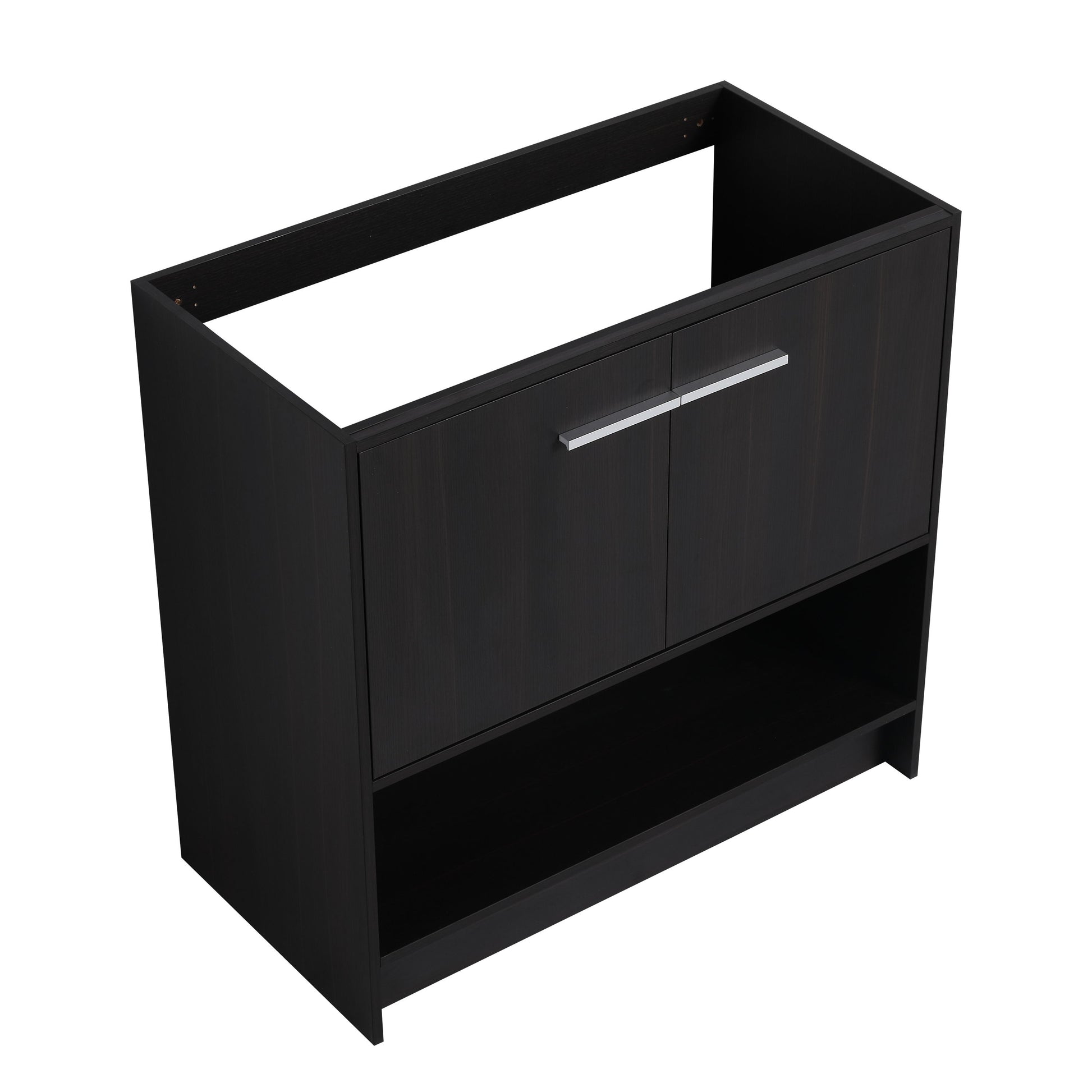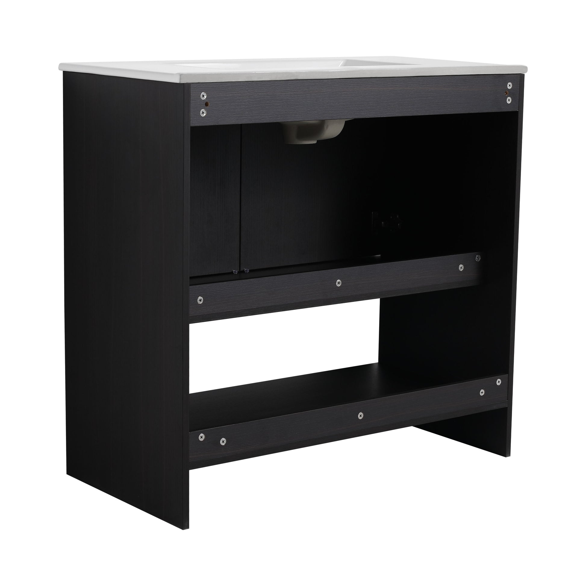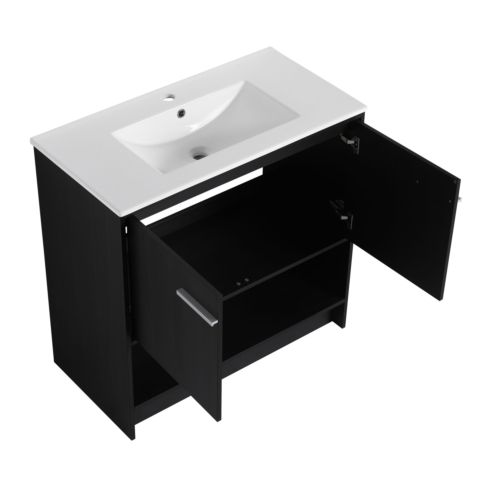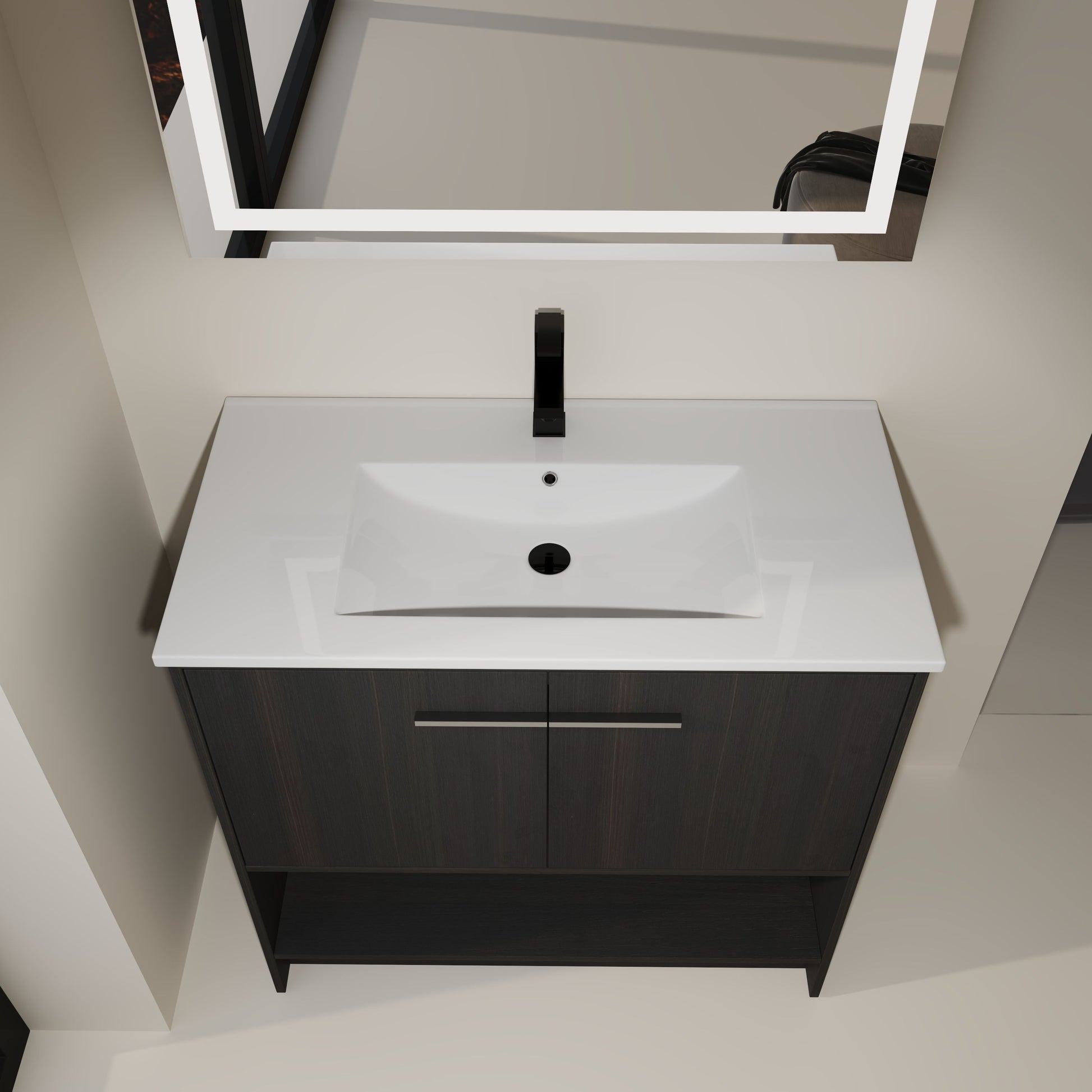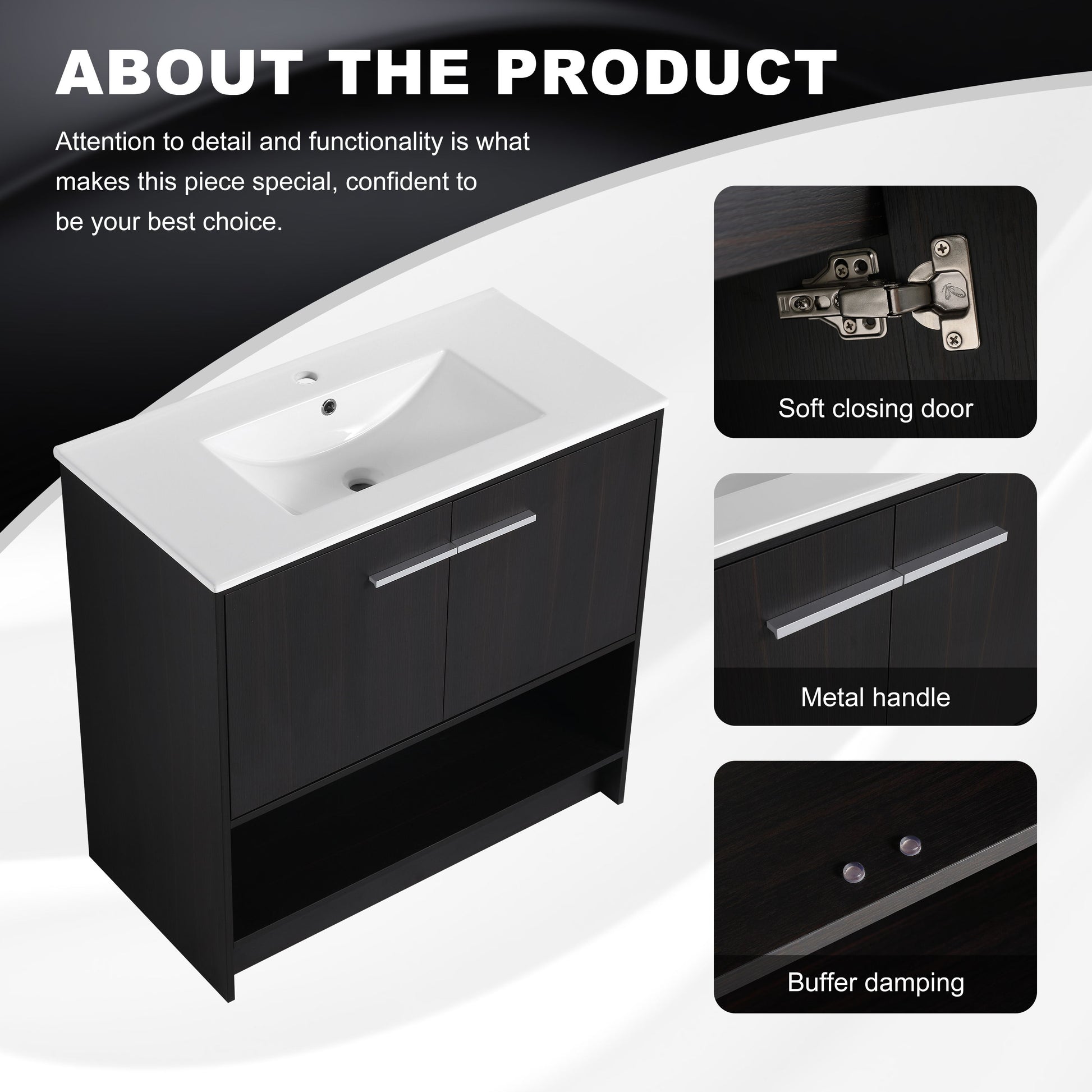 Modern 36" Bathroom Vanity With Ceramic Sink And Soft Closing Doors - Dark Oak