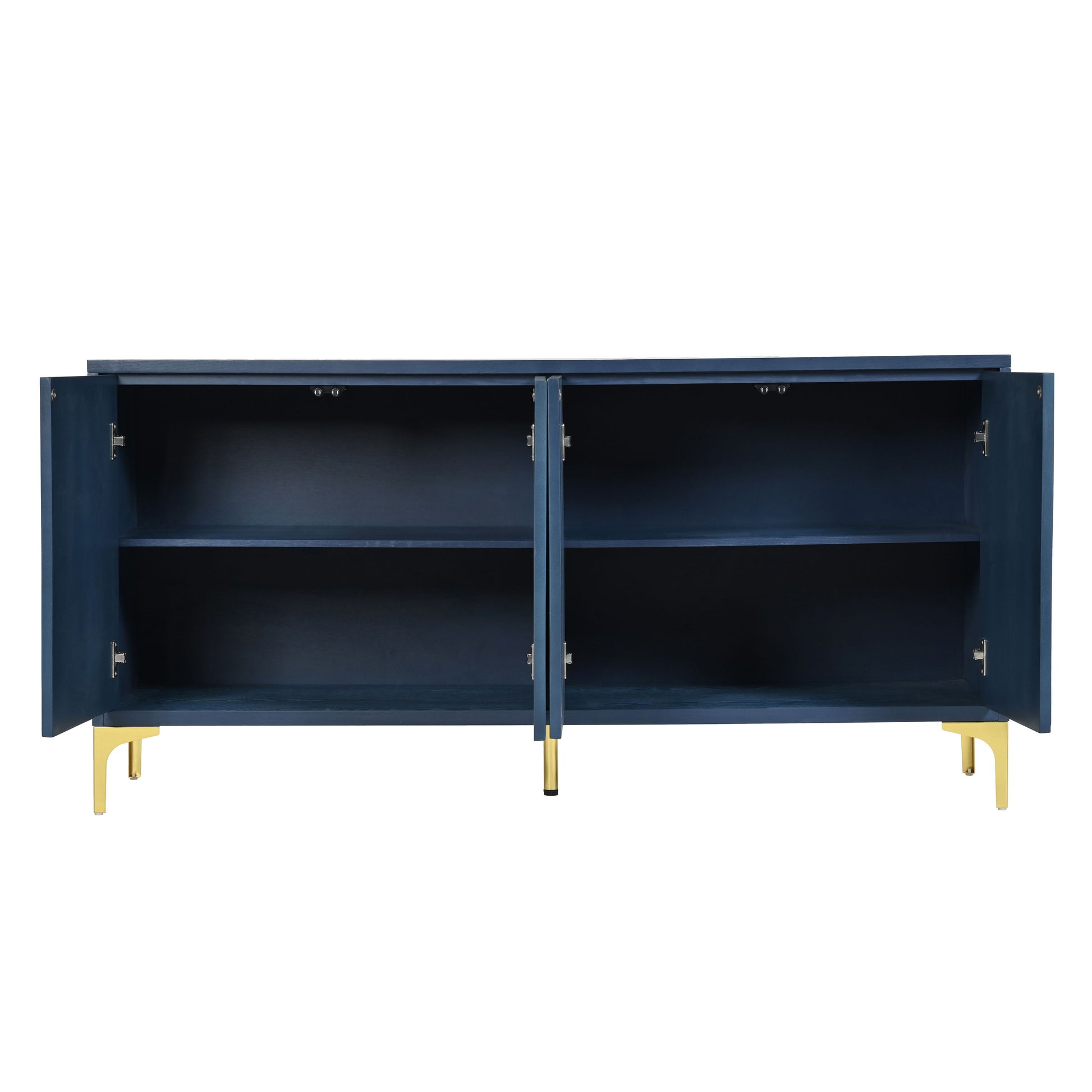 Modern 4 Door Sideboard With Creative Carved Surface And Adjustable Shelves - Light Blue