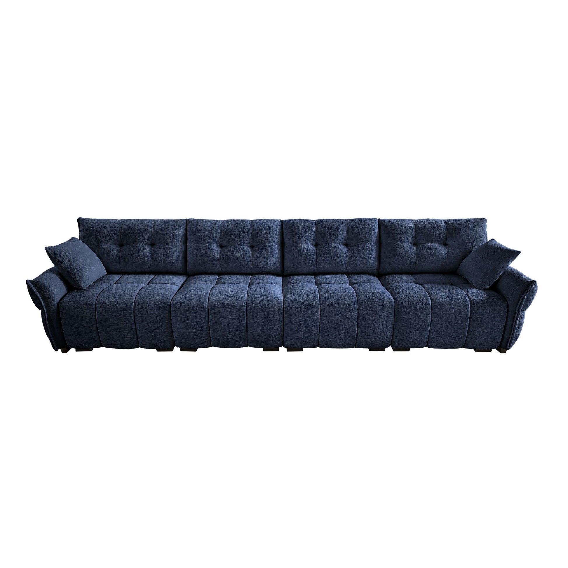 Modern 4 Seater Sofa Frame In Premium, High Resilience Cushions, Versatile Seating - Blue