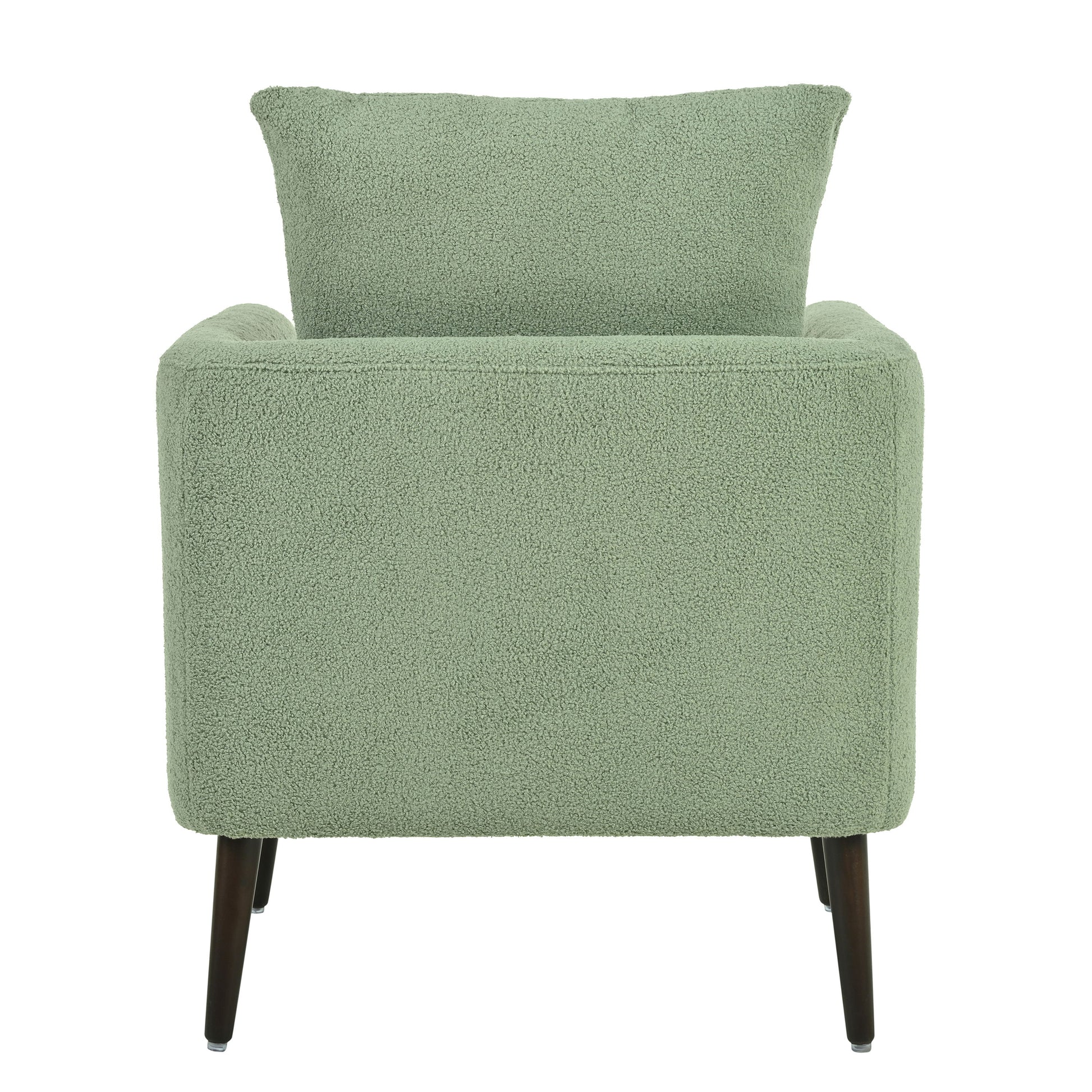 Modern Accent Chair, Upholstered Armchair For Living Room, Mid Century Fabric Lounge Chair With Pillow, Comfortable Reading Chair With Wood Legs For Living Room, Reception Room - Light Green