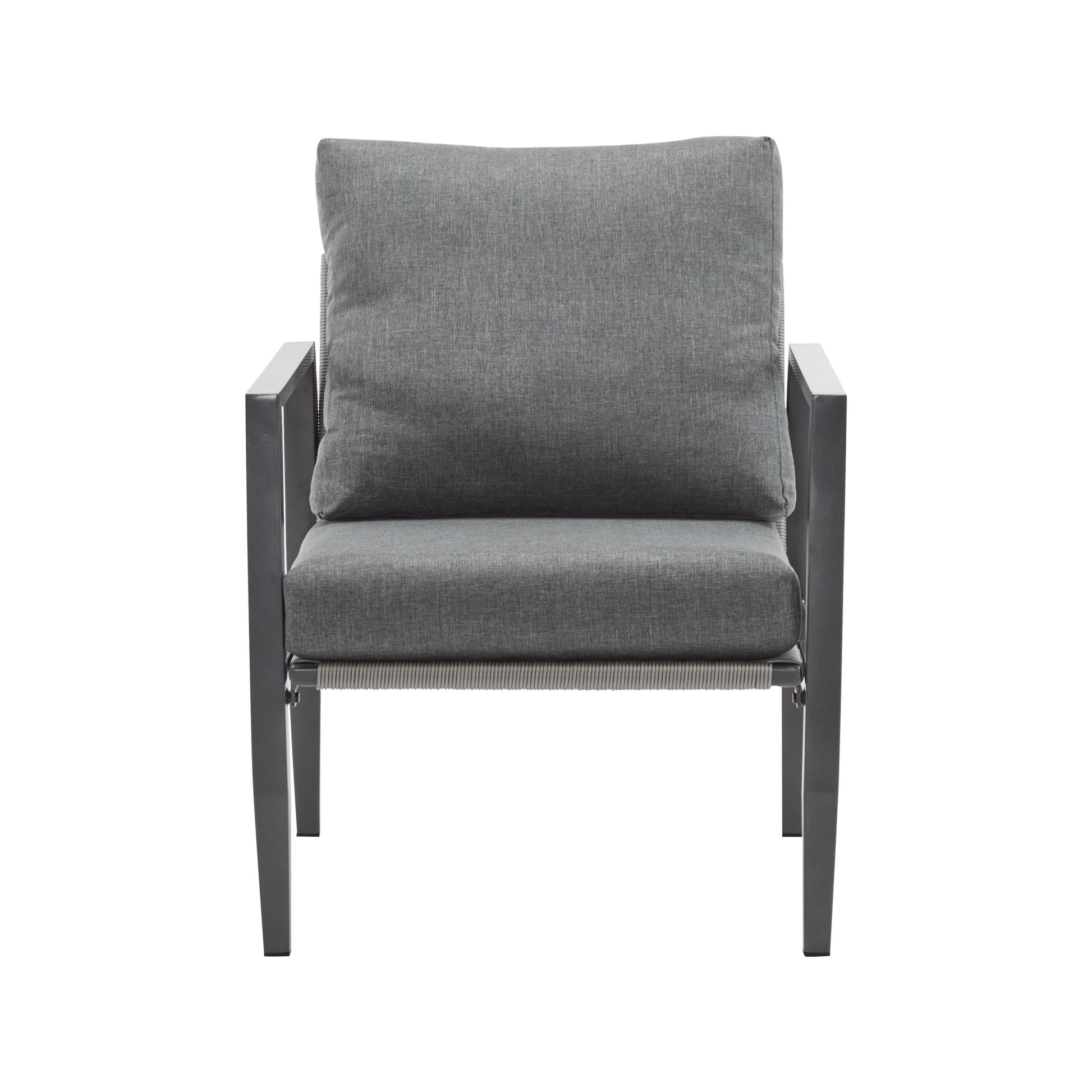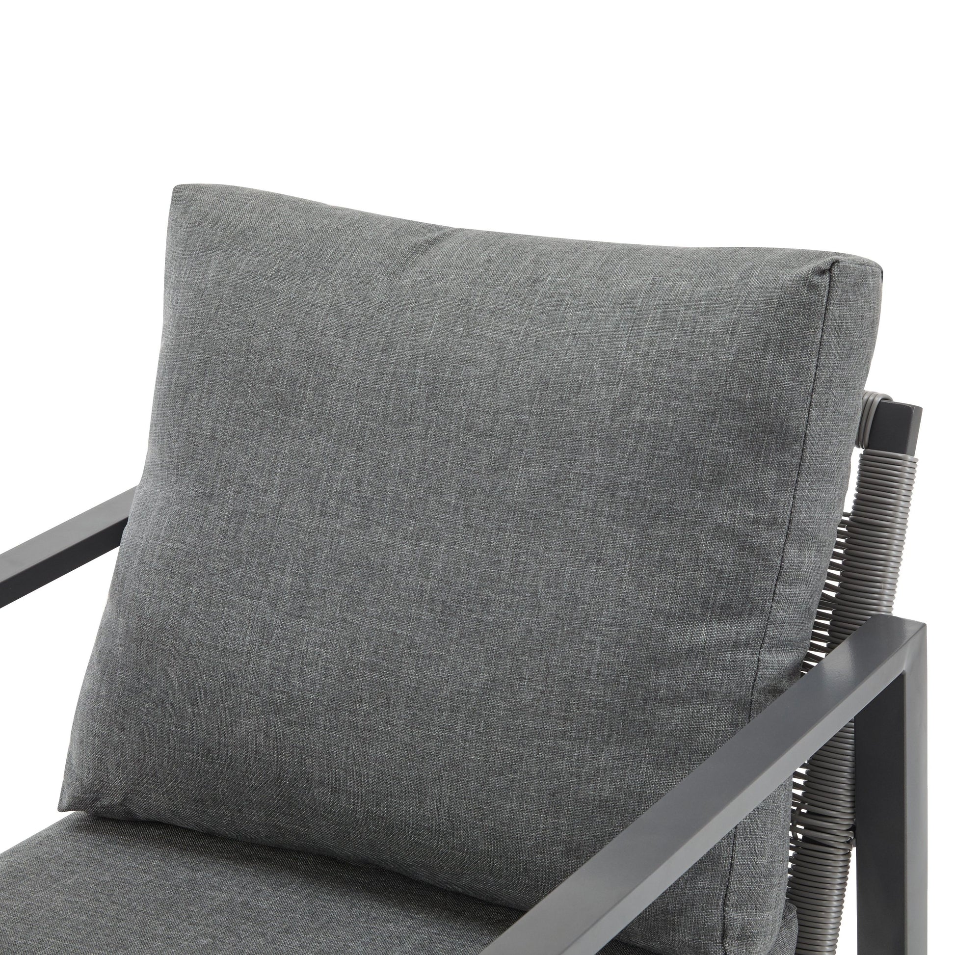 Modern Aluminum Lounge Chair With Rope Accents And Cushions For Indoor And Outdoor Spaces - Gray