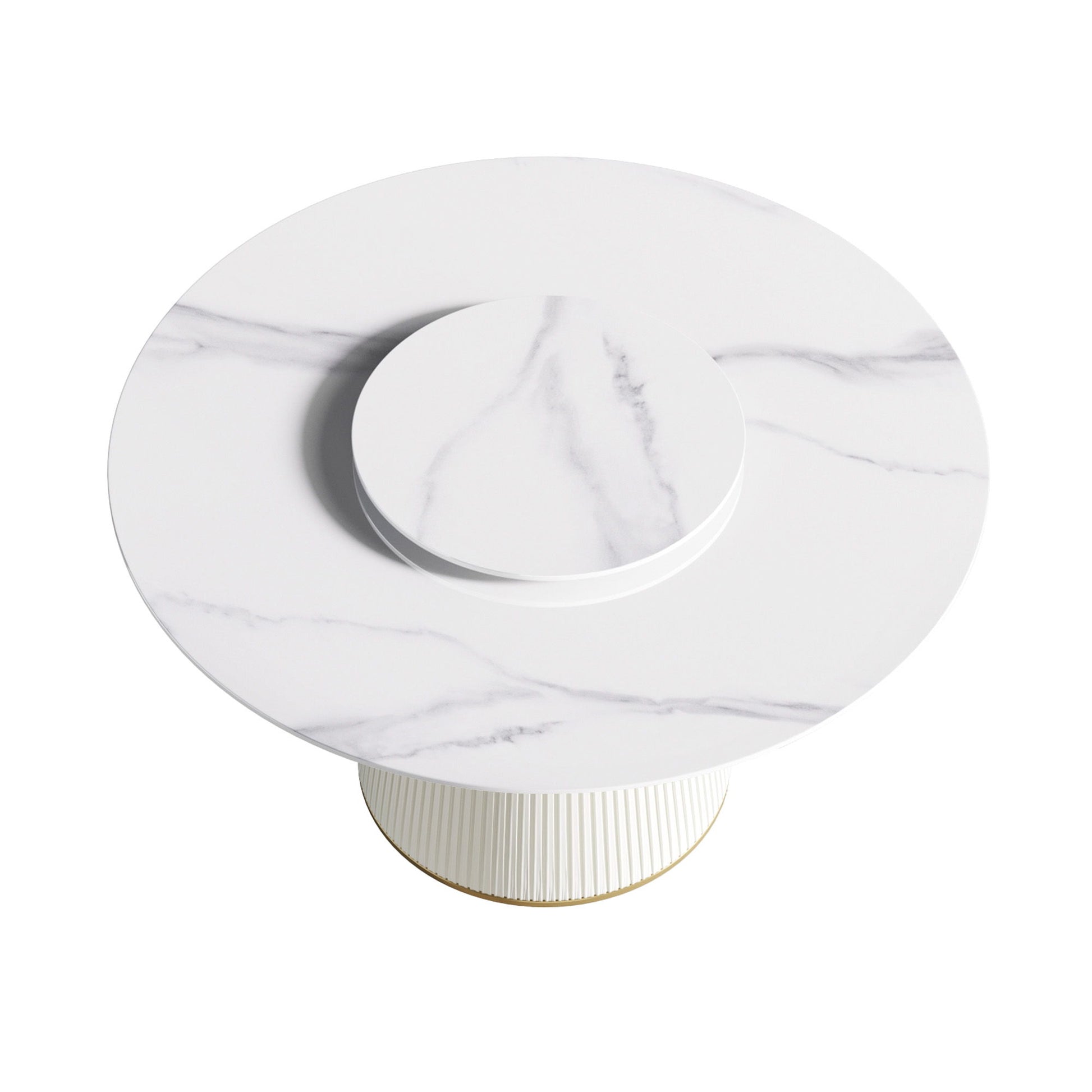 Modern Artificial Stone Round Plywood Base Dining Table, Can Accommodate 6 People, Artificial Stone Turntable (Not Including Chairs) - White / Beige