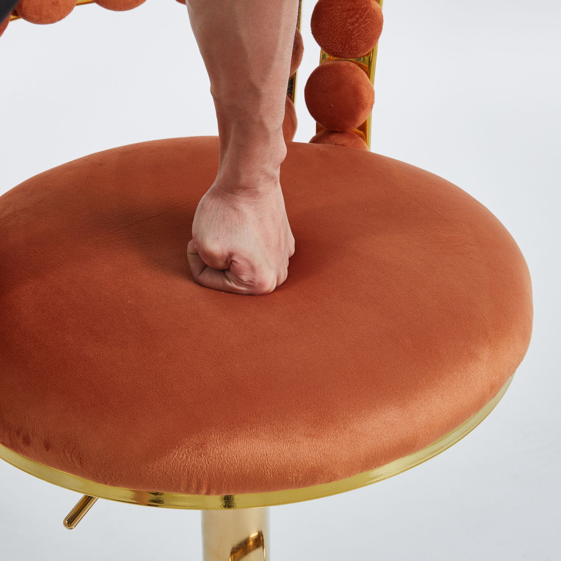 Modern Bar Chair With Iron Tube Legs, Soft Cushions And Comfortable Backrest, Suitable For Dining Room, Living Room, Cafe, Hairball Back, Bar Stool (Set of 2) - Golden