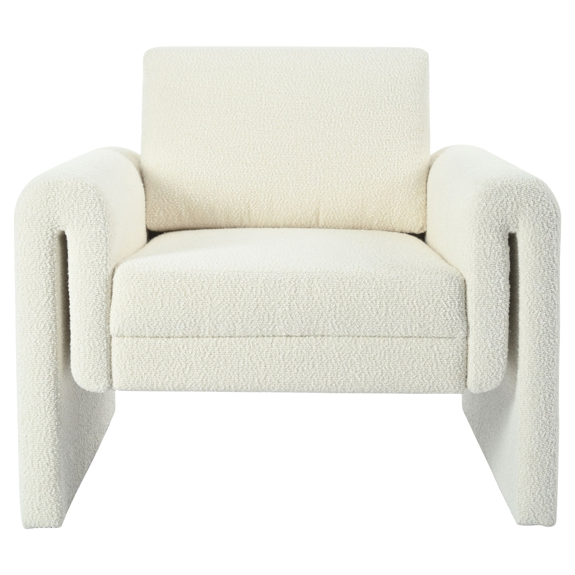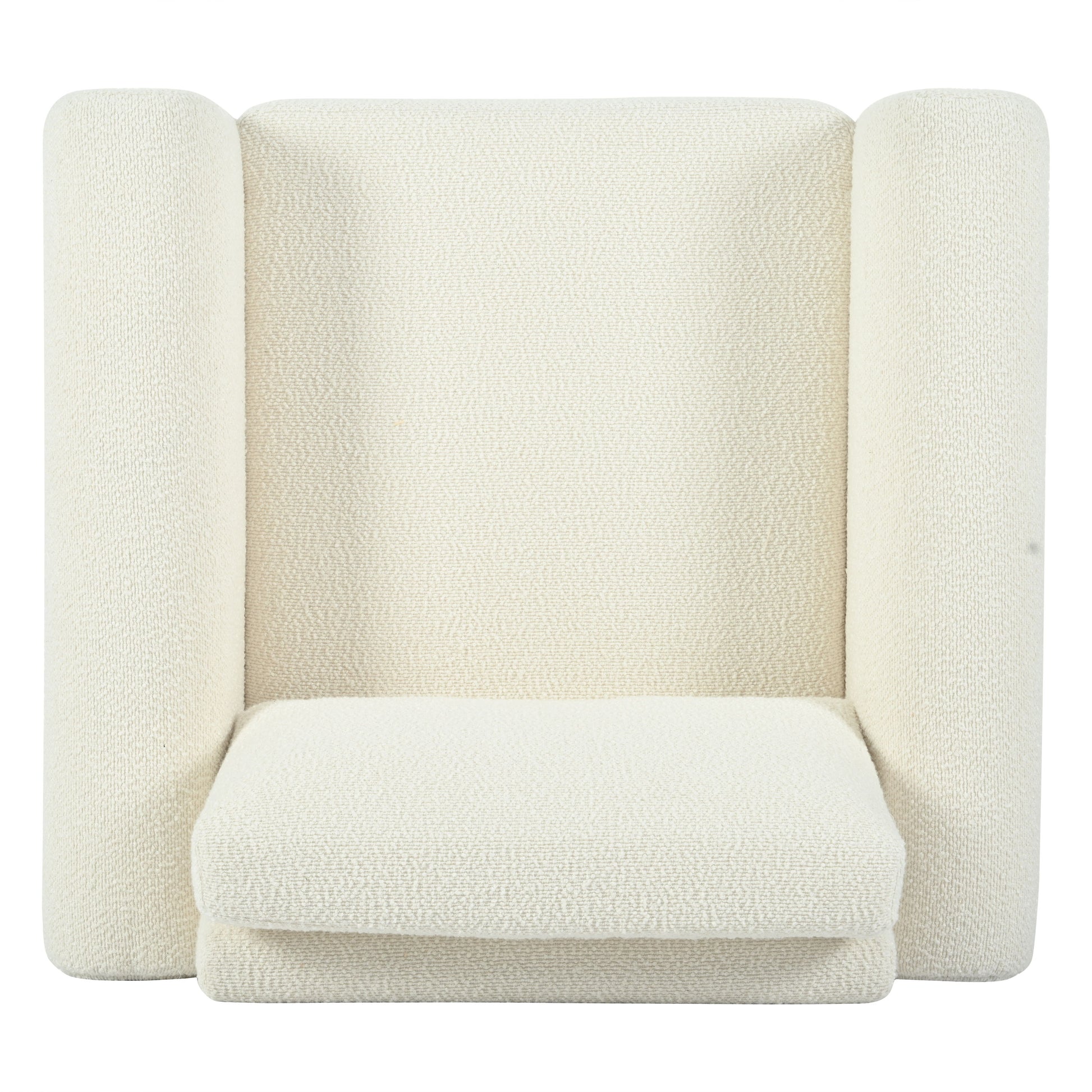 Modern Boucle Upholstered Accent Chair Luxurious Comfort & Sturdy Support, Solid Wood Frame - Ivory
