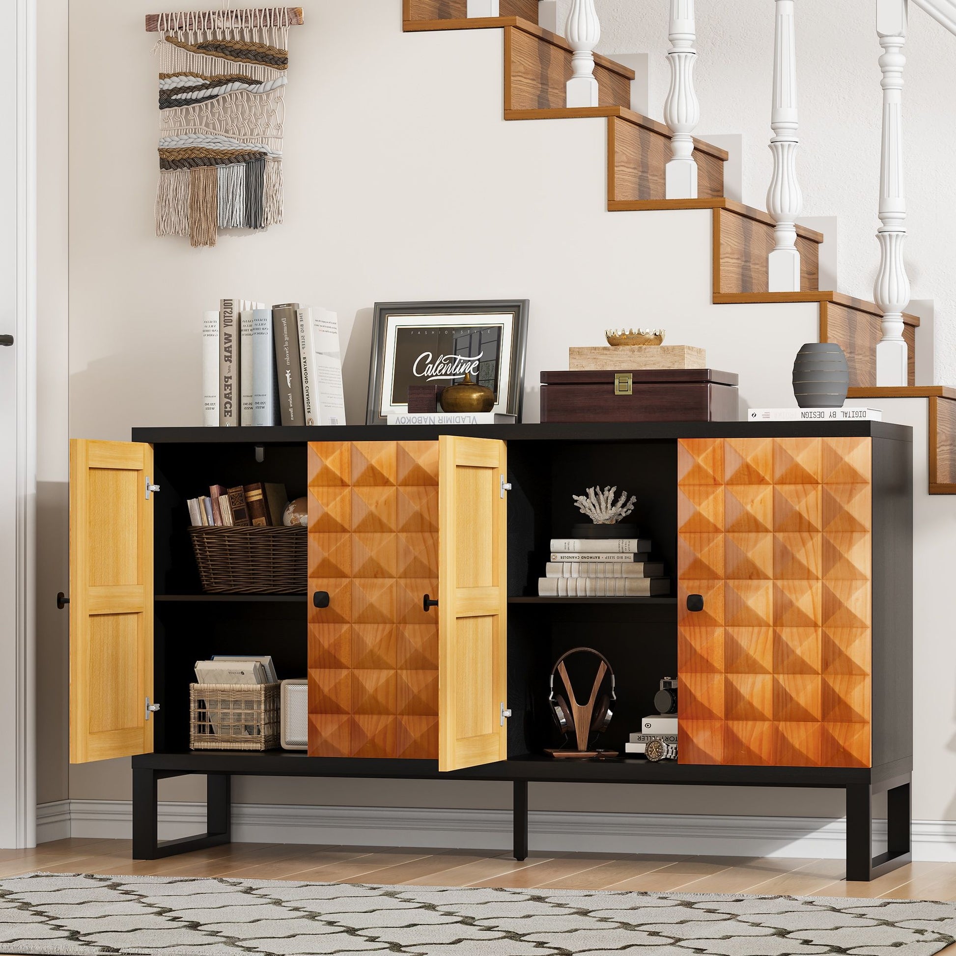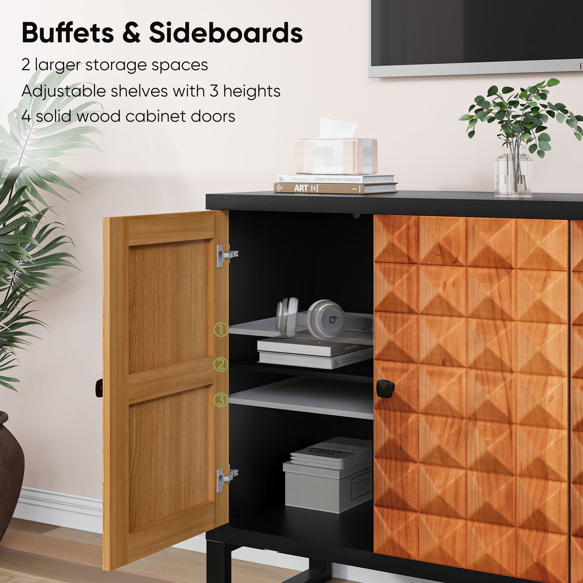Modern Buffet Cabinet With Storage Space, Retro Style 4 Door Wooden Storage Cabinet, Multifunctional Decorative Cabinet With Geometric Patterns, Suitable For Living Room, Dining Room, Entrance - Orange / Yellow