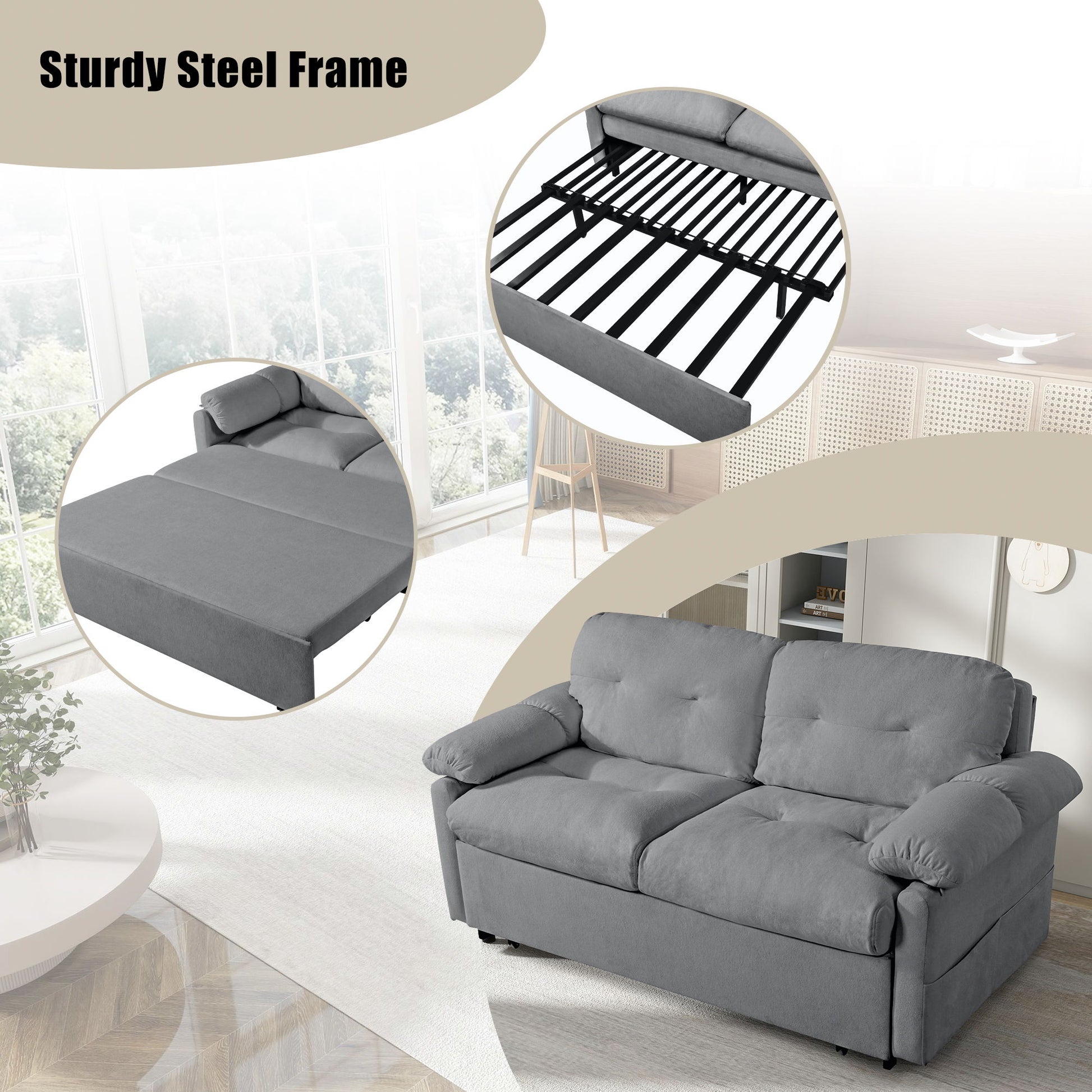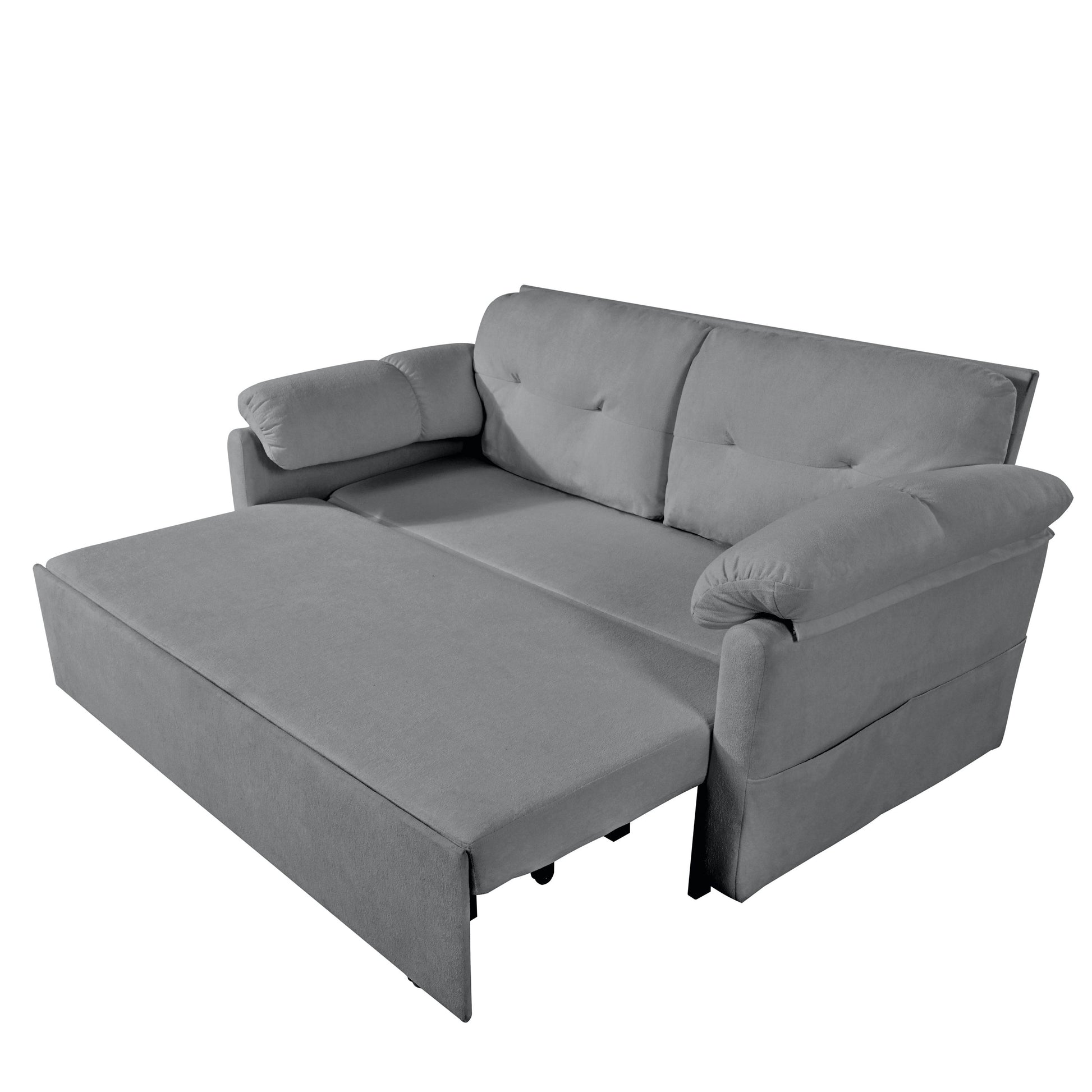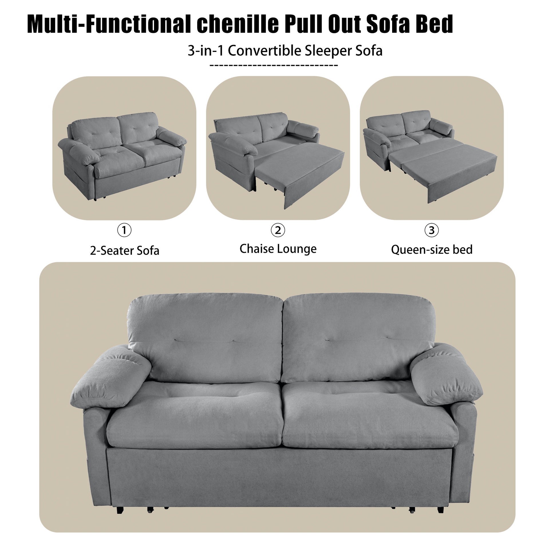 Modern Convertible Sleeper Sofa Bed With Pull Out Queen Design, Side Storage & Thick Cushions Chenille Loveseat For Living Room Or Bedroom 3 In 1 Function - Gray