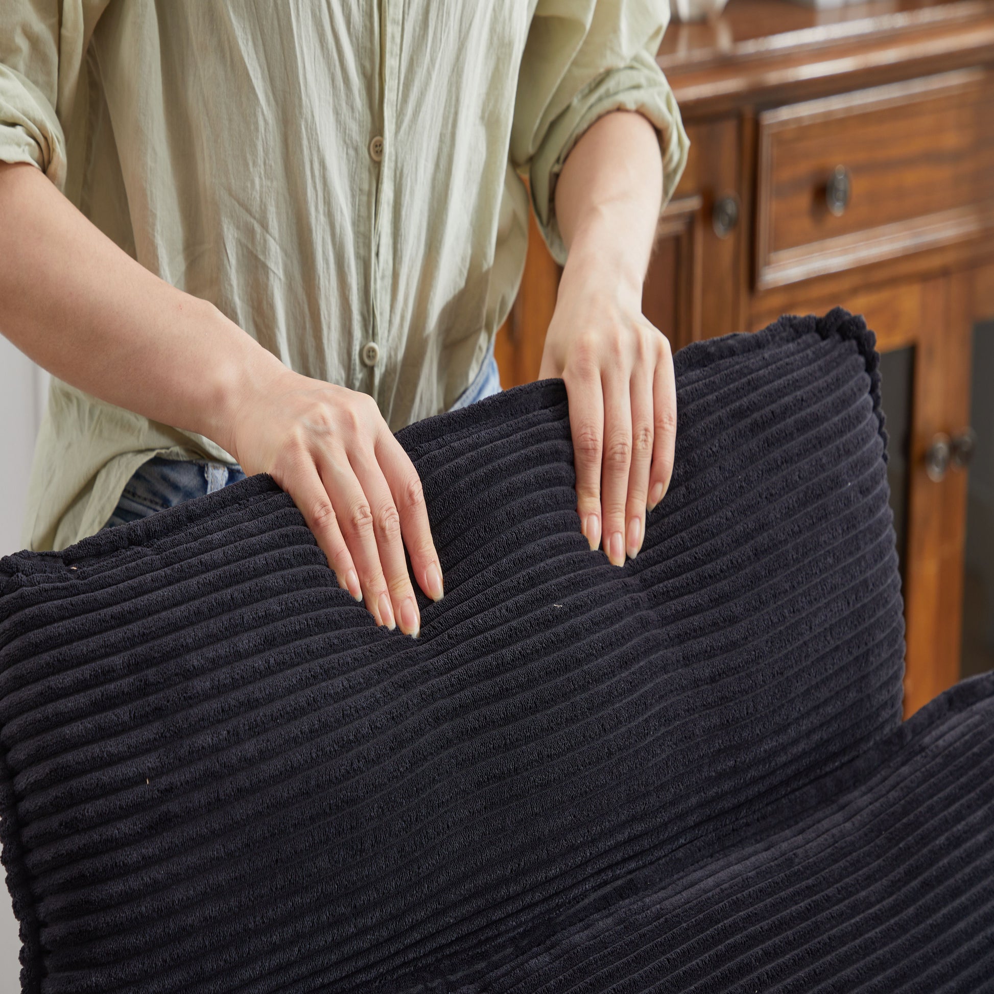 - Comfortable Experience: Upholstered with high-resiliency foam and breathable corduroy fabric for a soft, cozy feel.