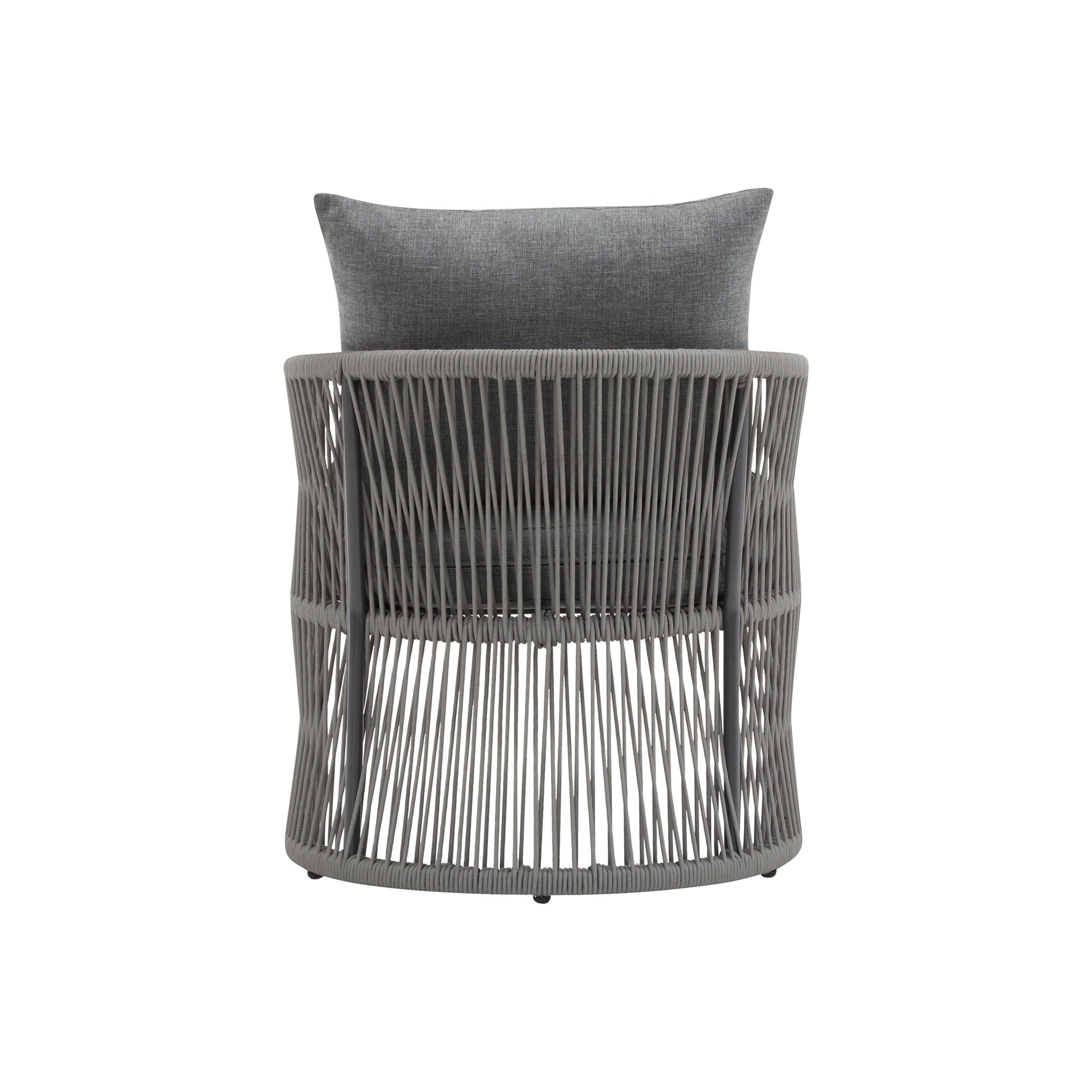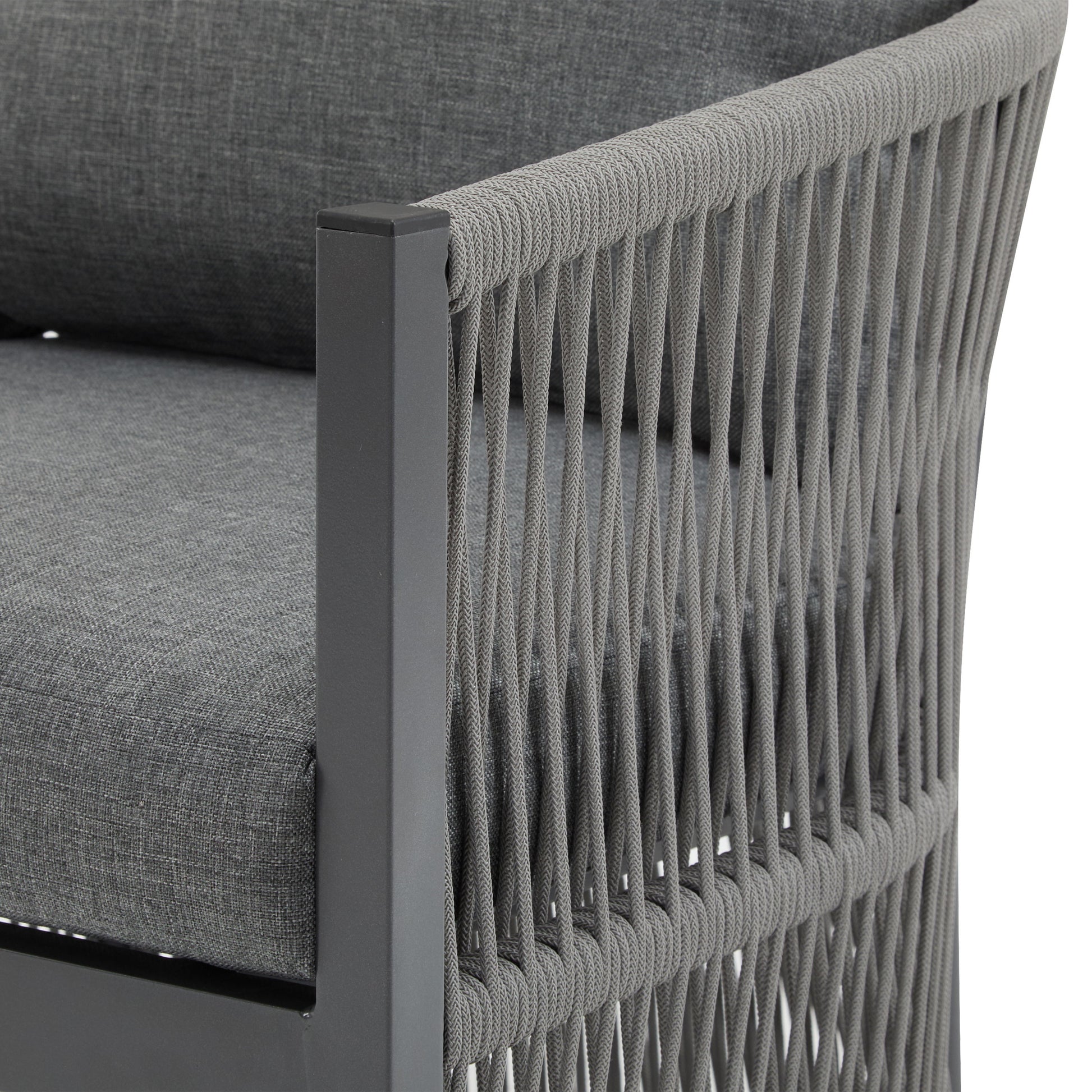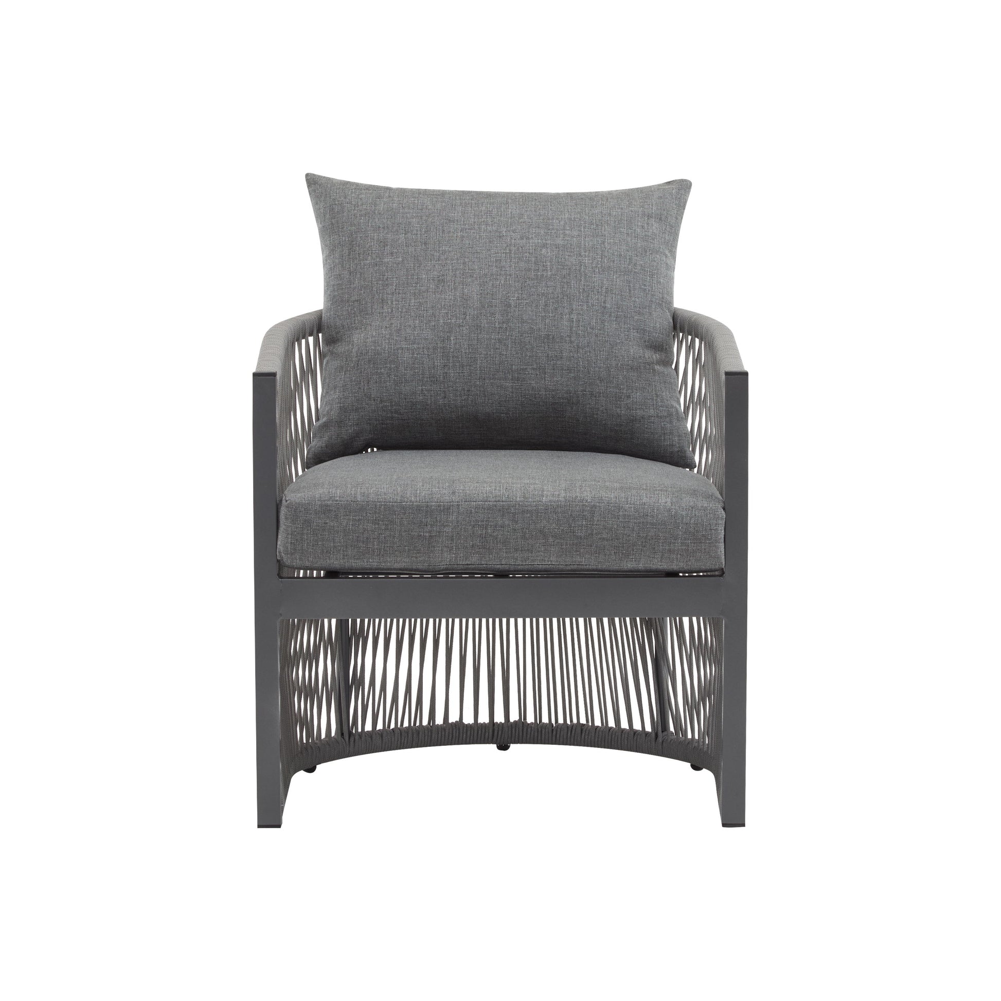 Modern Curved Aluminum Lounge Chair With Stylish Rope - Weave Design And Cushioned Comfort For Outdoor Living - Gray