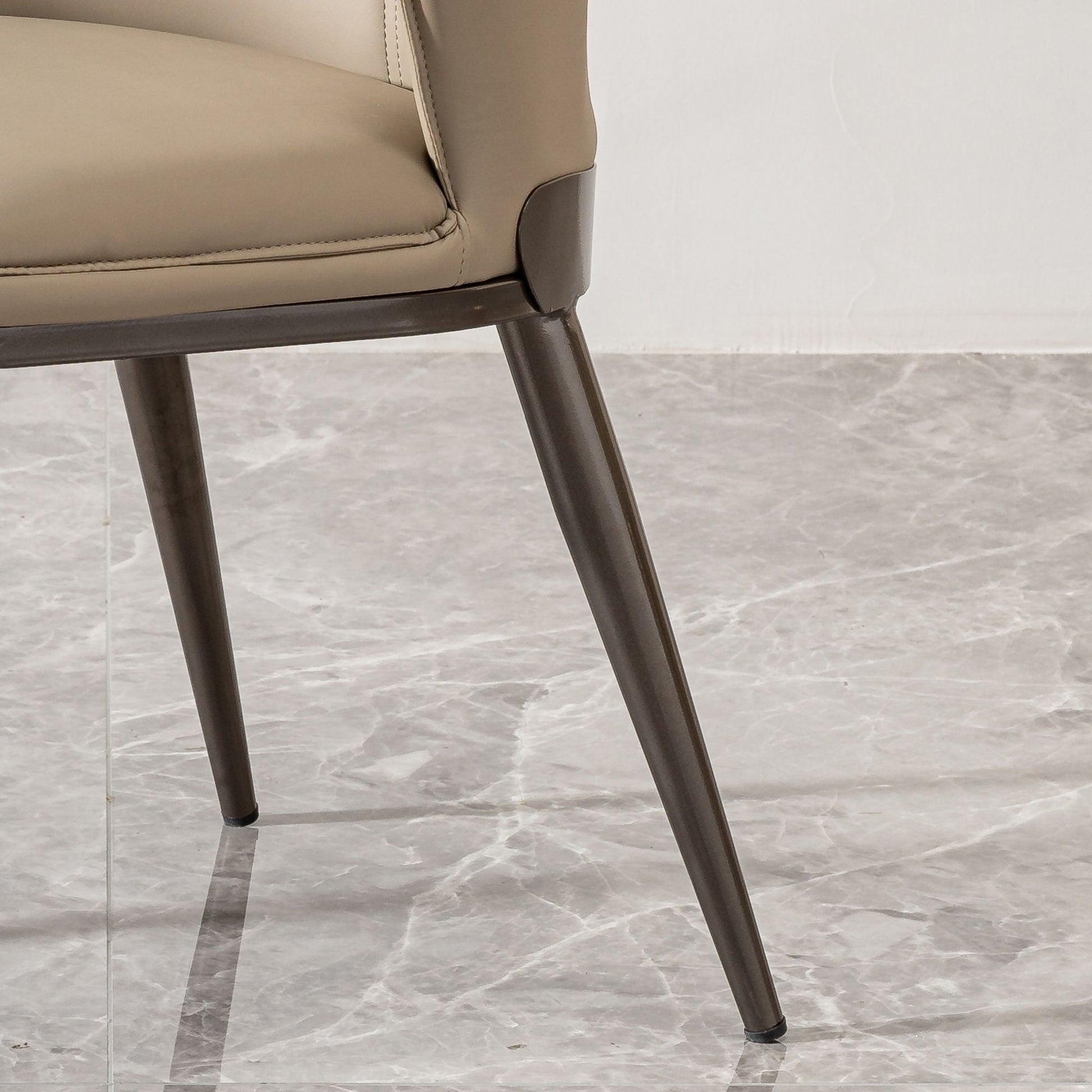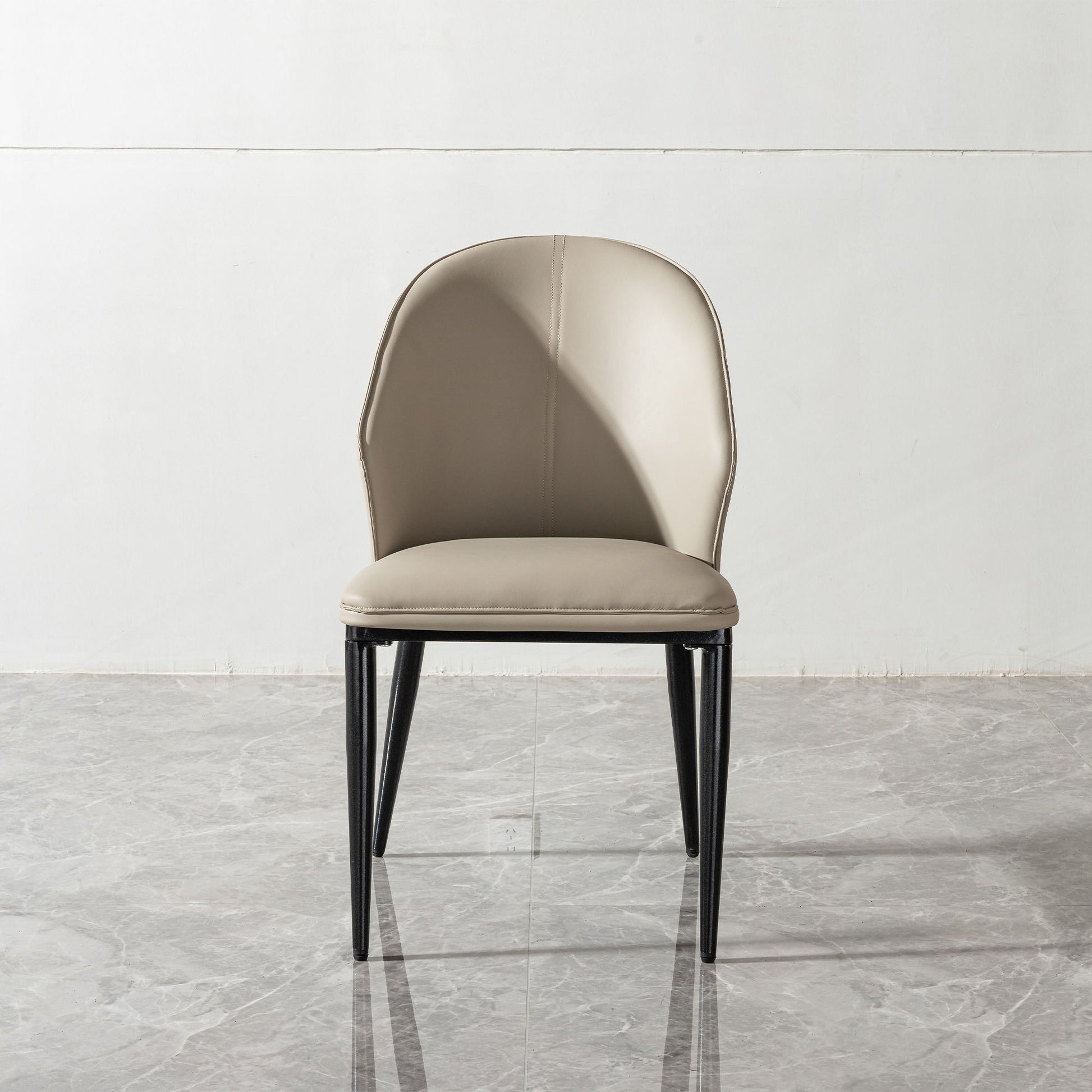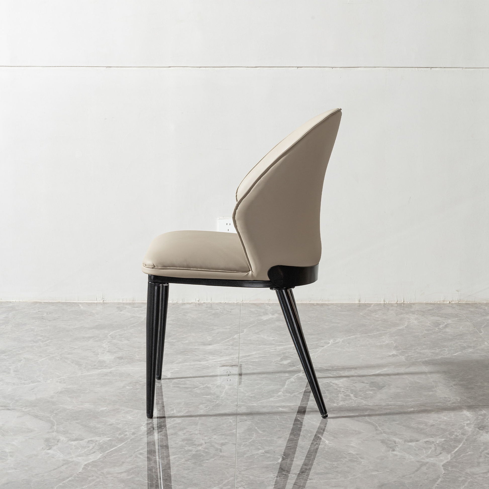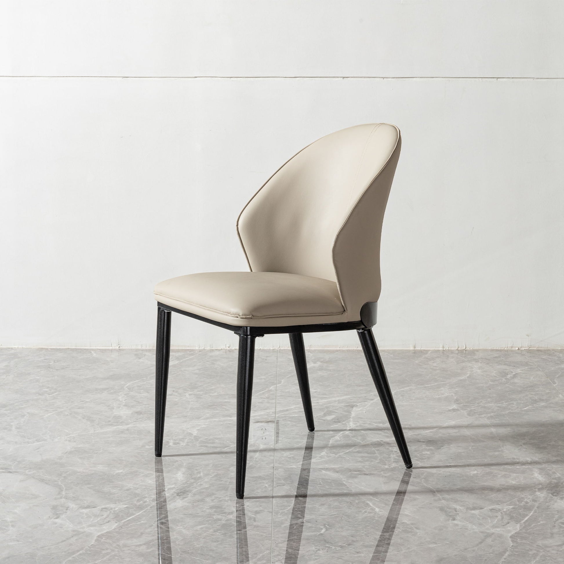 Modern Dining Chair (Set of 2) With Unique Backrest Design Leather - Beige / Black