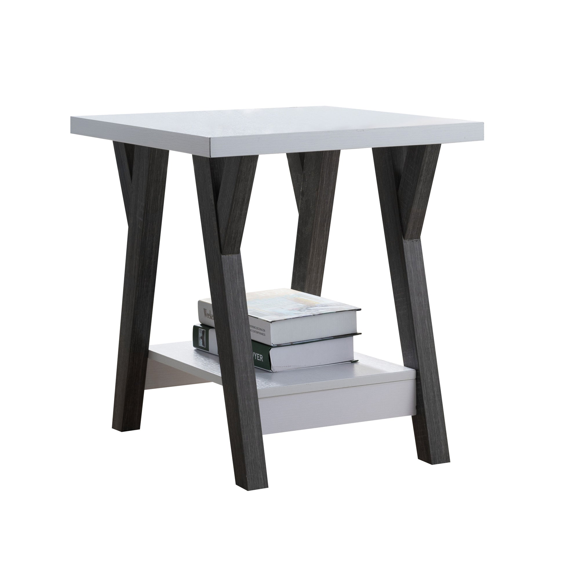 Modern End Table, Chair Side End Table For Living Room With Shelf Display - White