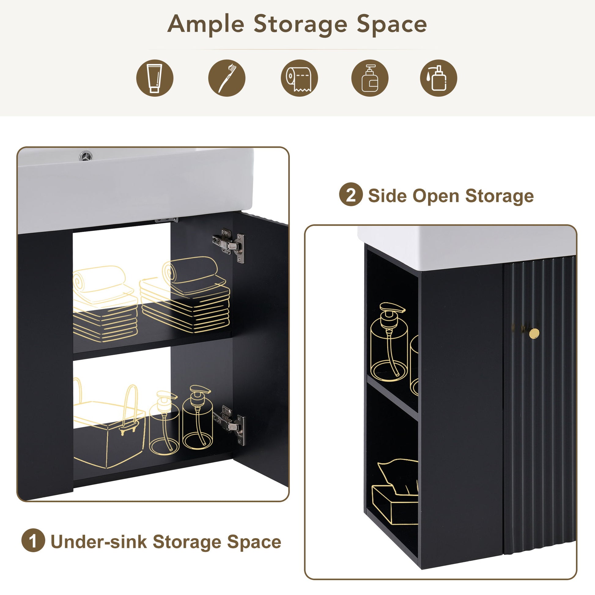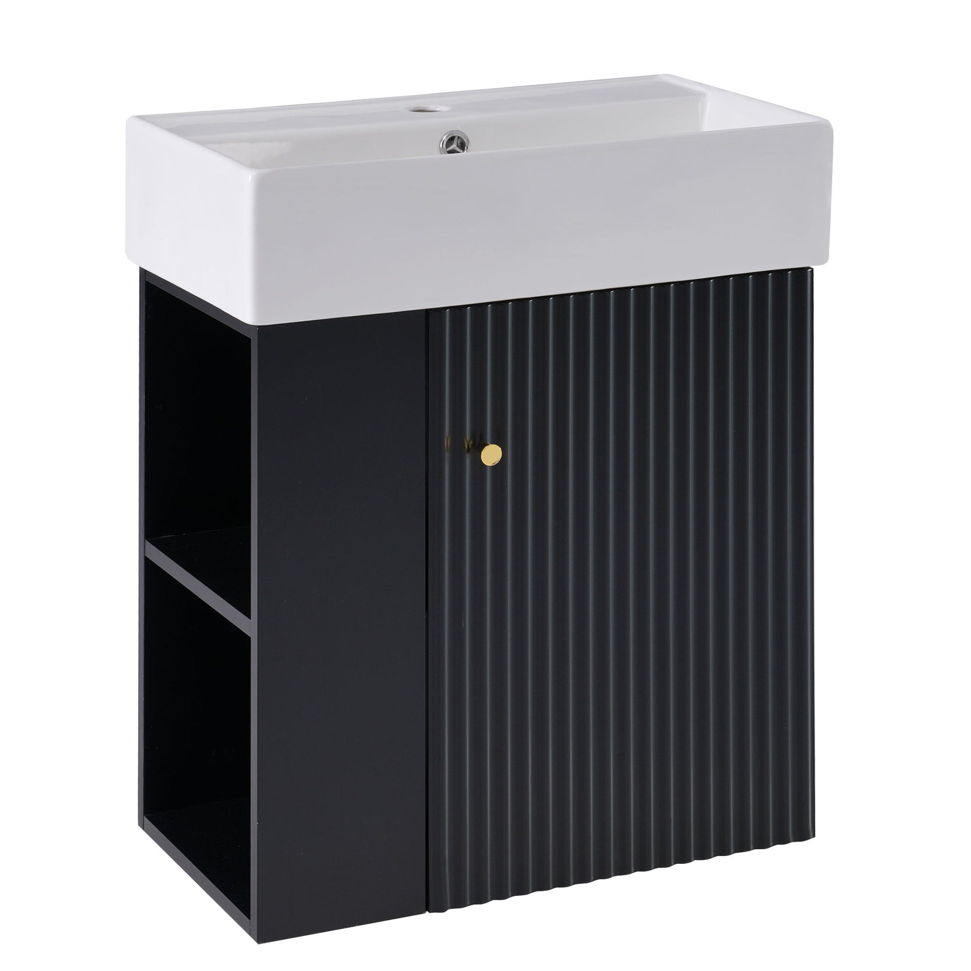 Modern Floating Bathroom Vanity With Ceramic Basin, Perfect For Small Bathrooms, Left Side Storage - Black