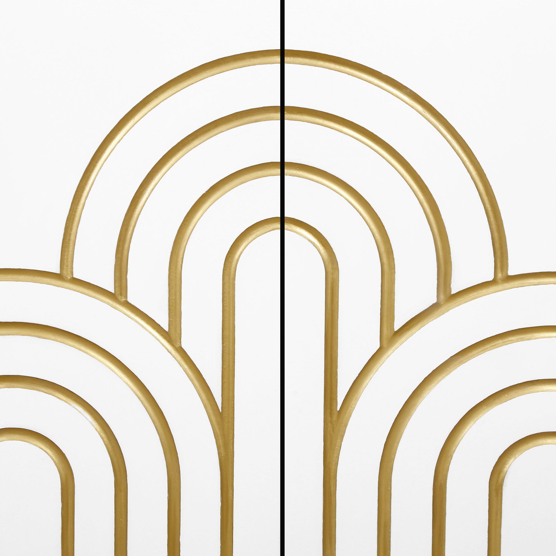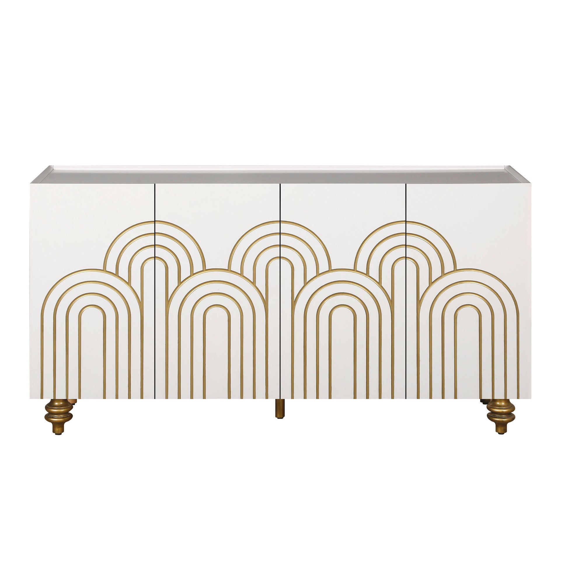 Modern Fluted Sideboard Buffet With Storage, Curve Element, 4 Doors With Adjustable Shelves - White