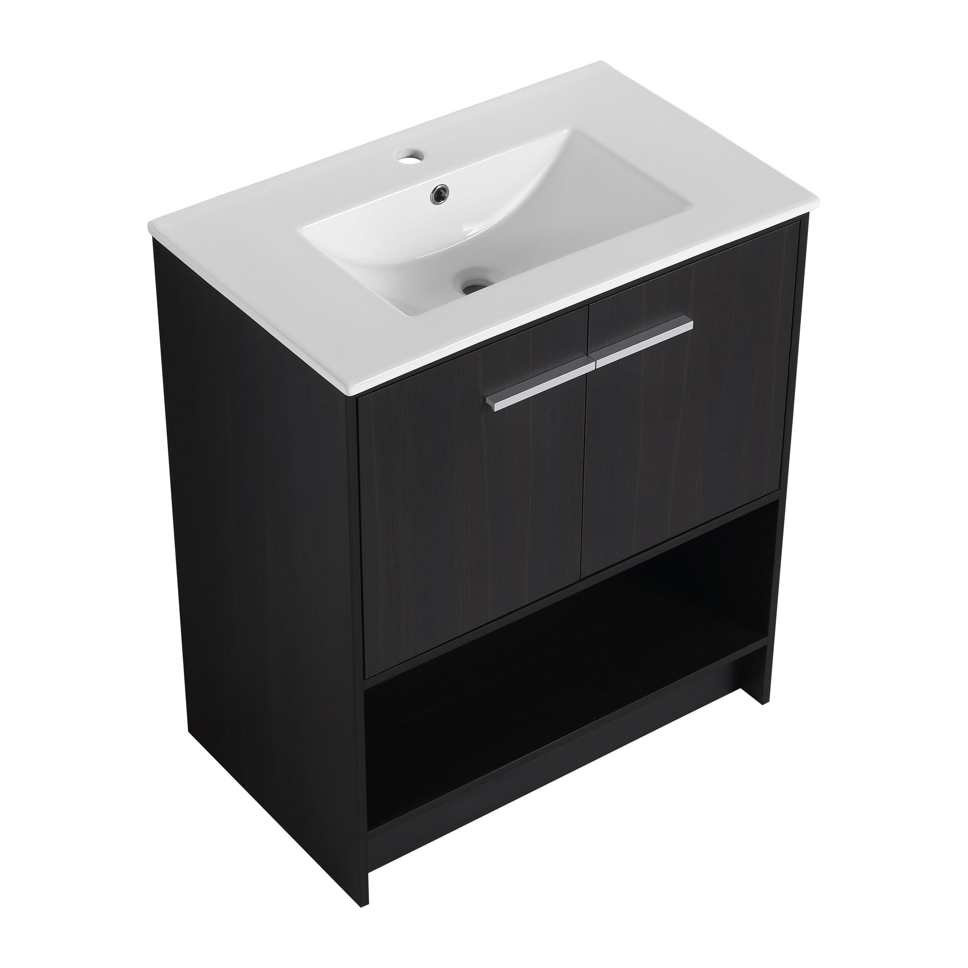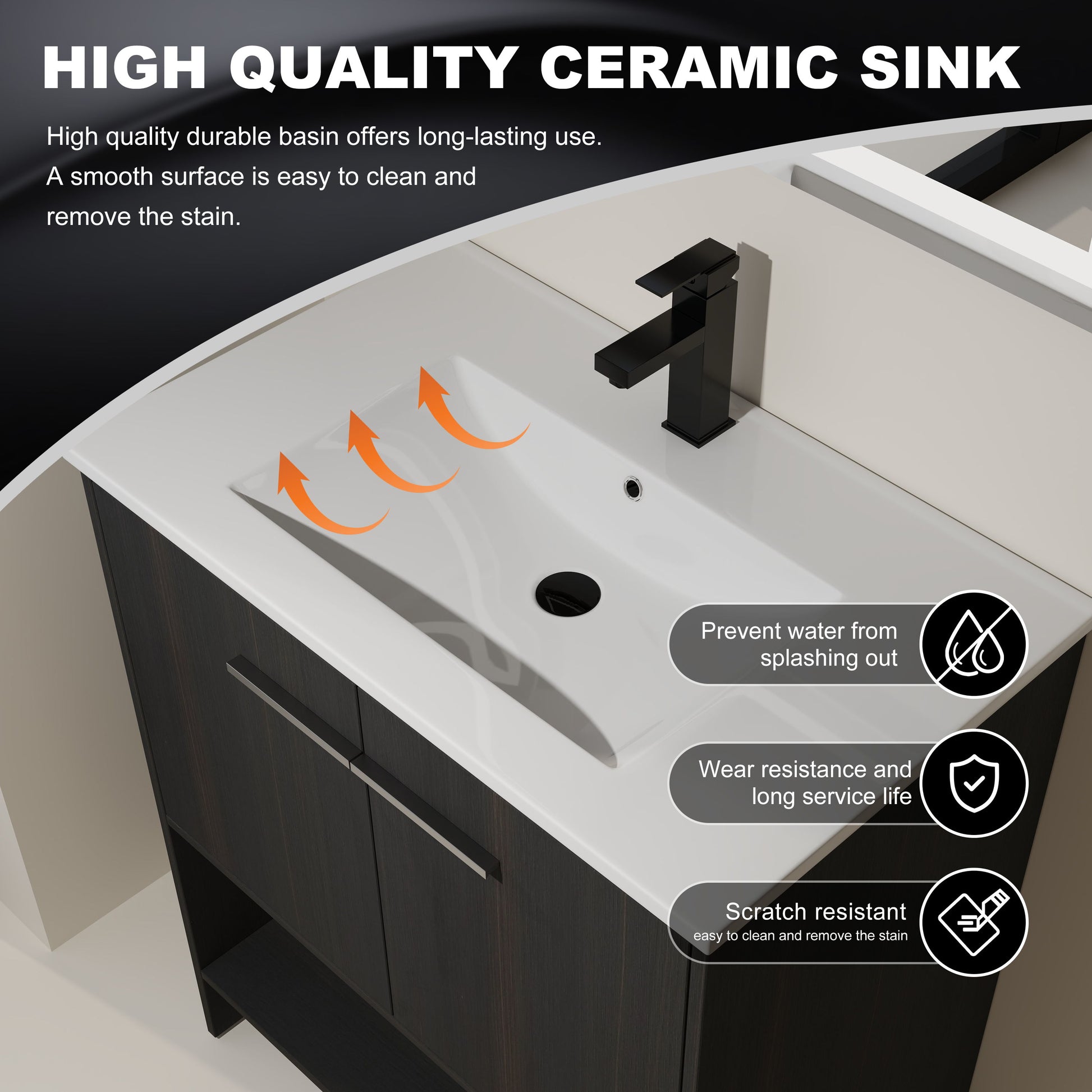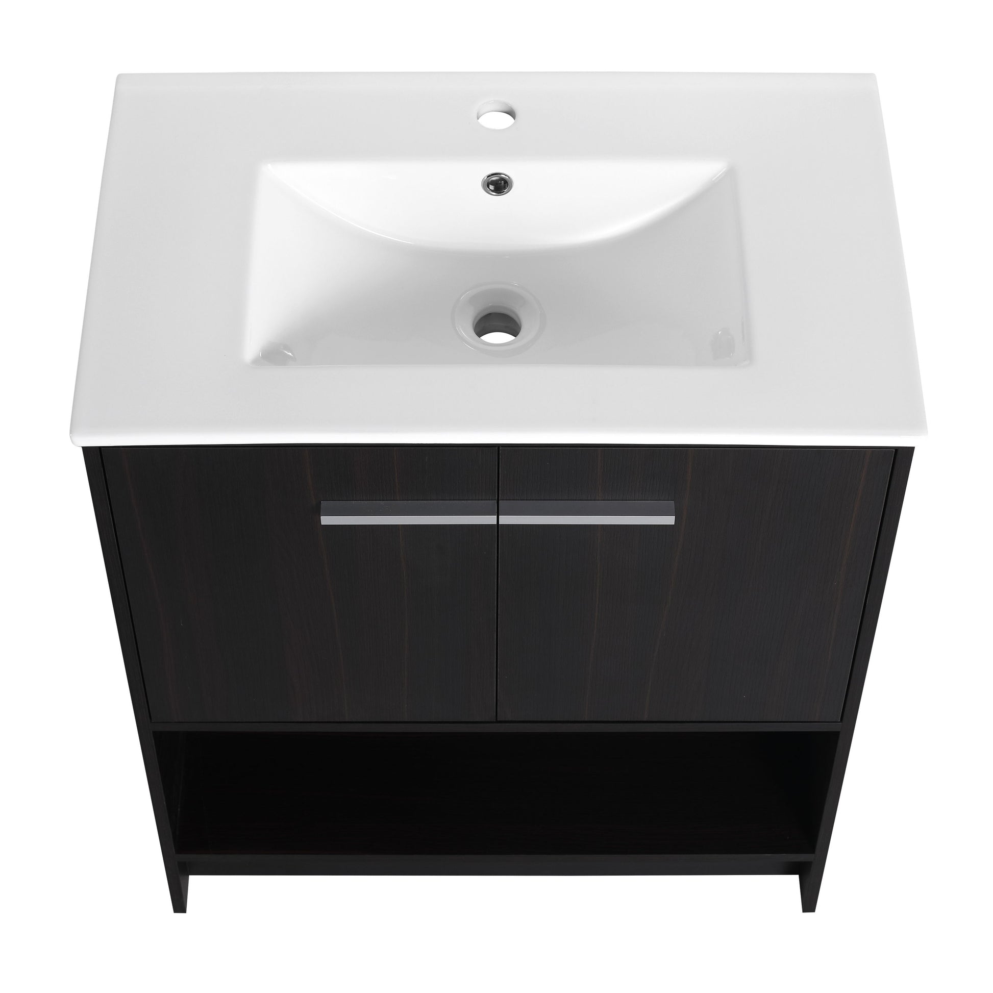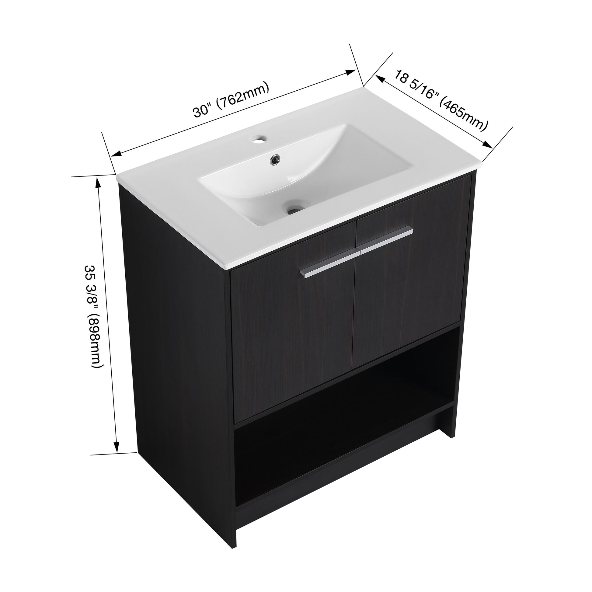 Modern Freestanding 30" Bathroom Vanity With Ceramic Sink, Soft Closing Doors Cabinet - Dark Oak