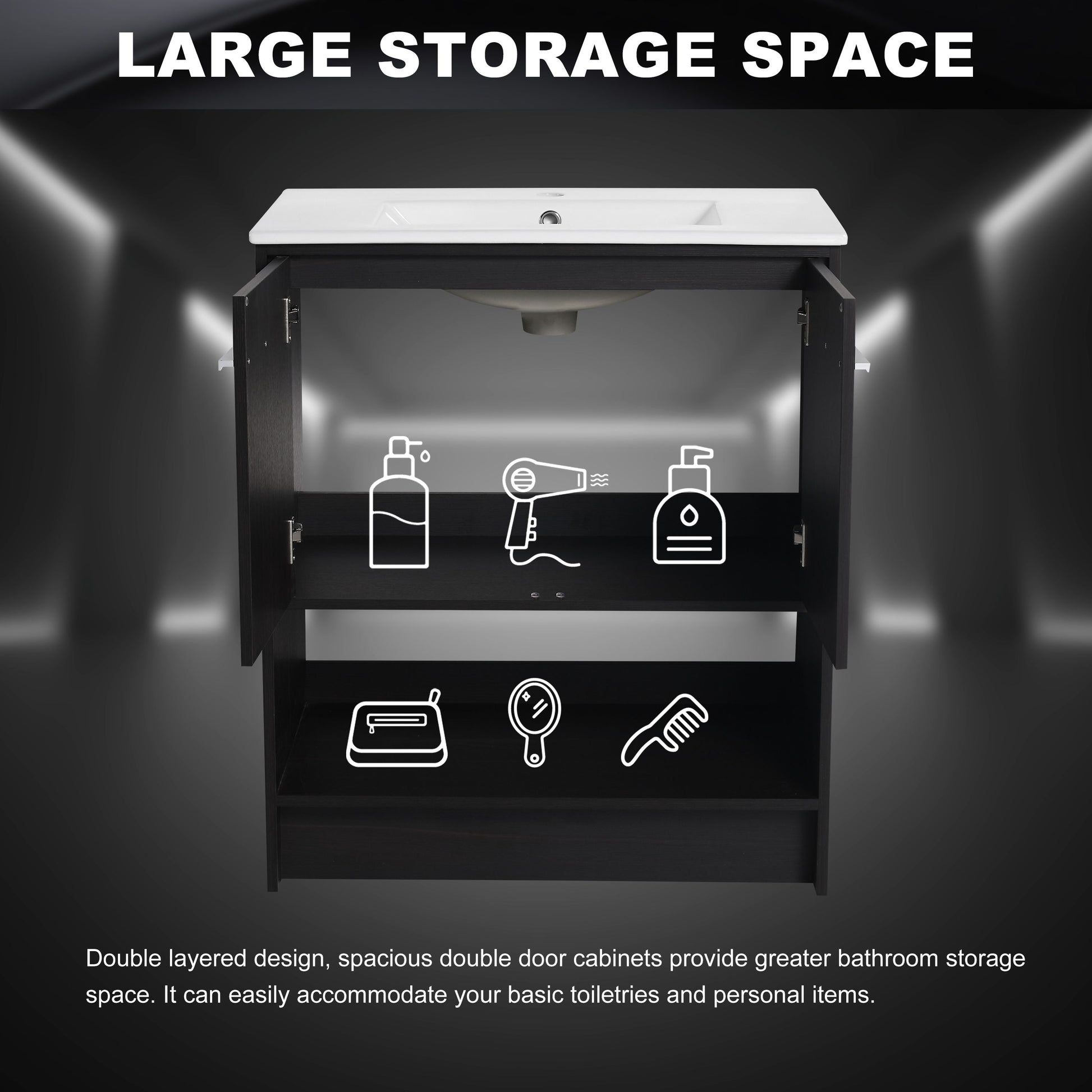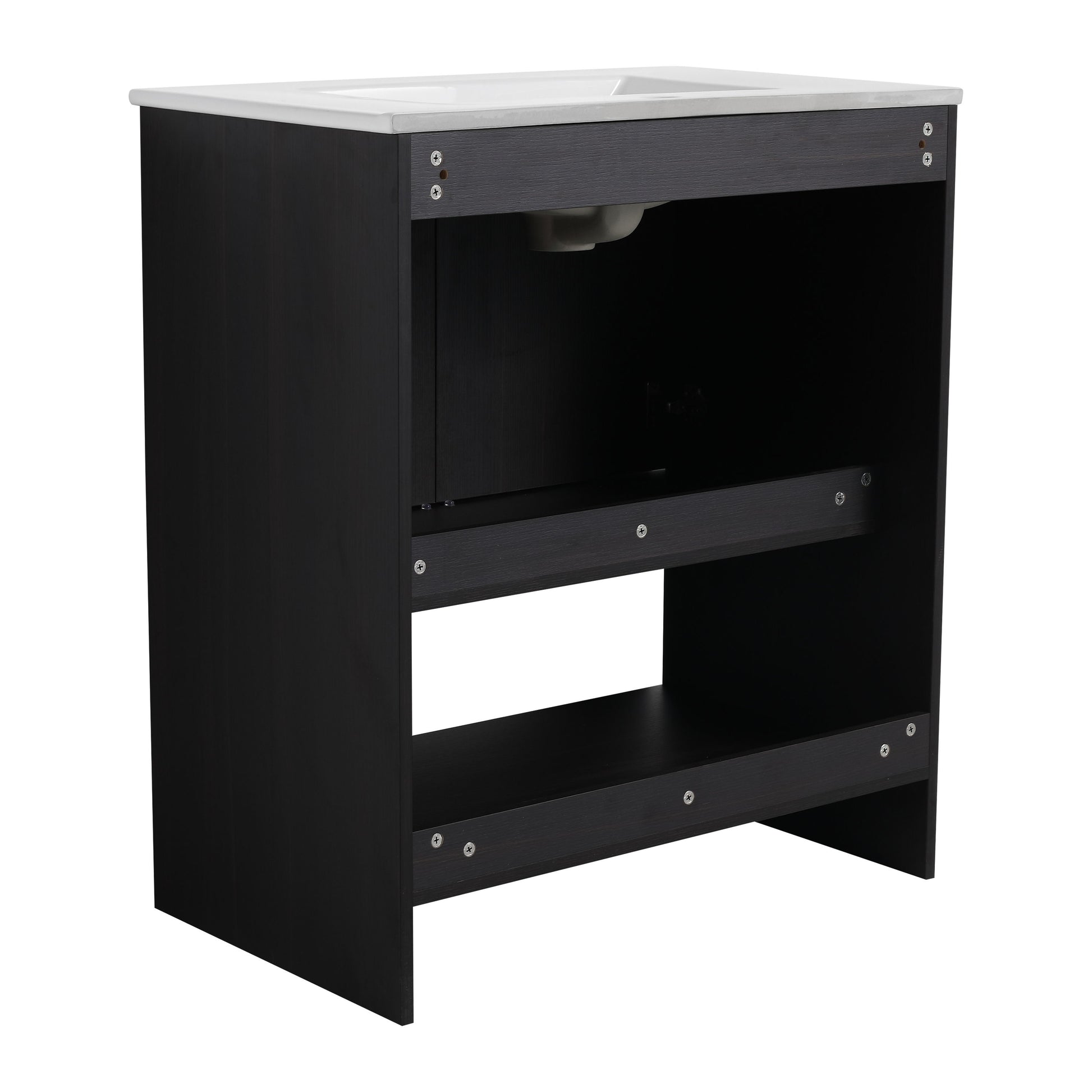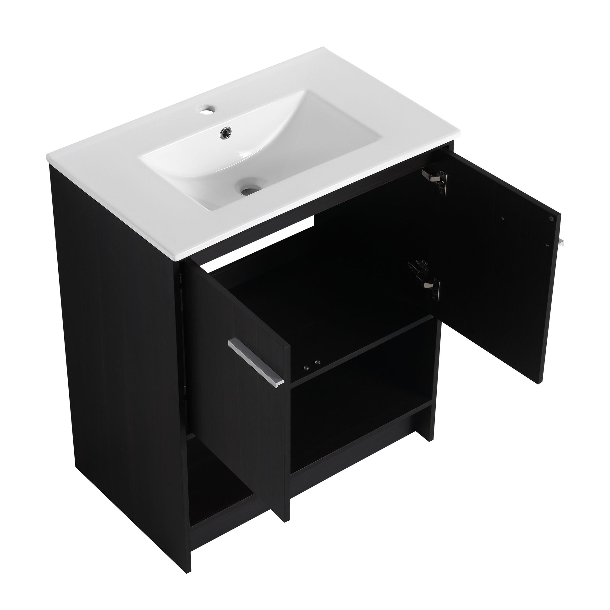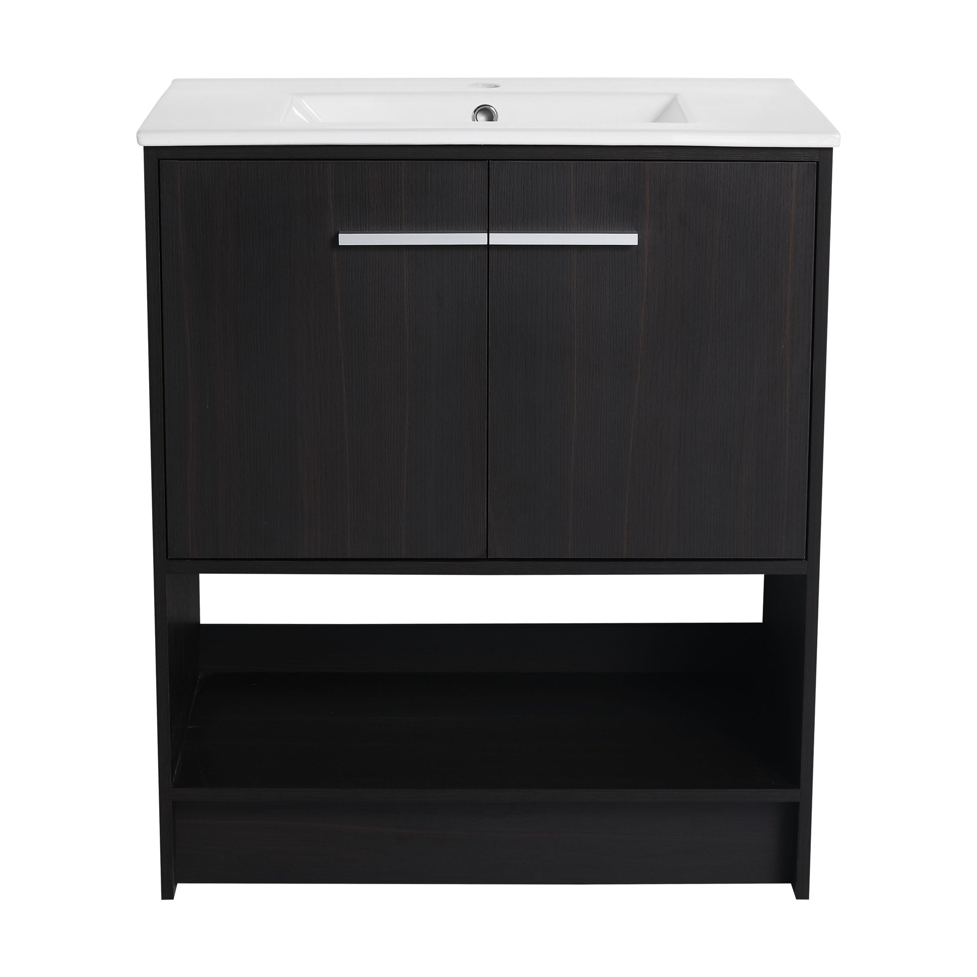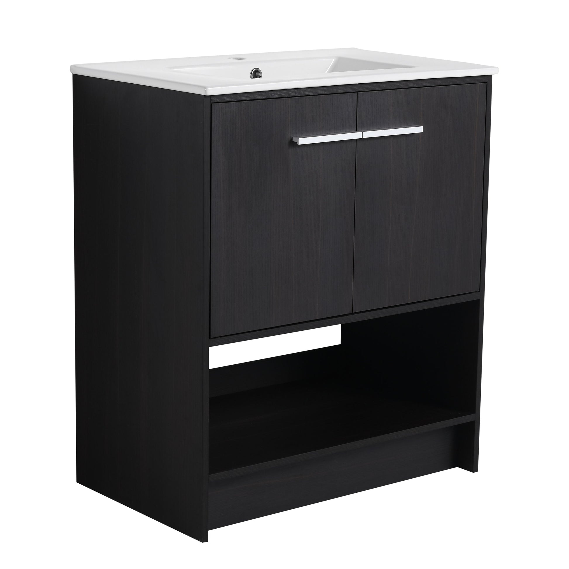 Modern Freestanding 30" Bathroom Vanity With Ceramic Sink, Soft Closing Doors Cabinet - Dark Oak