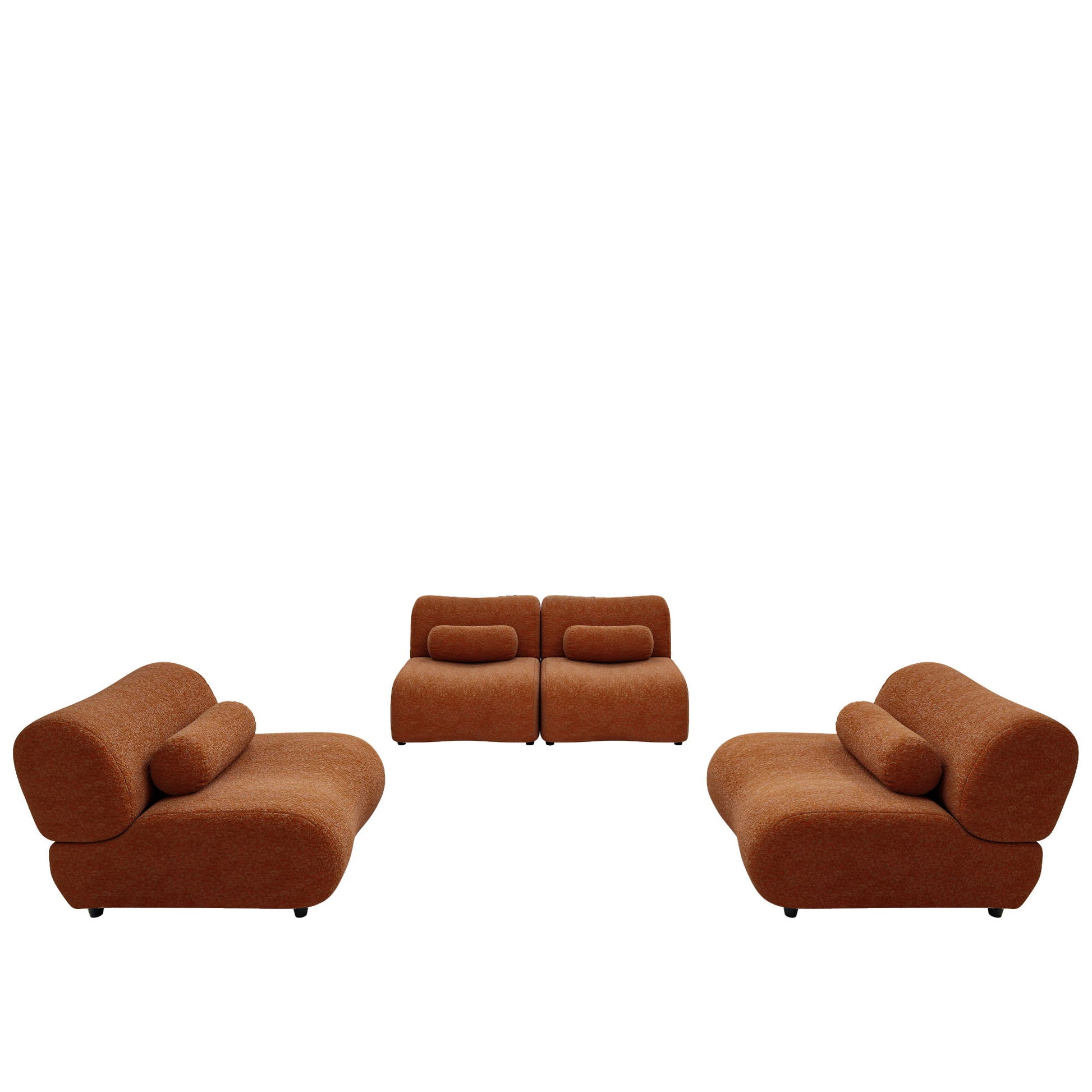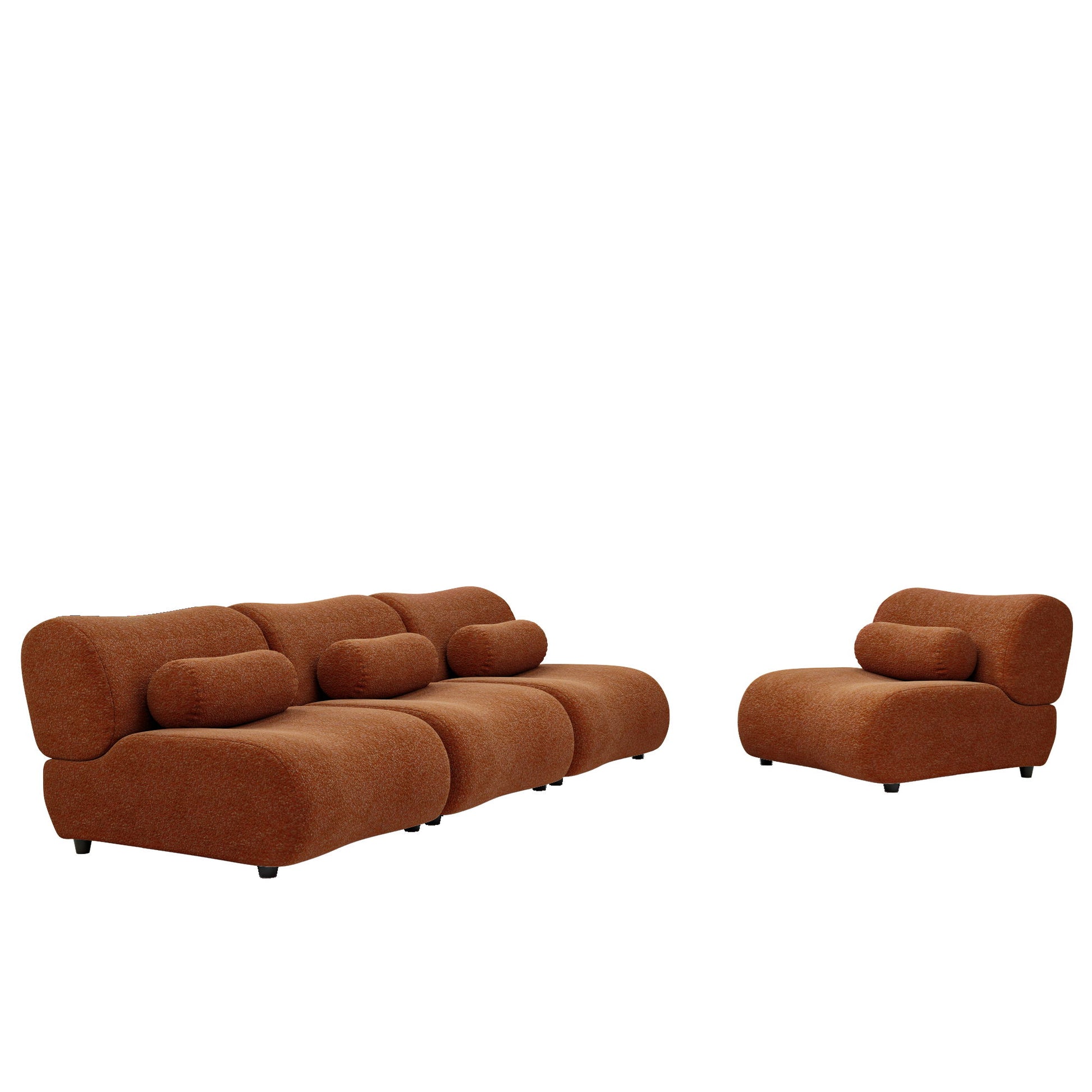 Modern L - Shaped Modular Sofa Set High Comfort Chenille Fabric, Freely Arrangeable For Living Room - Orange