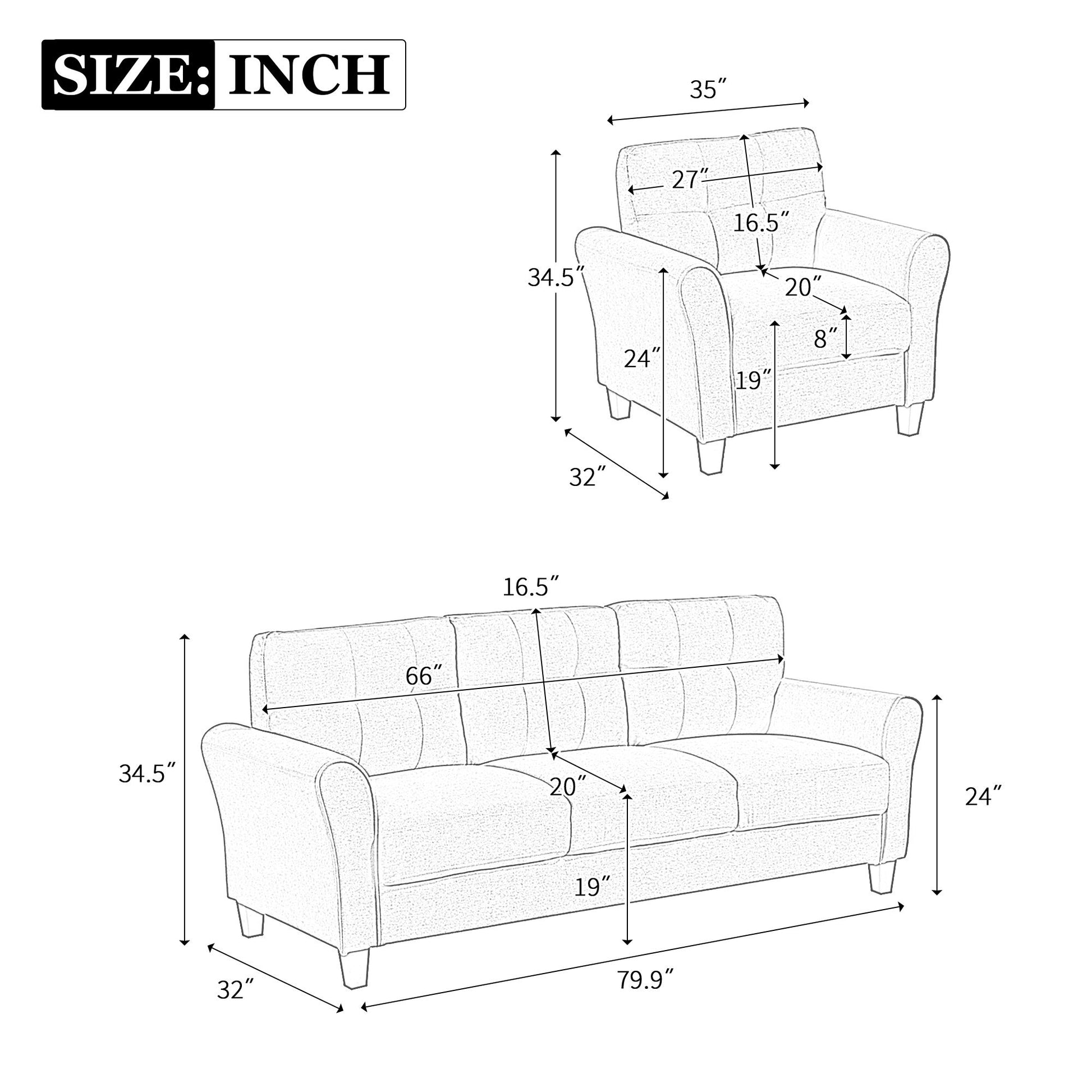 - Modern Design: This modern-styled sofa set, featuring soft fabric and an extra button tufted linen back seat cushion, is perfect for any room including living rooms, bedrooms, and small spaces.
