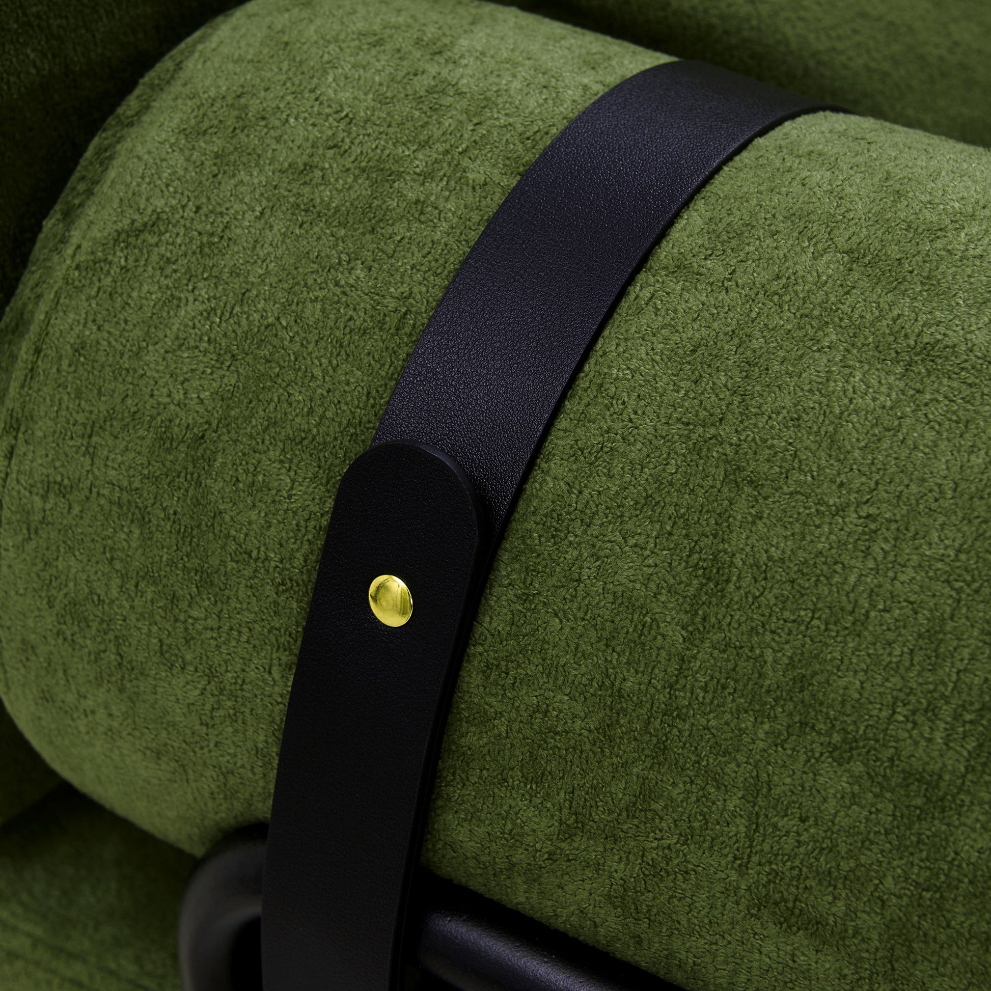 - Unique Cylindrical Armrest Design: Features cylindrical armrests with faux leather straps for modern appeal and support.