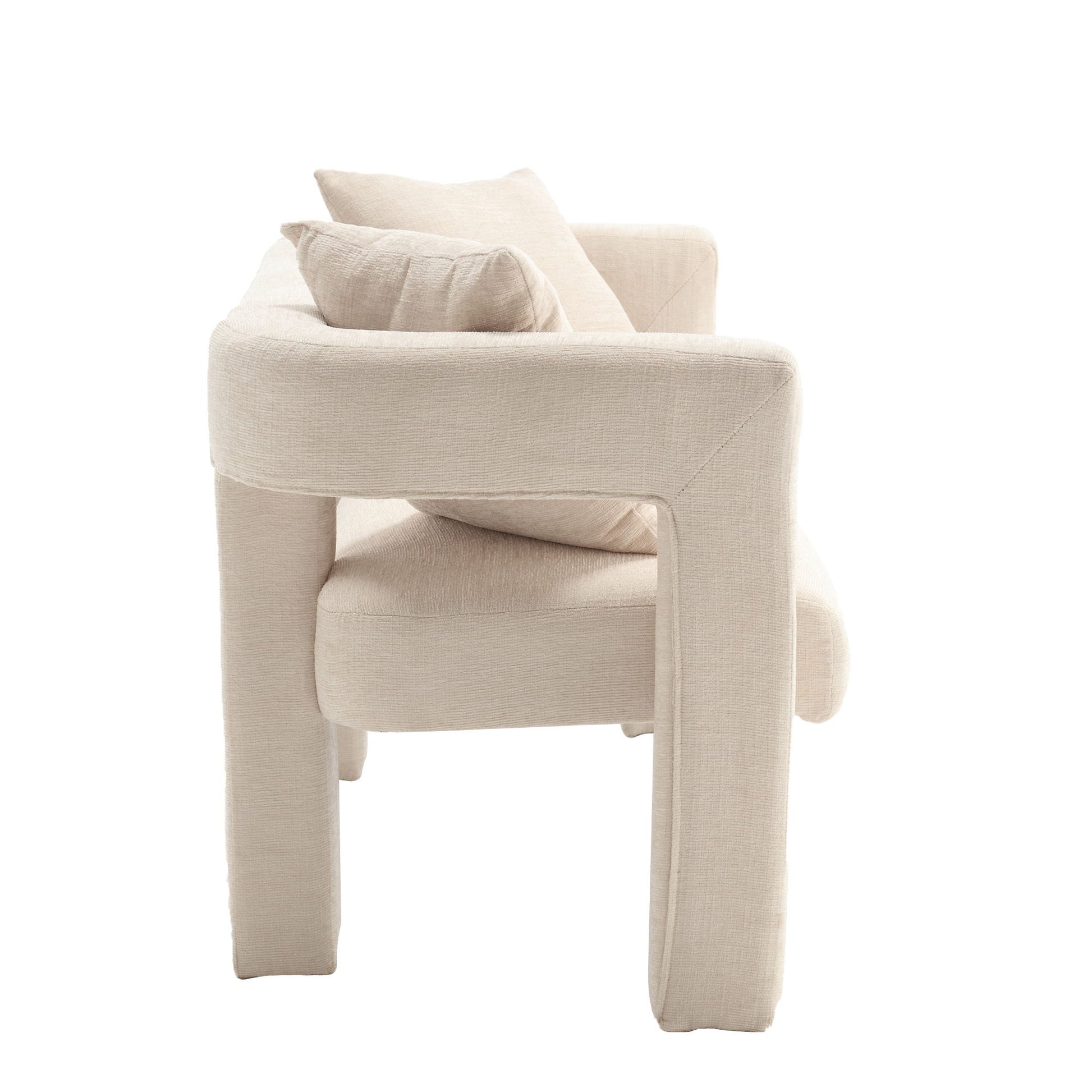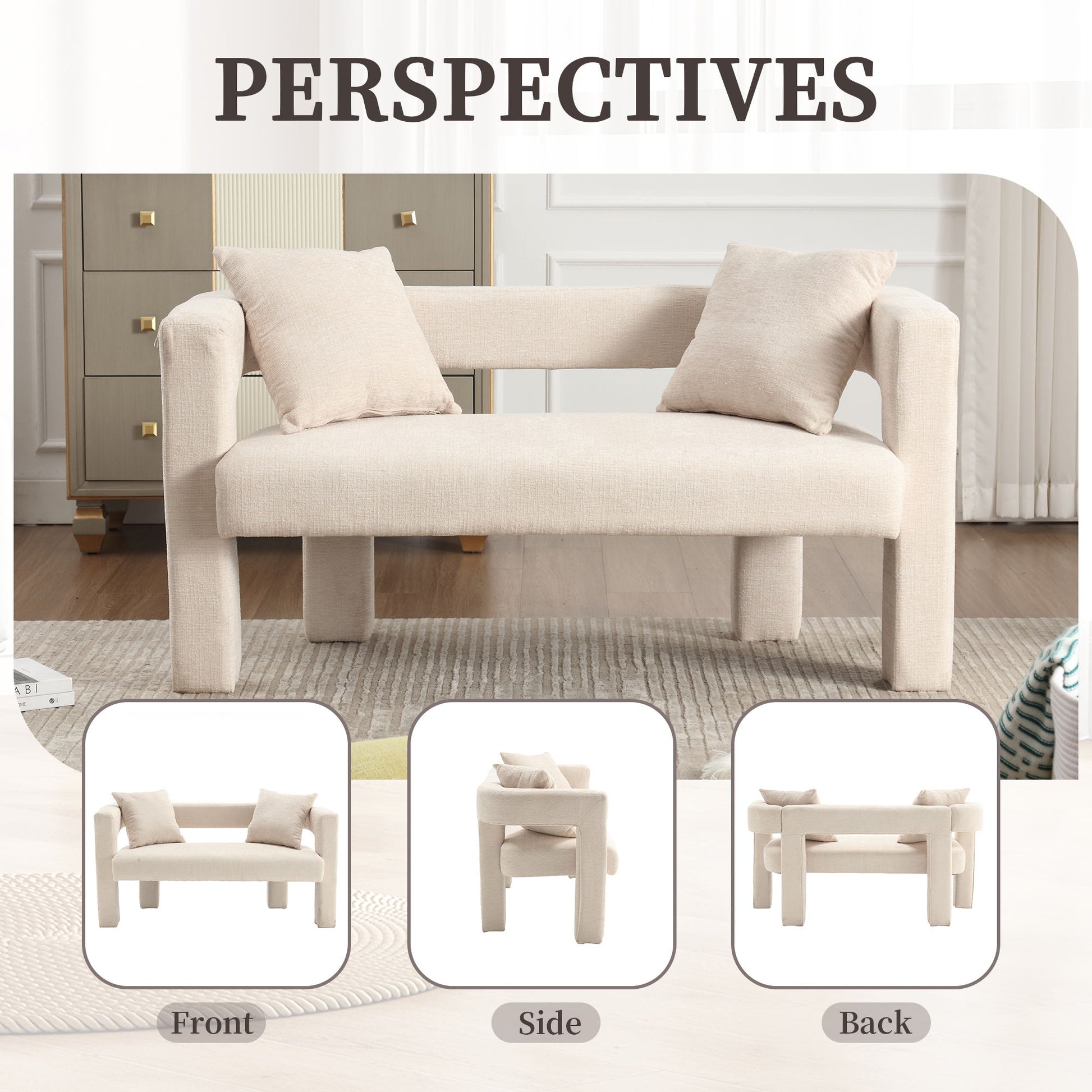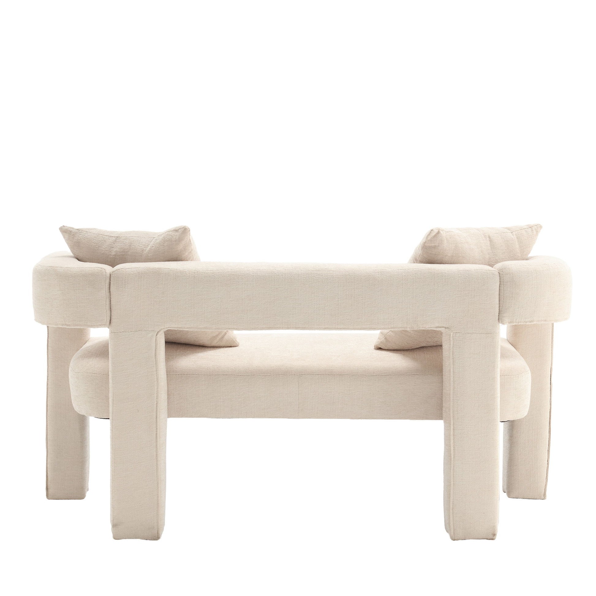Modern Loveseat Sofa, Comfy Upholstered 2 Seater Sofa - Beige